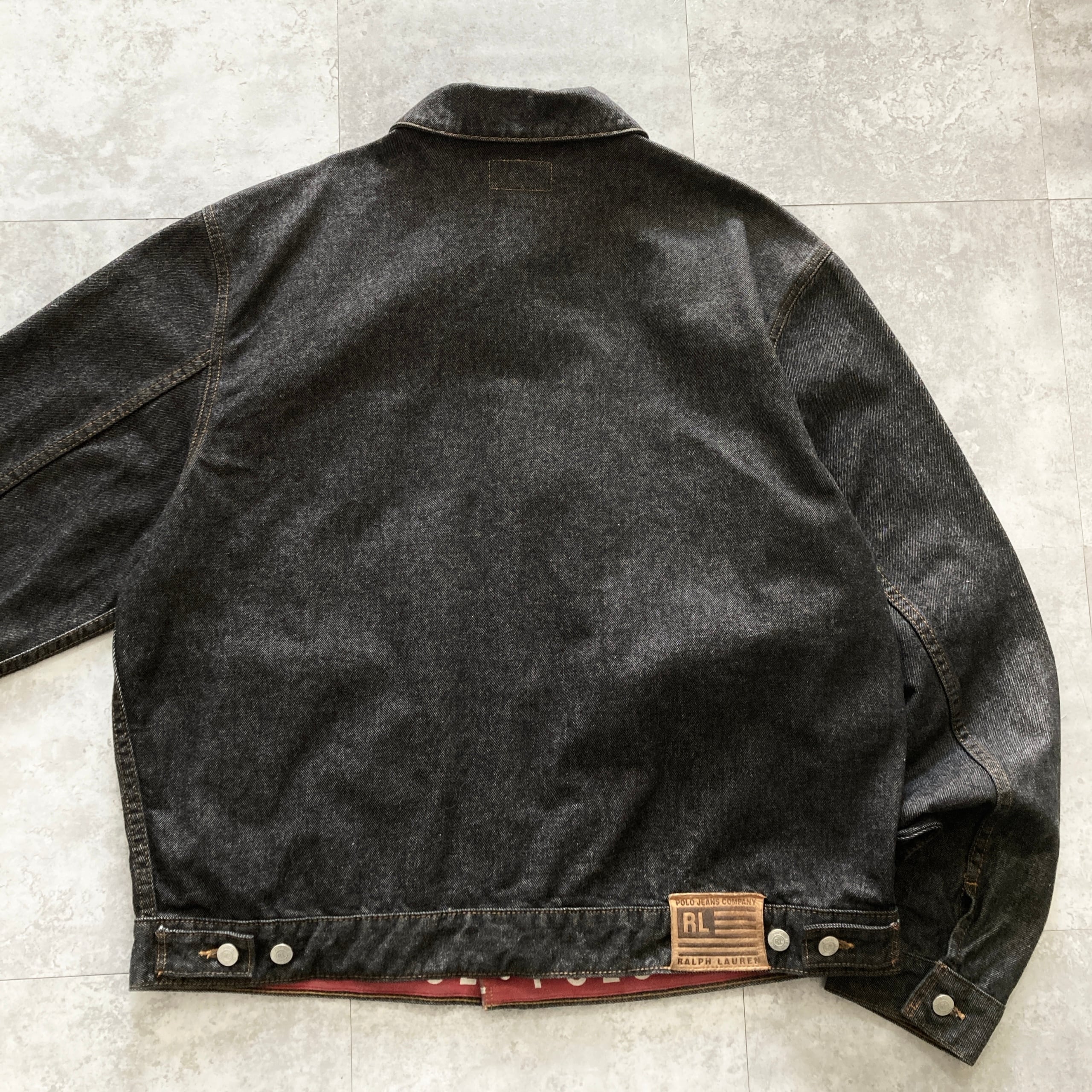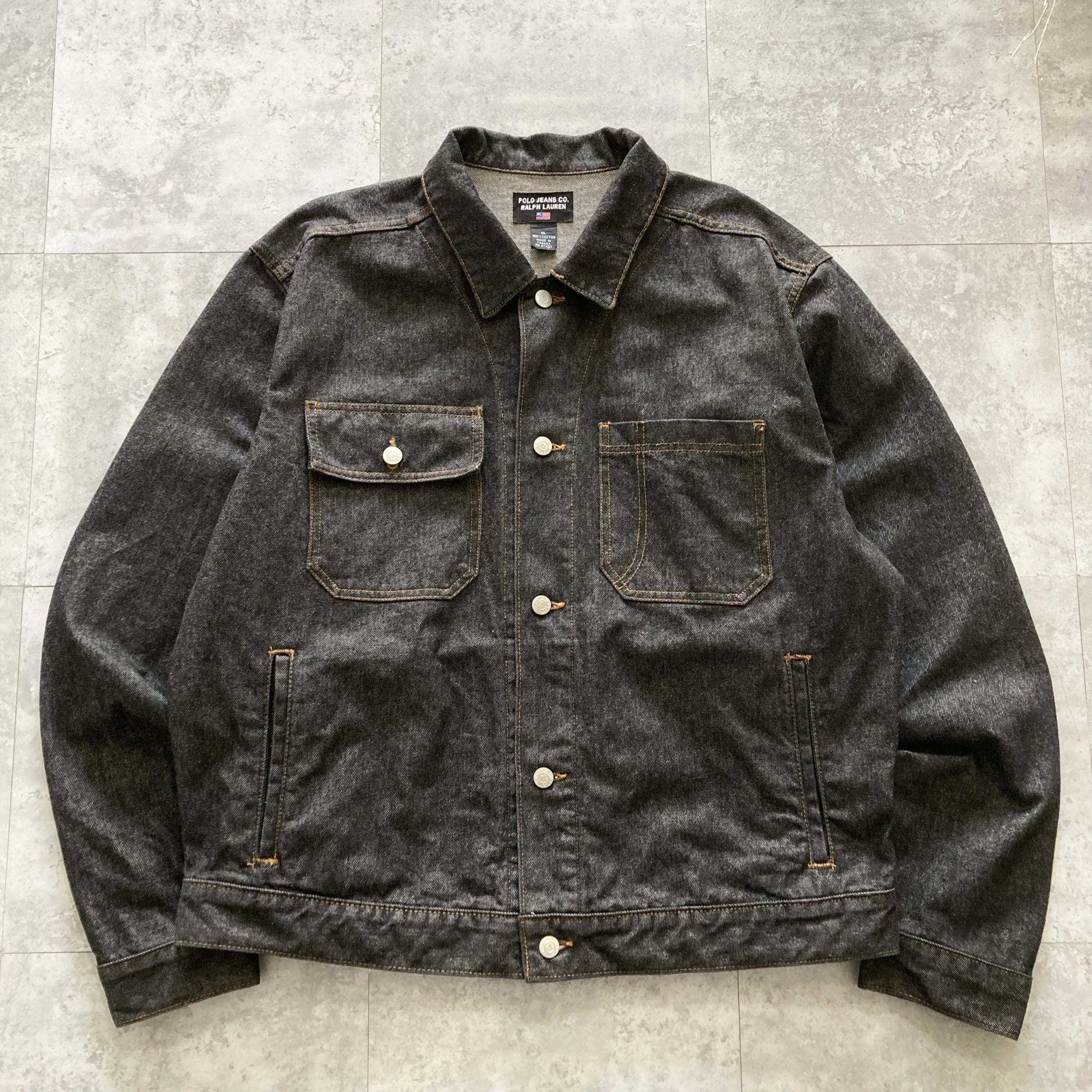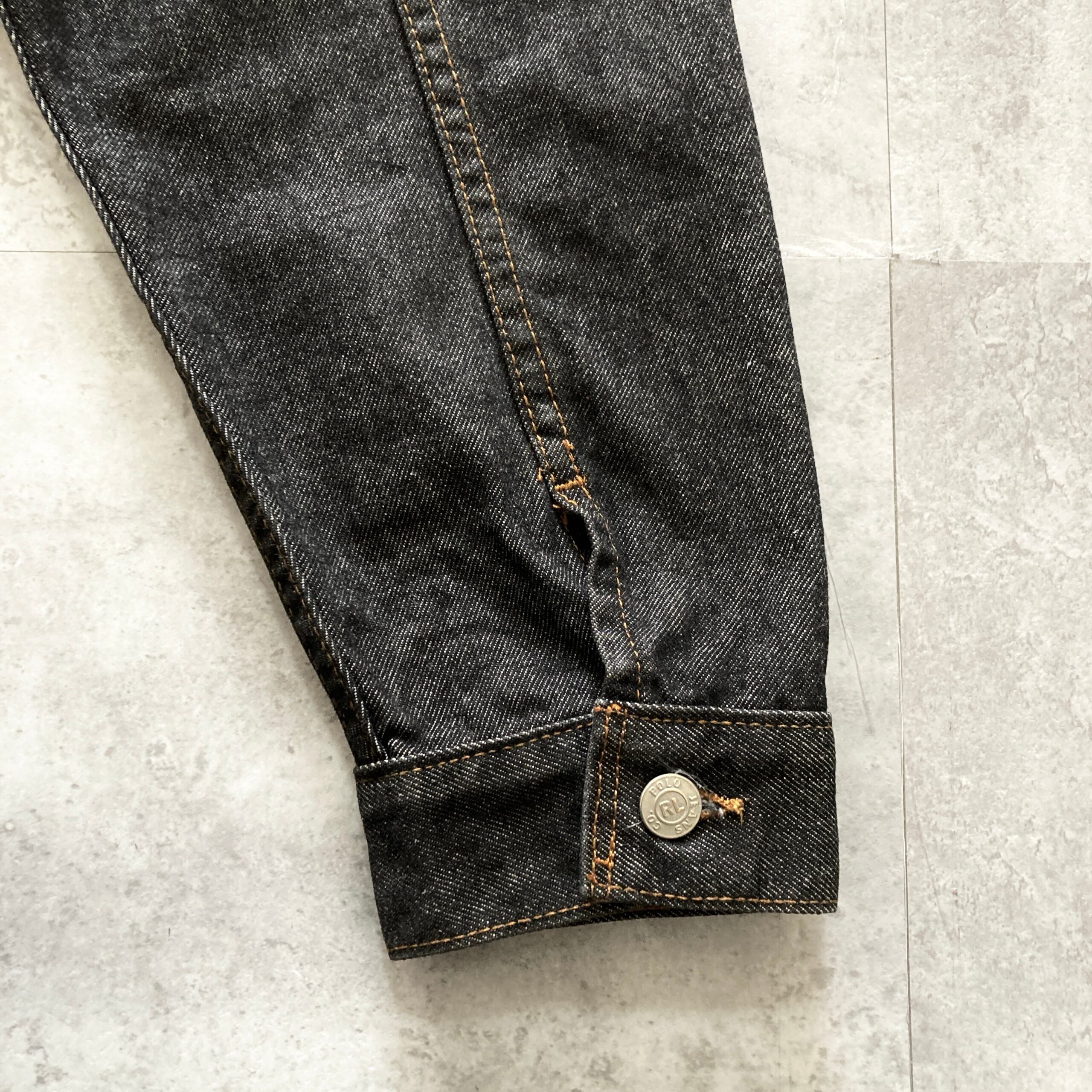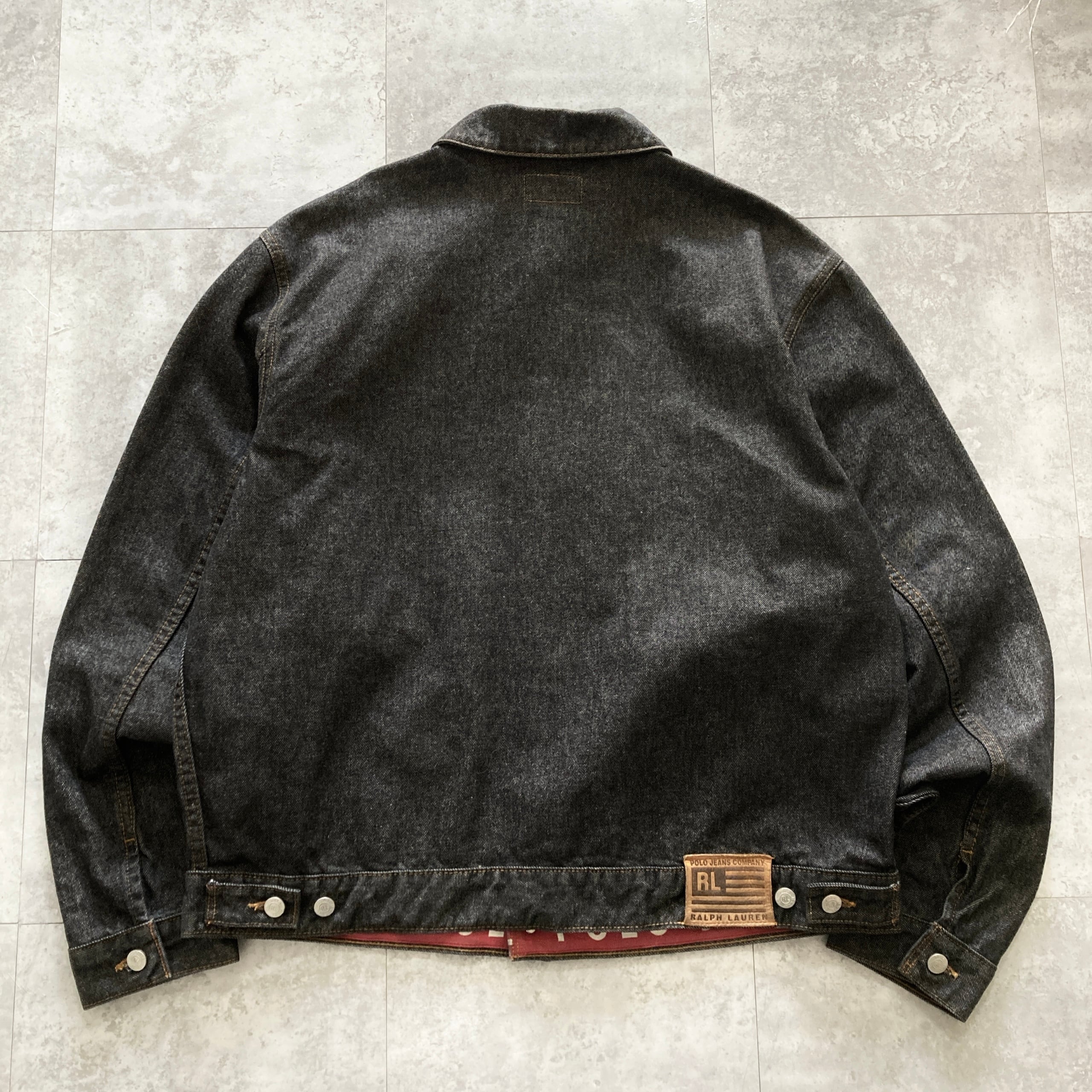 【90s-00s】POLO JEANS RALPH LAUREN ポロジーンズラルフローレン 表記XL レザーパッチ ブランドロゴボタン ブラック デニムジャケット