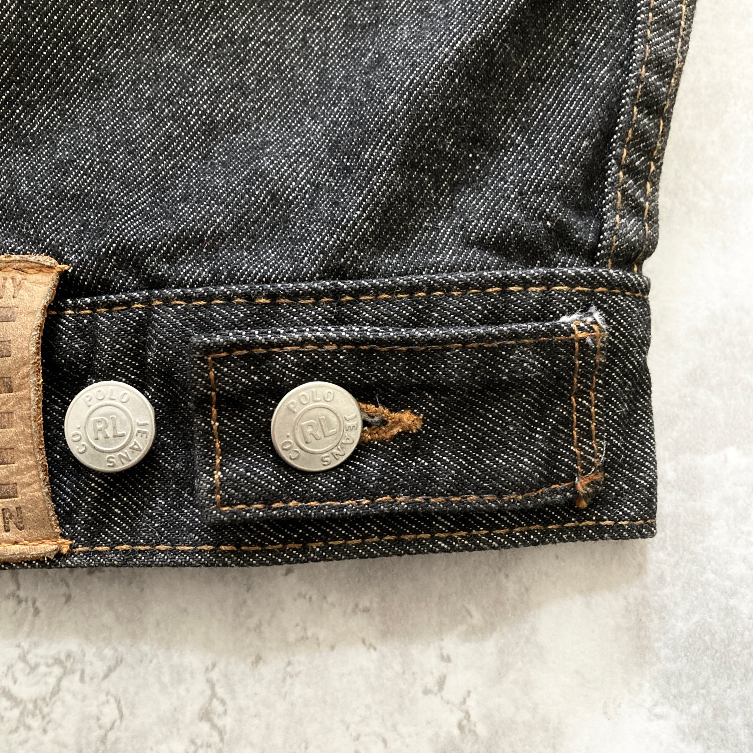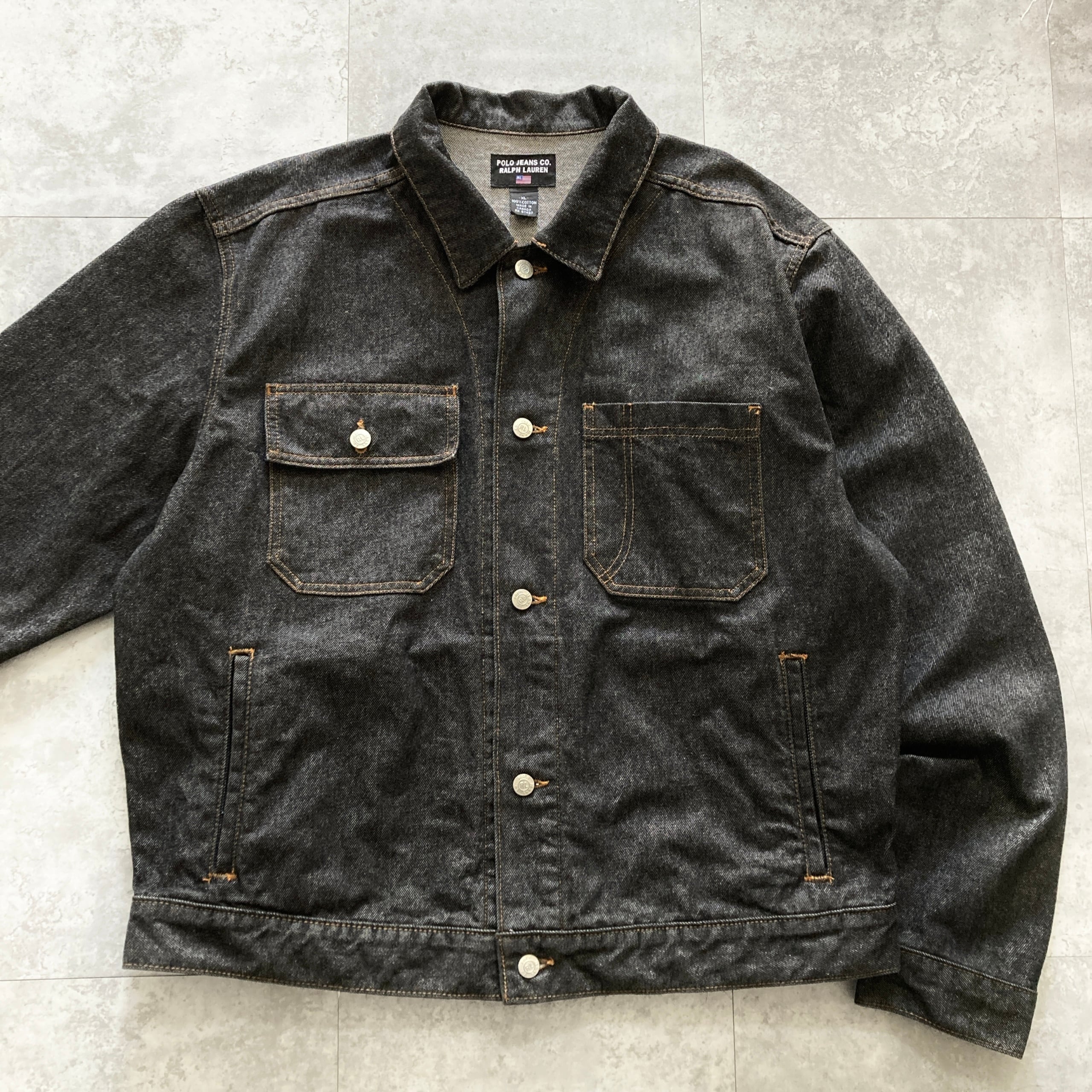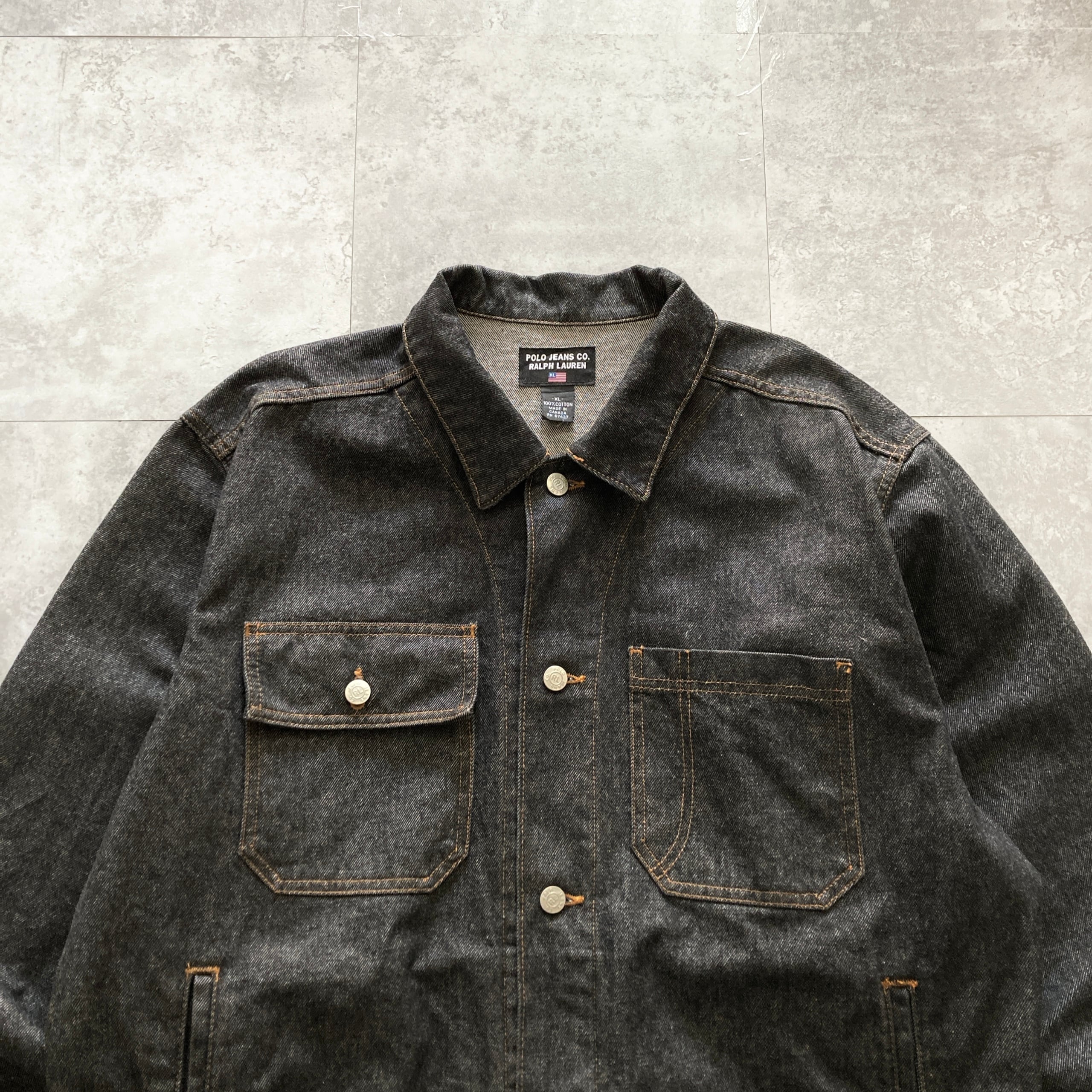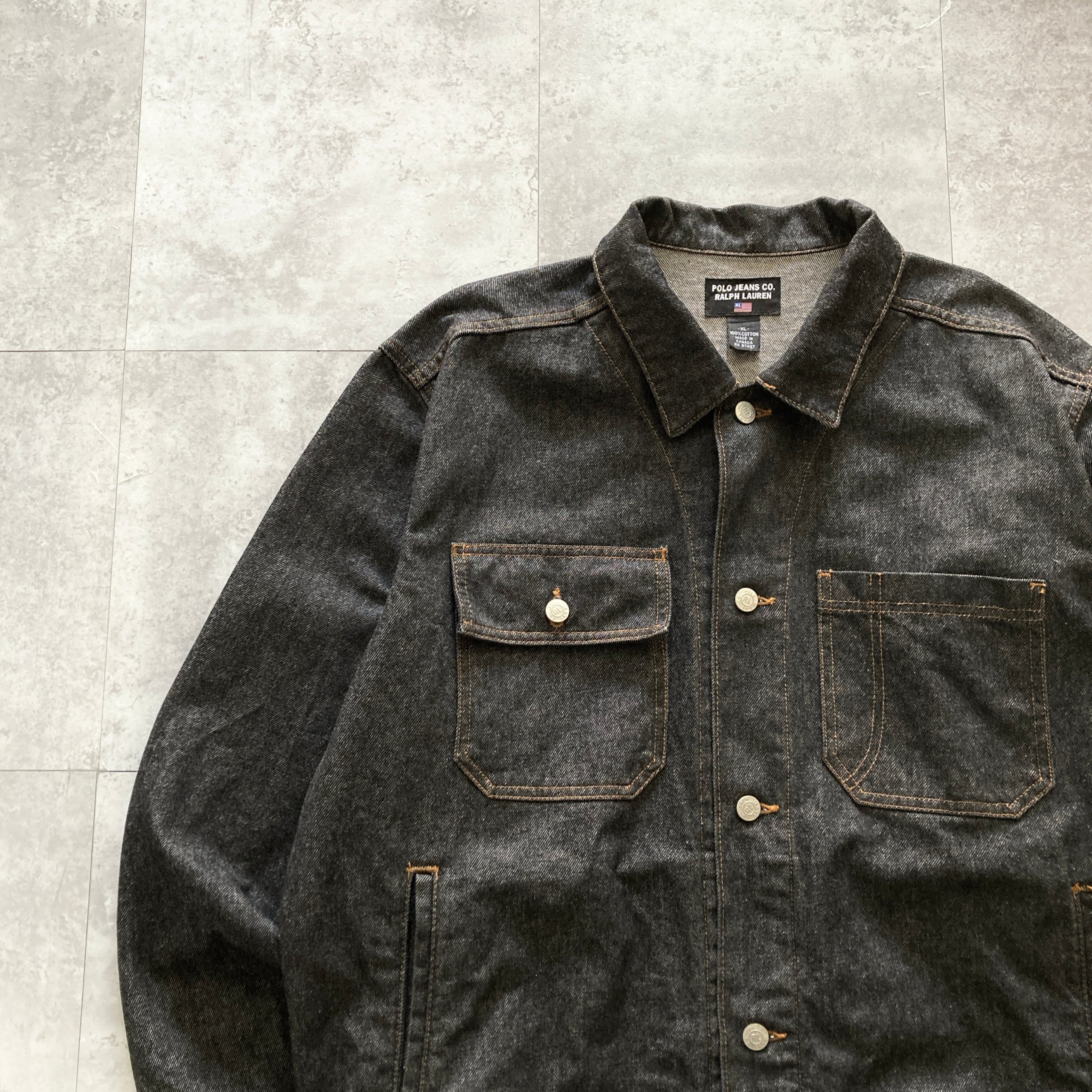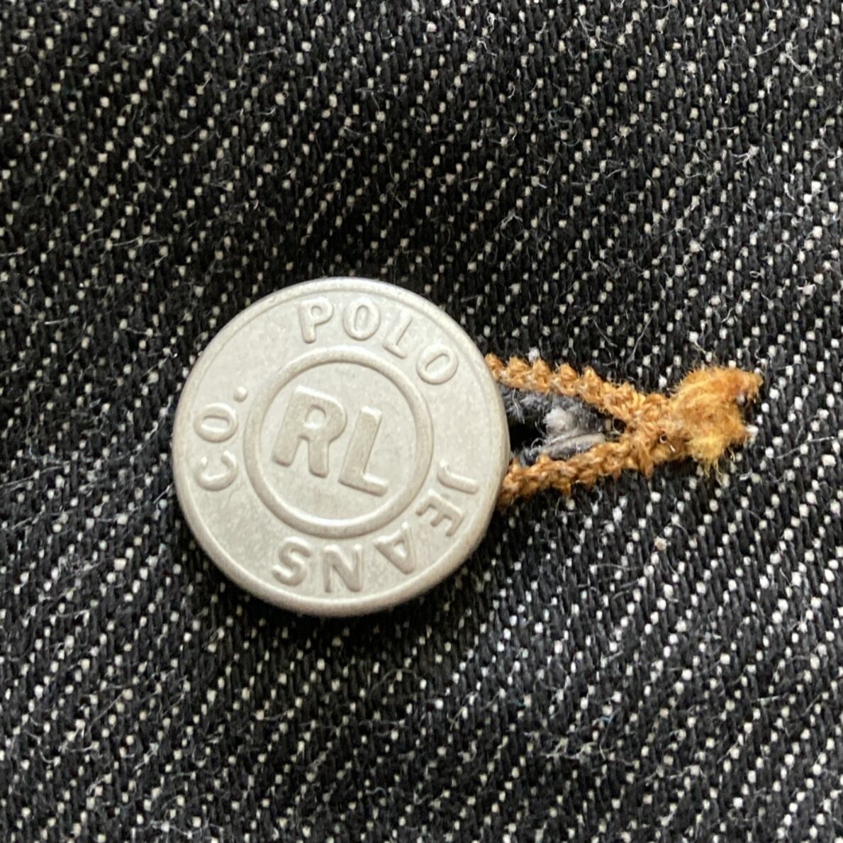 【90s-00s】POLO JEANS RALPH LAUREN ポロジーンズラルフローレン 表記XL レザーパッチ ブランドロゴボタン ブラック デニムジャケット