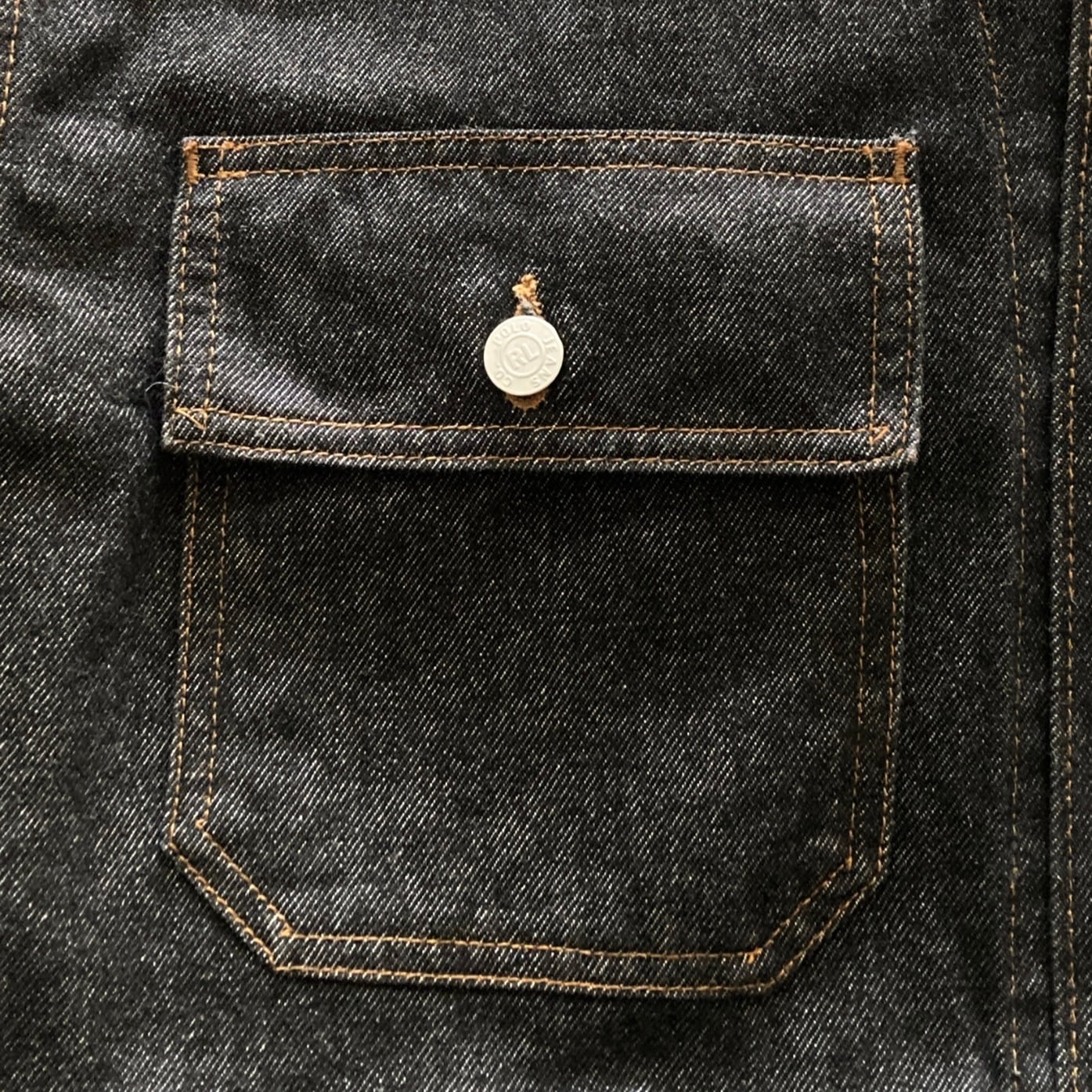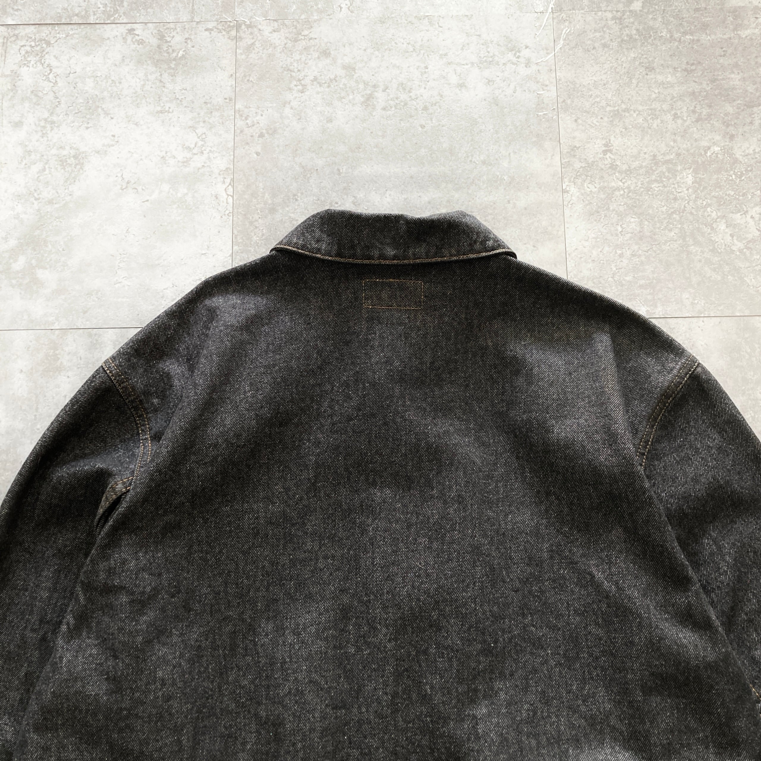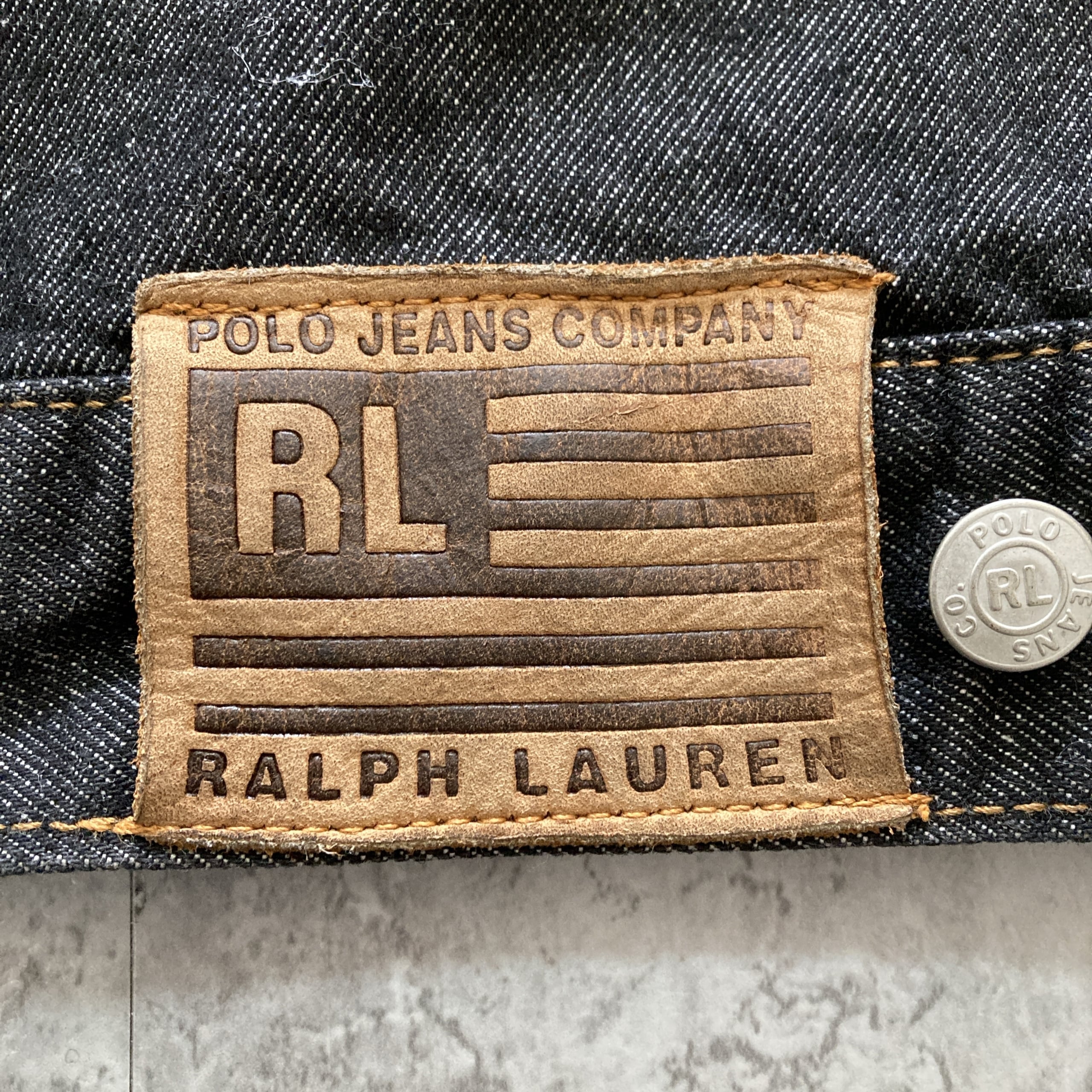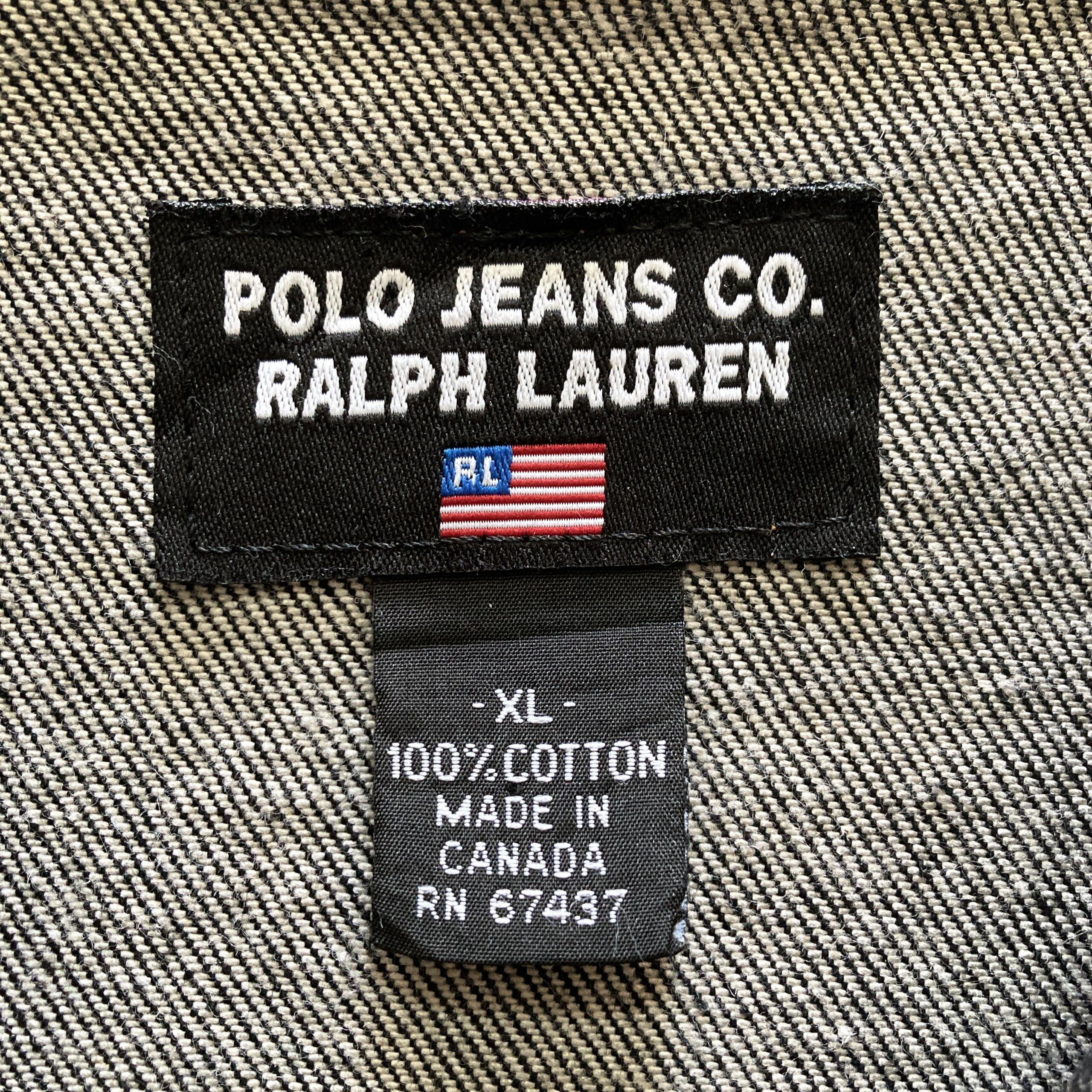 【90s-00s】POLO JEANS RALPH LAUREN ポロジーンズラルフローレン 表記XL レザーパッチ ブランドロゴボタン ブラック デニムジャケット