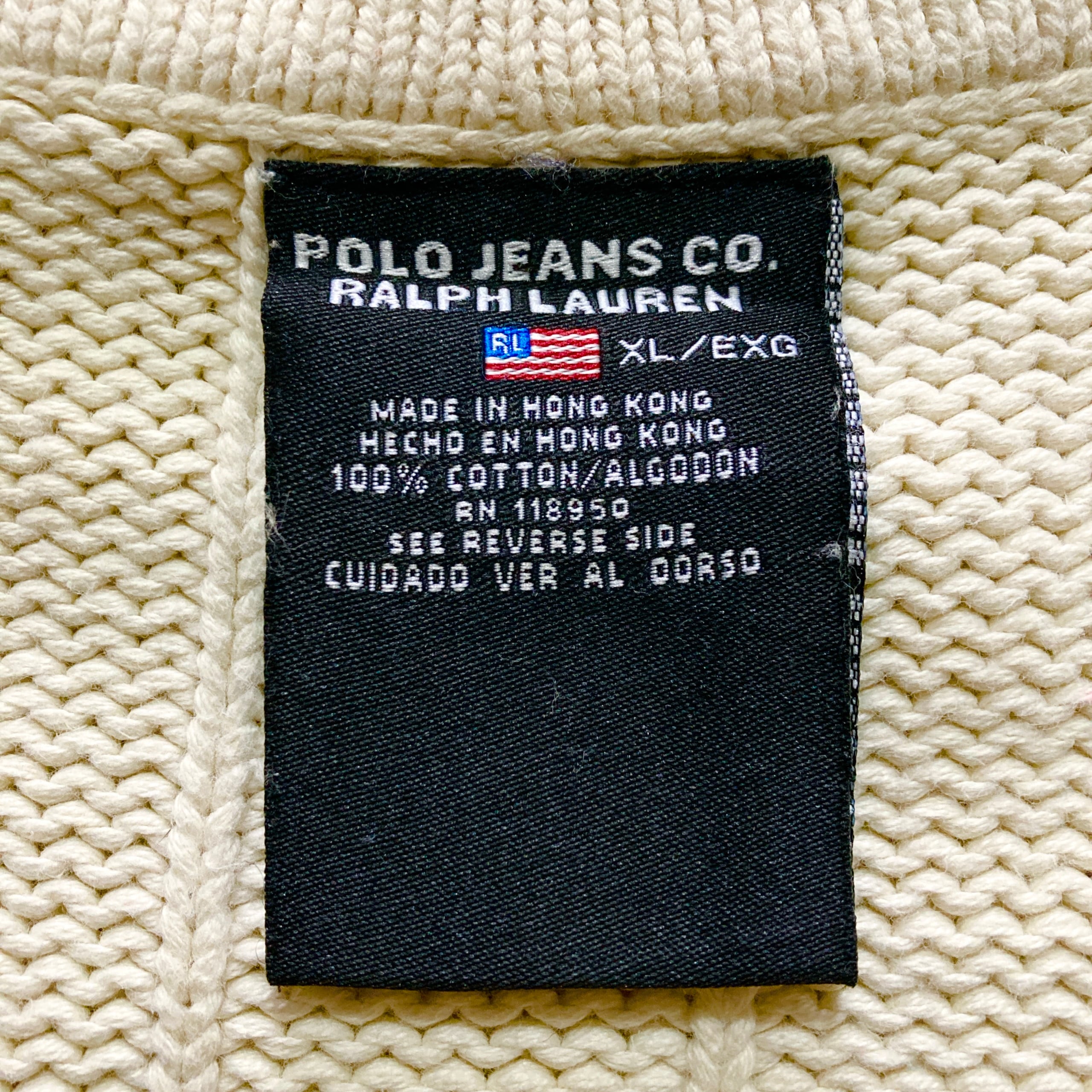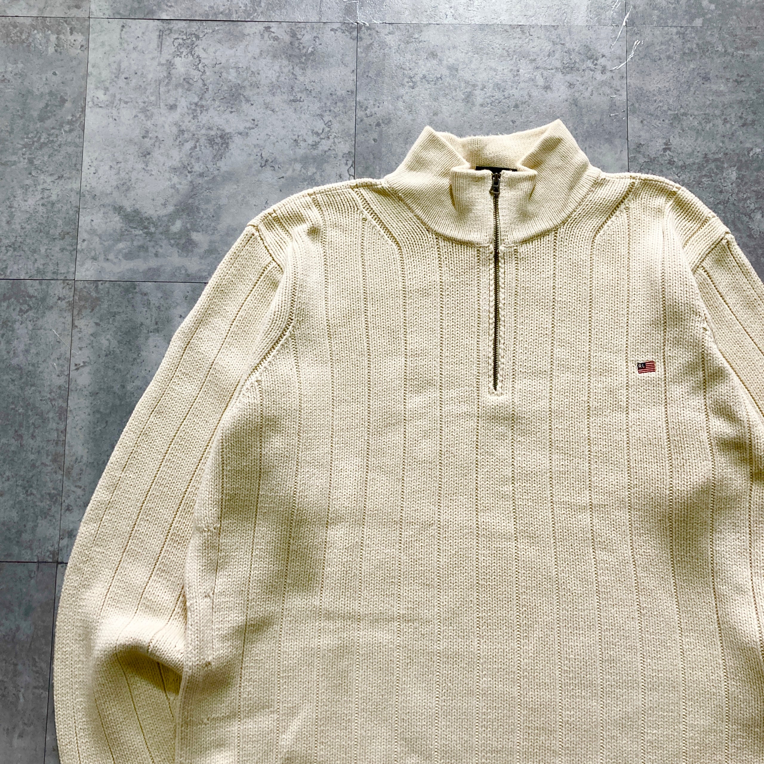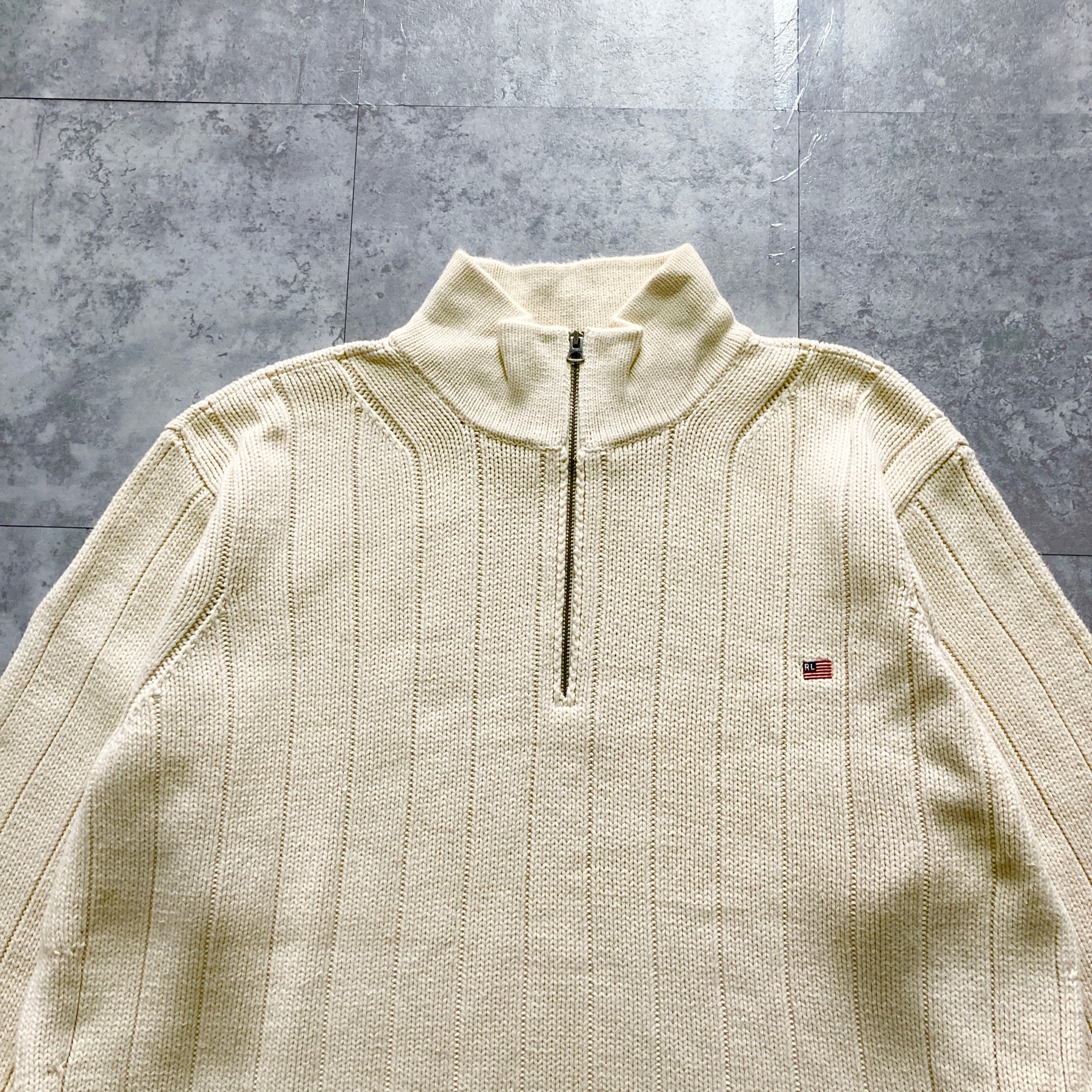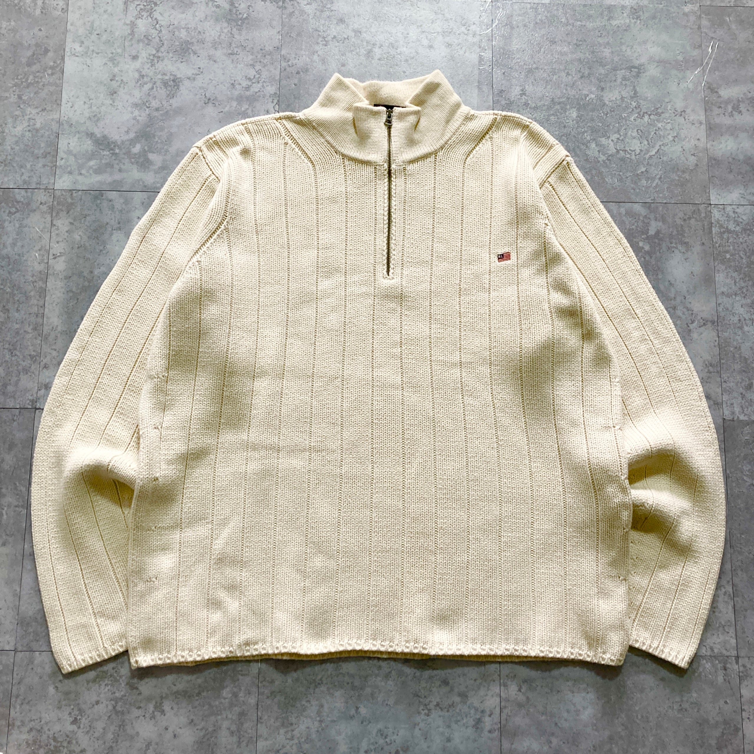 【90s-00s】POLO JEANS RALPH LAUREN ポロジーンズラルフローレン 表記XL ハーフジップ 星条旗 ワンポイント ロゴ刺繍 コットン ニット/セーター | Only_Denim+
