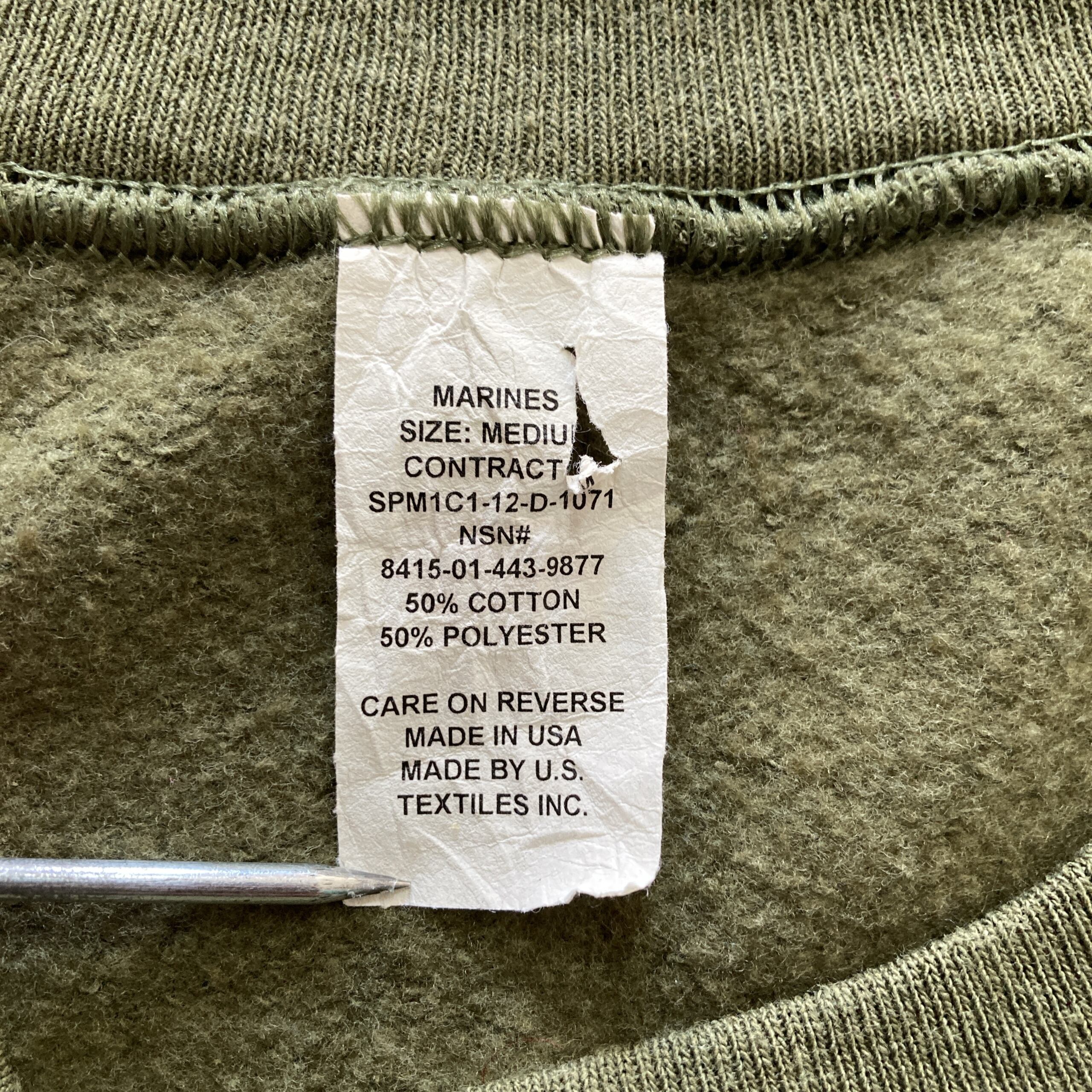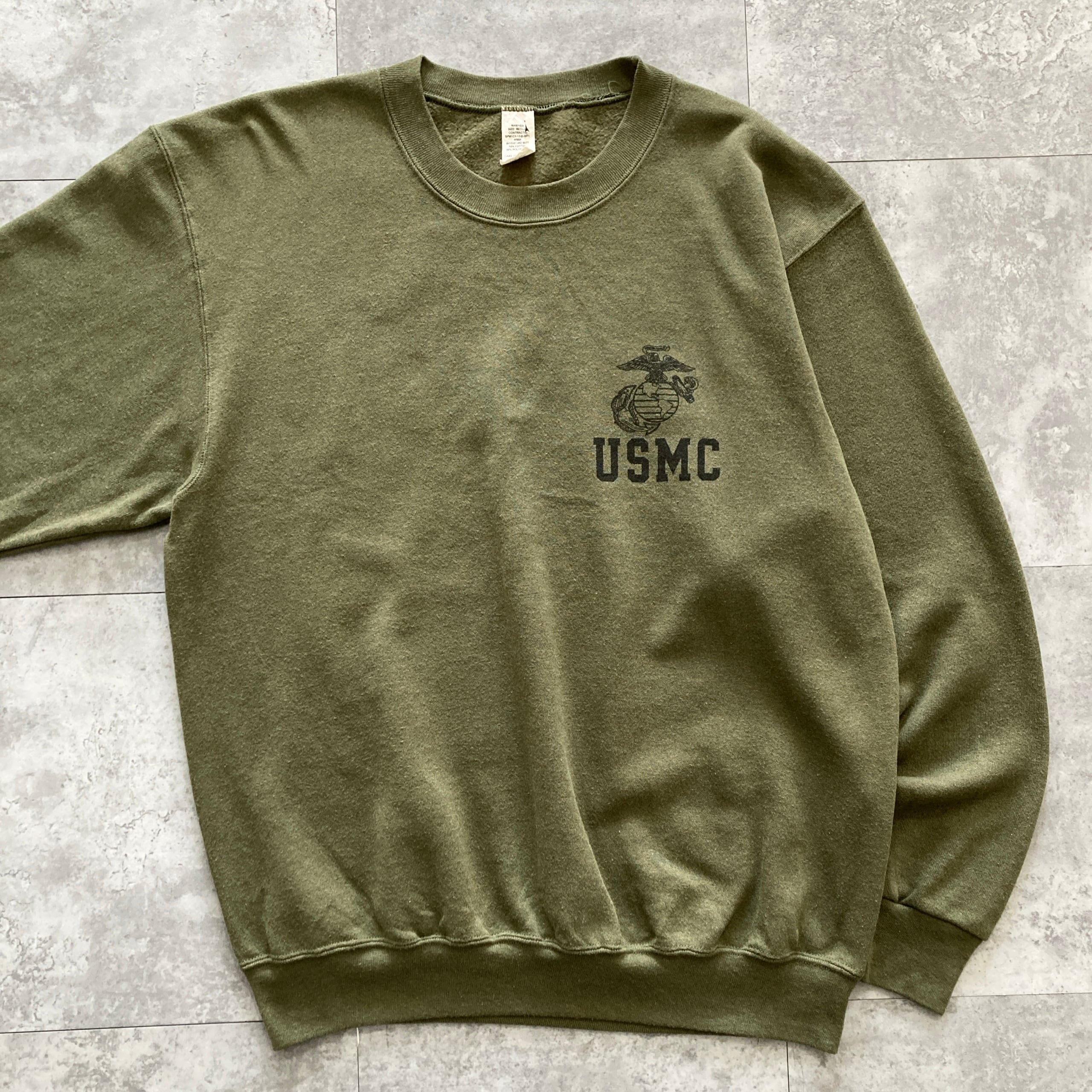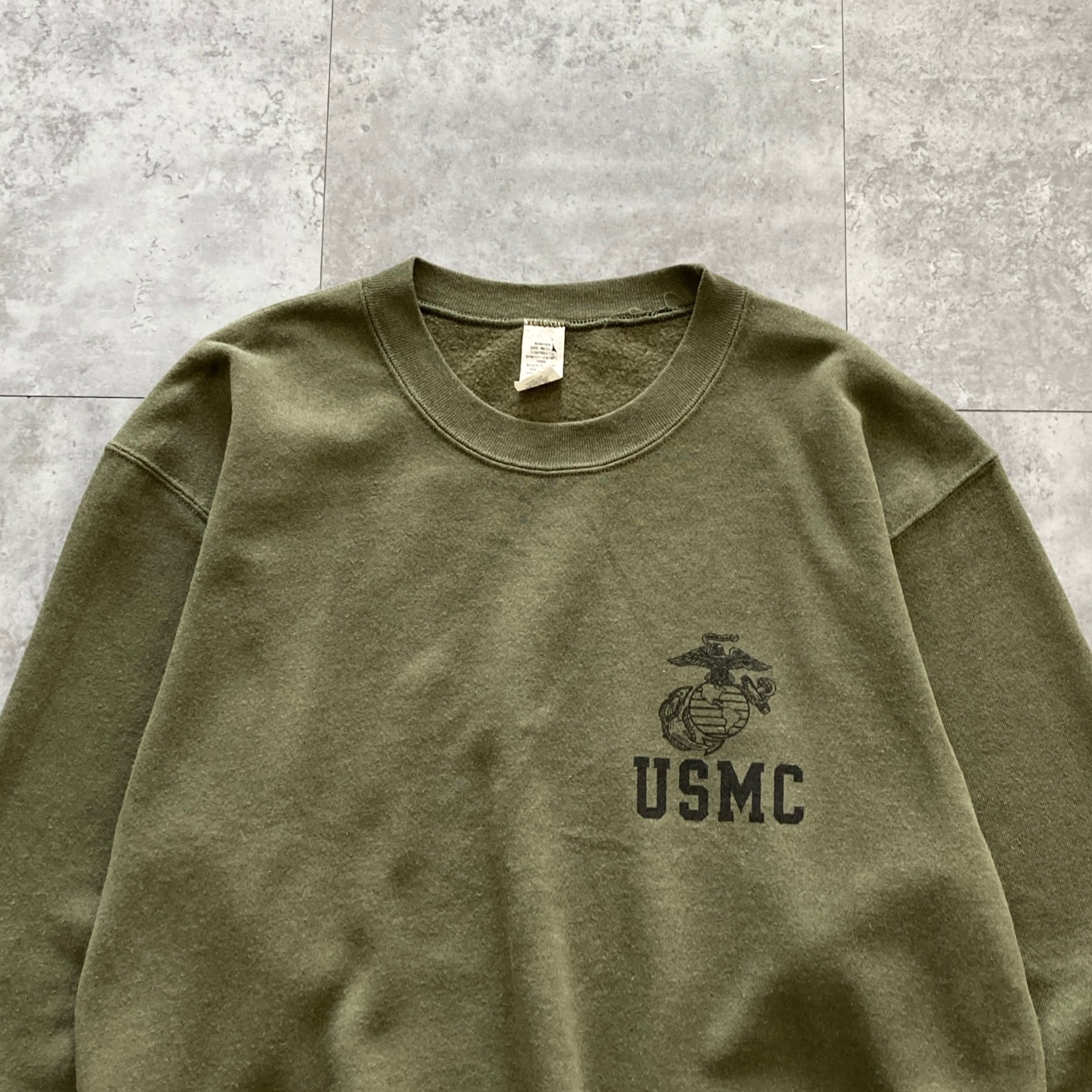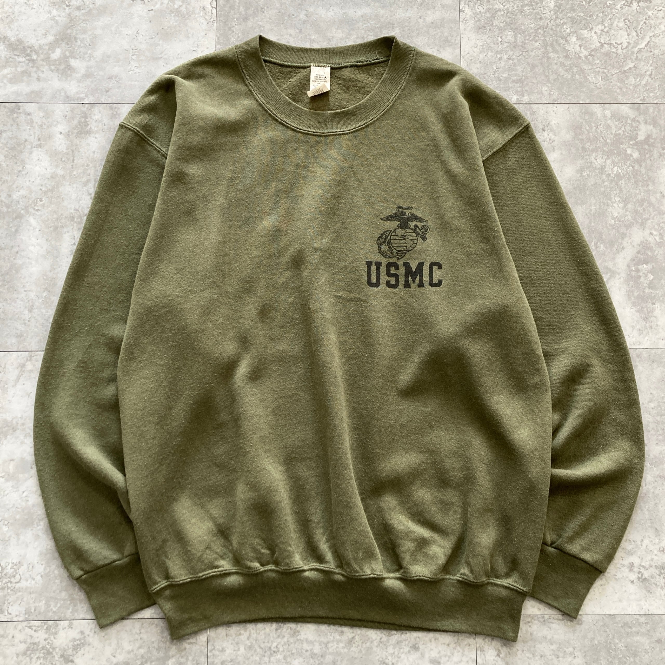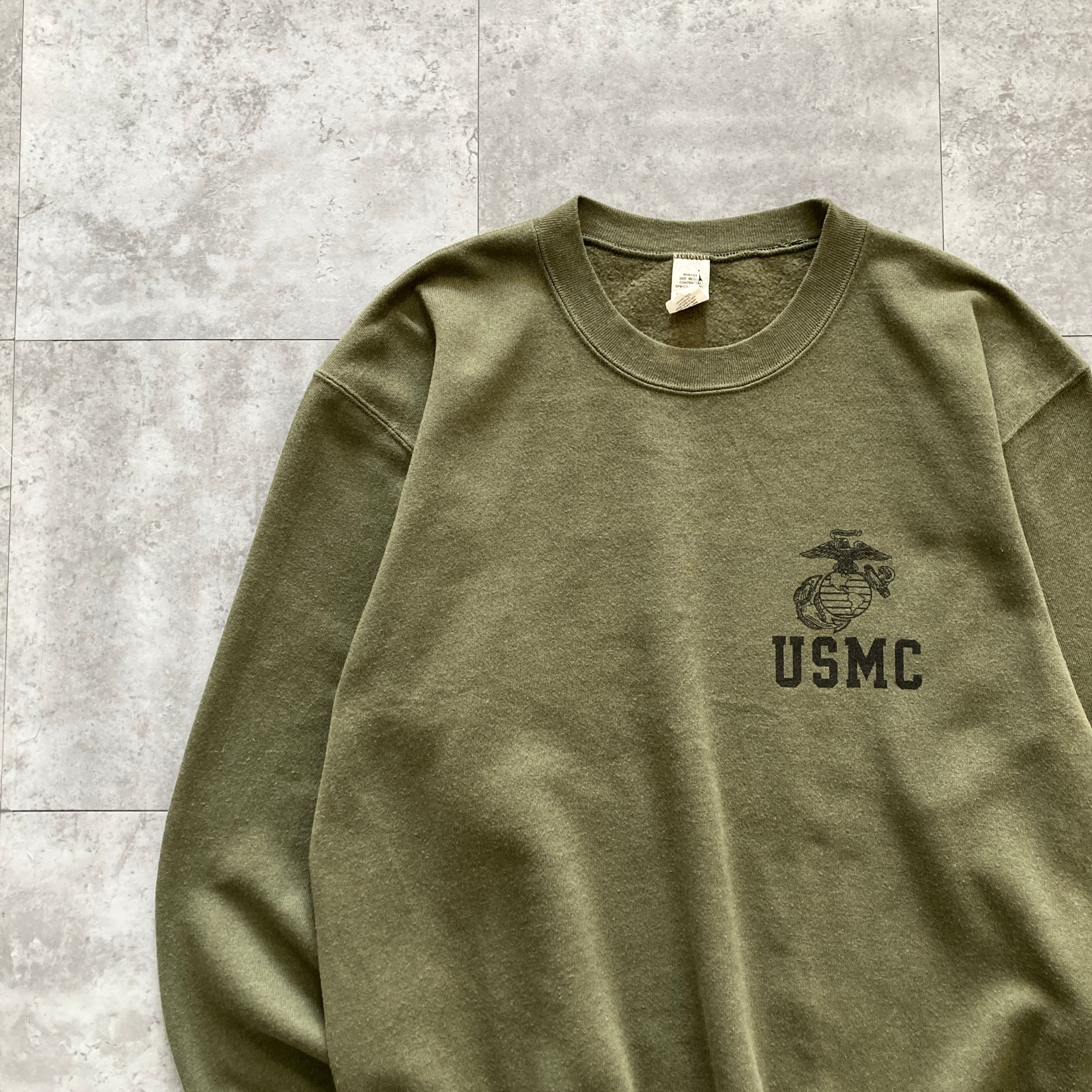 【USA製】USMC(アメリカ海兵隊) アメリカ製 ワンポイント モスグリーン カーキ スウェット