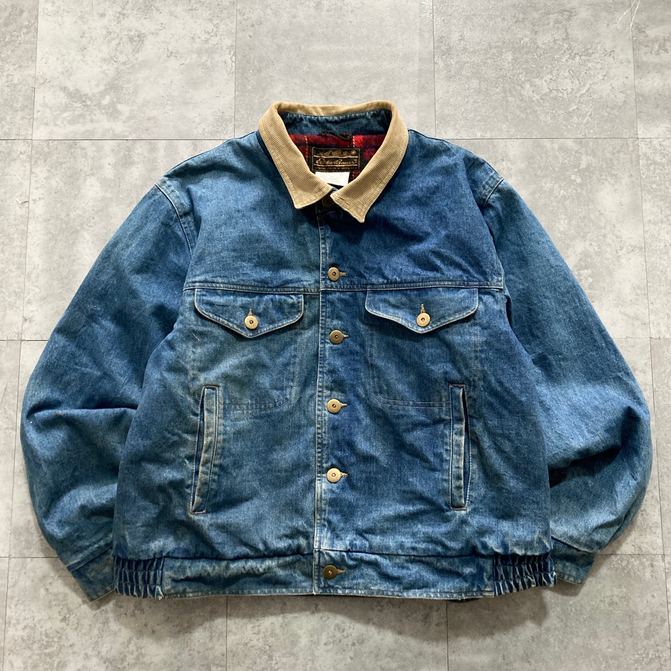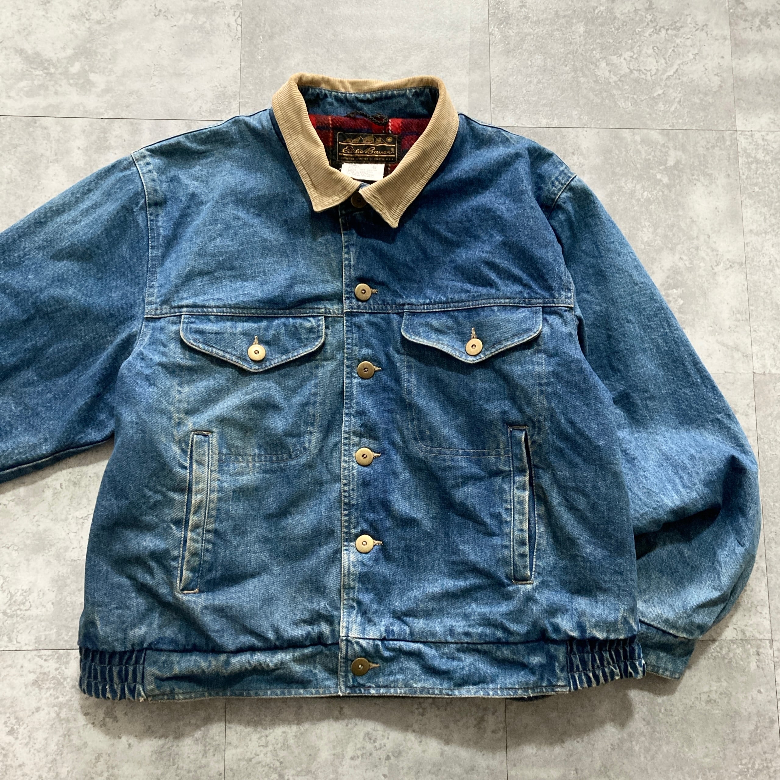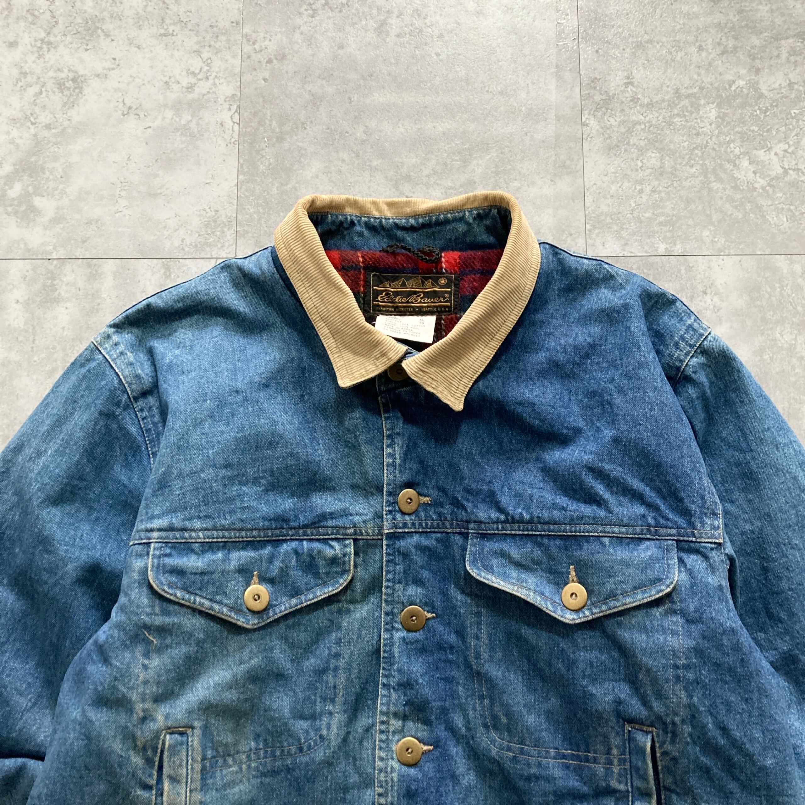 【80s-90s】Eddie Bauer エディーバウアー 表記XL 黒タグ ブランケット付き 襟コーデュロイ デニムジャケット