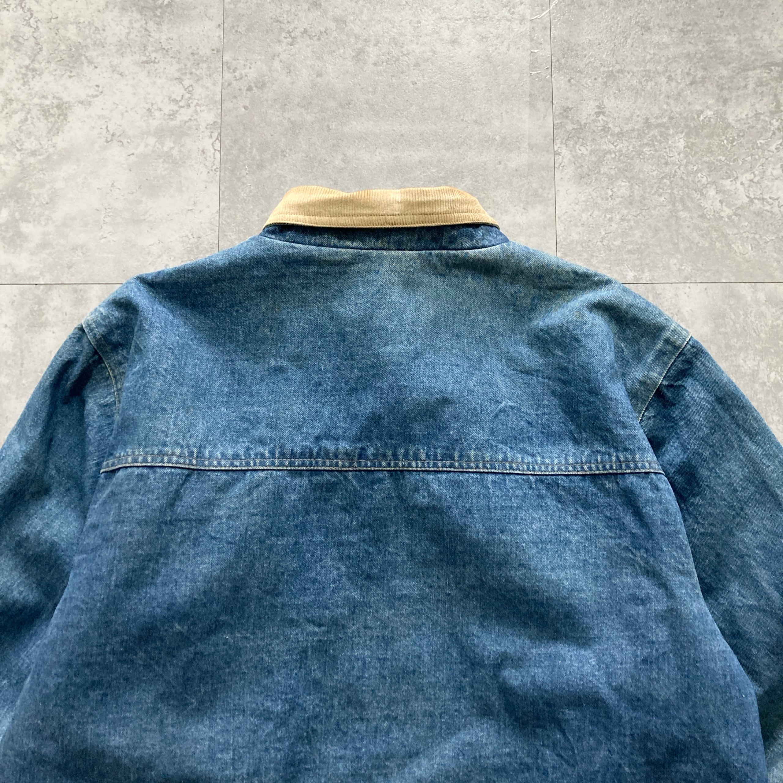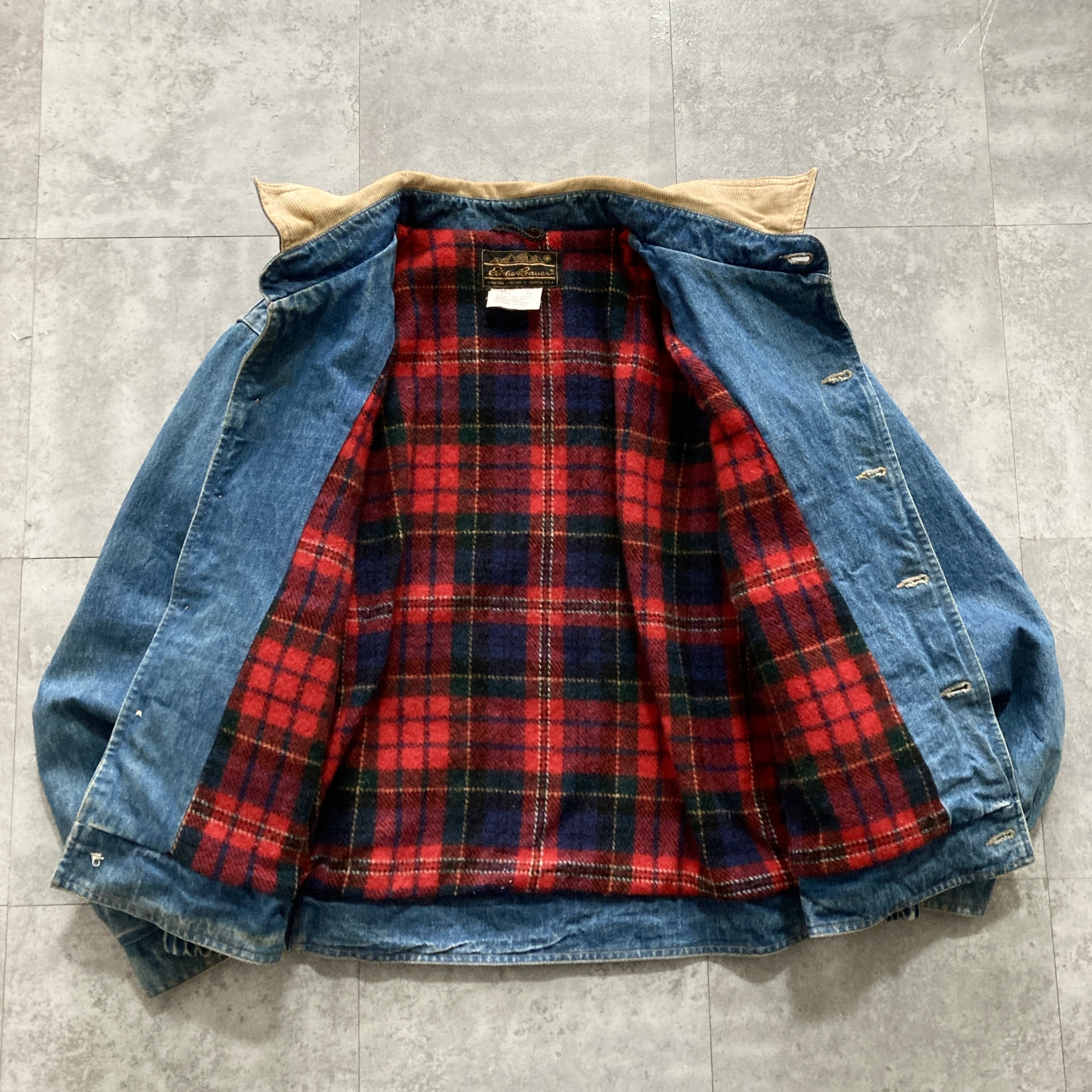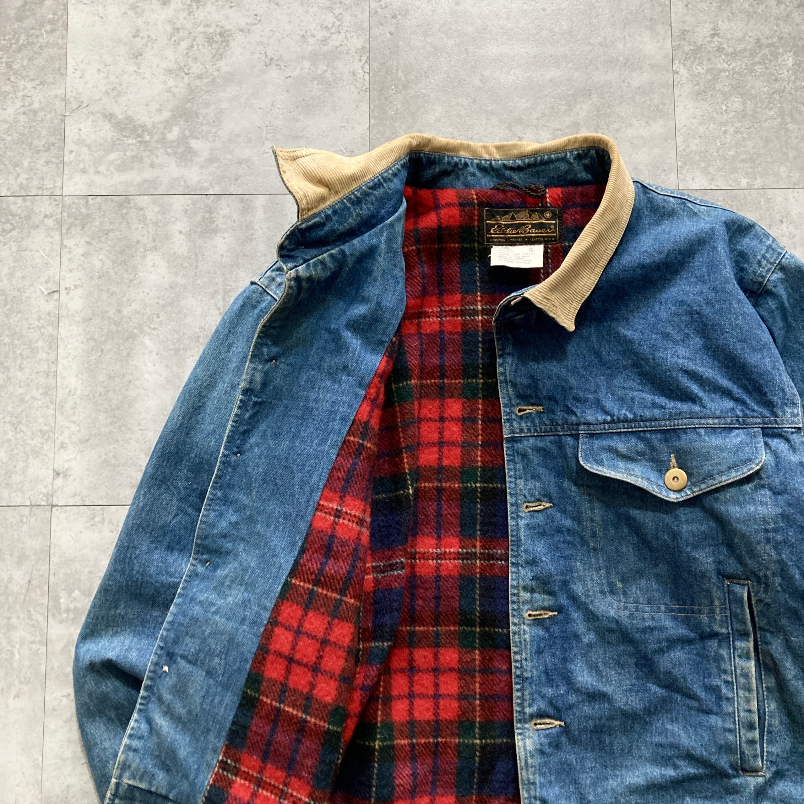 【80s-90s】Eddie Bauer エディーバウアー 表記XL 黒タグ ブランケット付き 襟コーデュロイ デニムジャケット