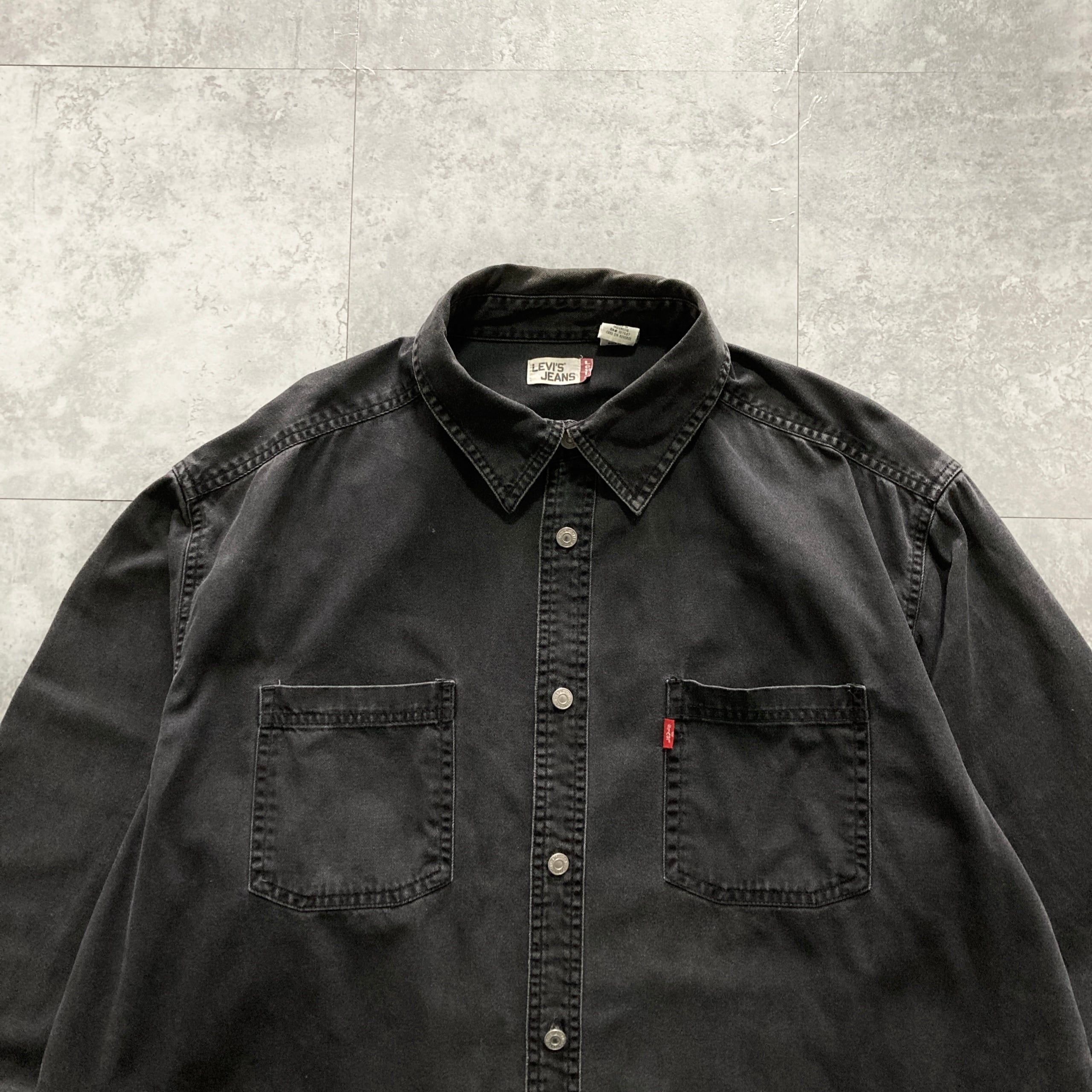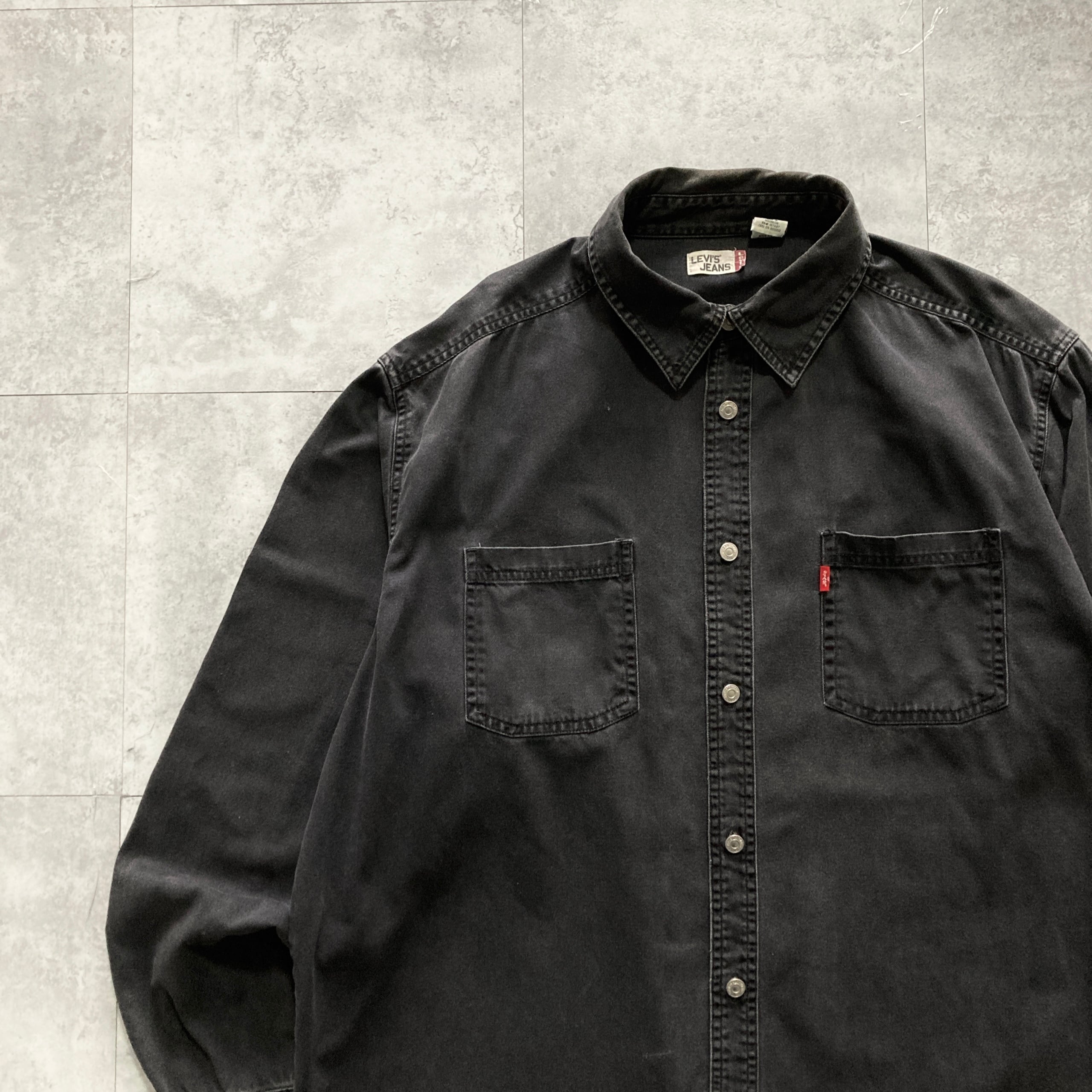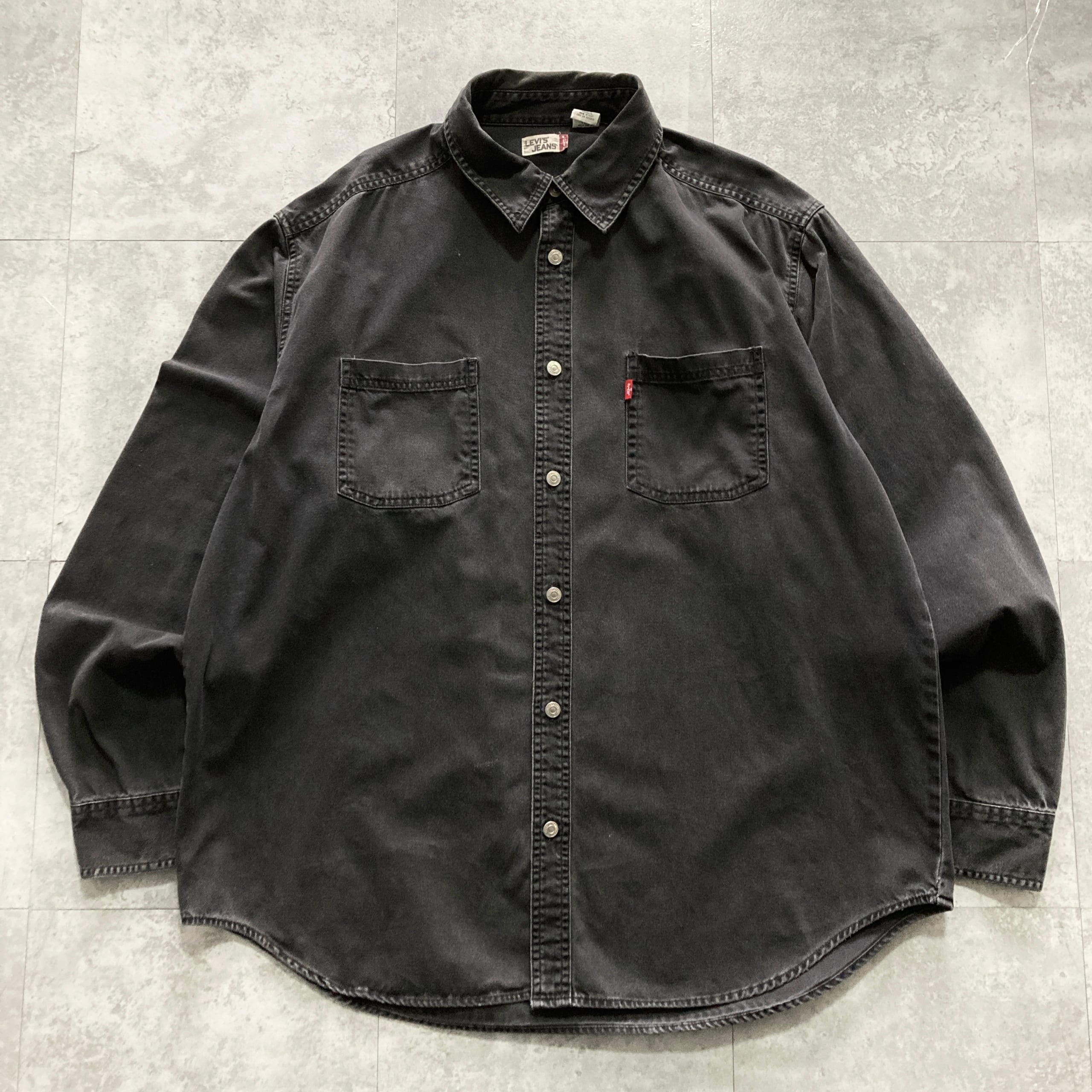 【Size.XL】Levis リーバイス メタルボタン ダブルポケット 先染めブラック デニムシャツ