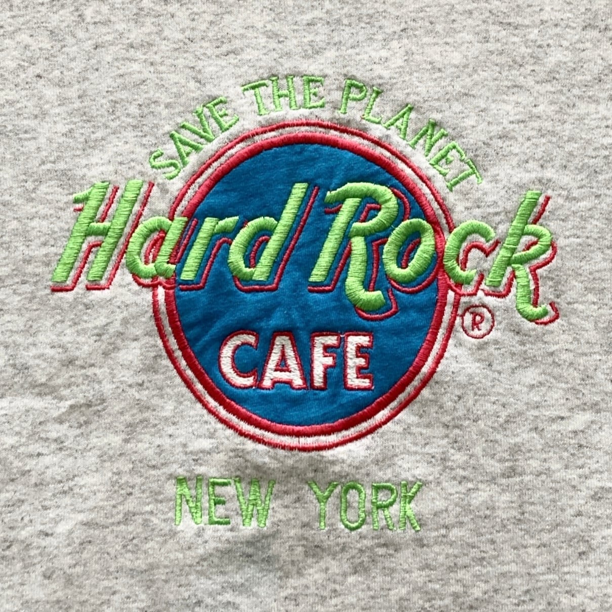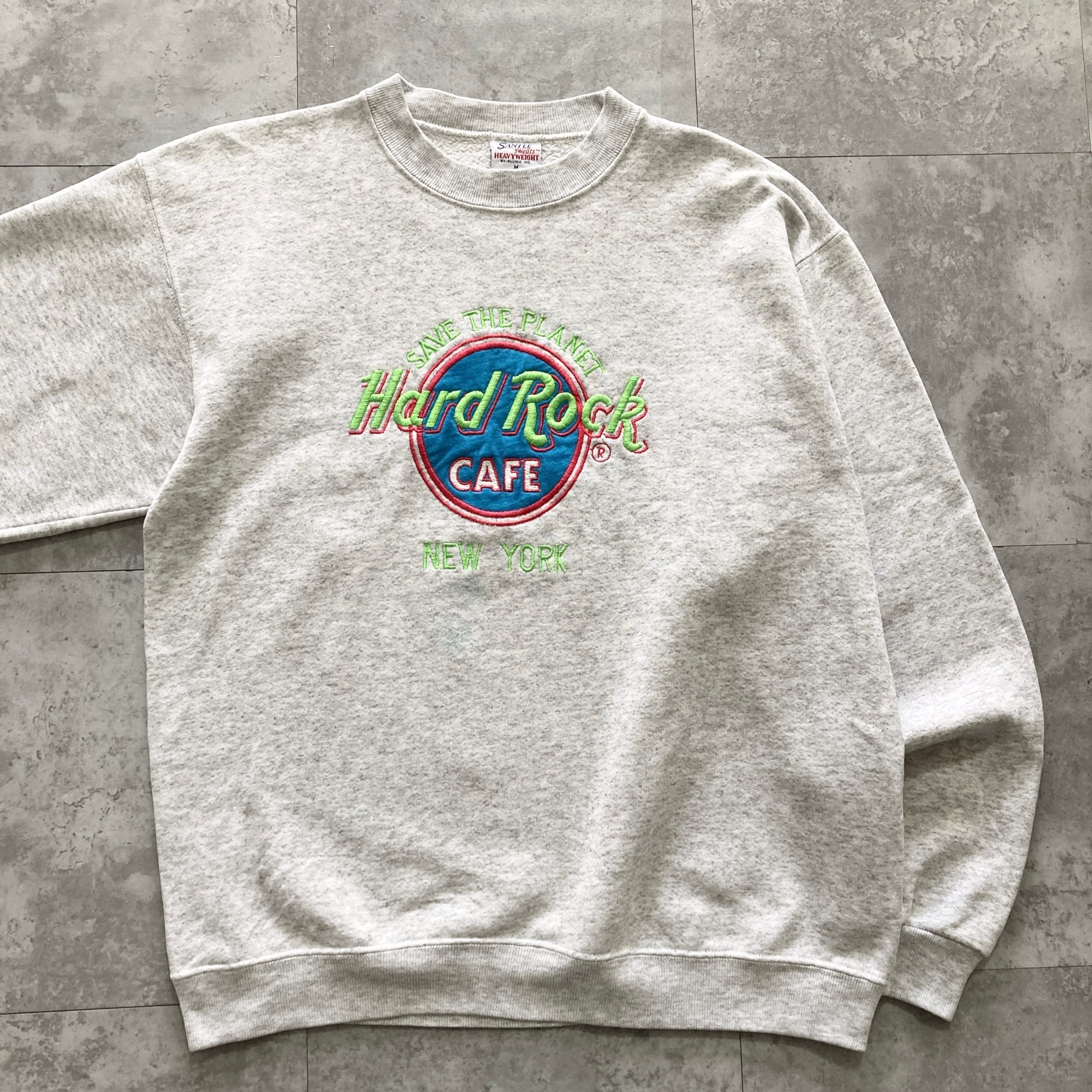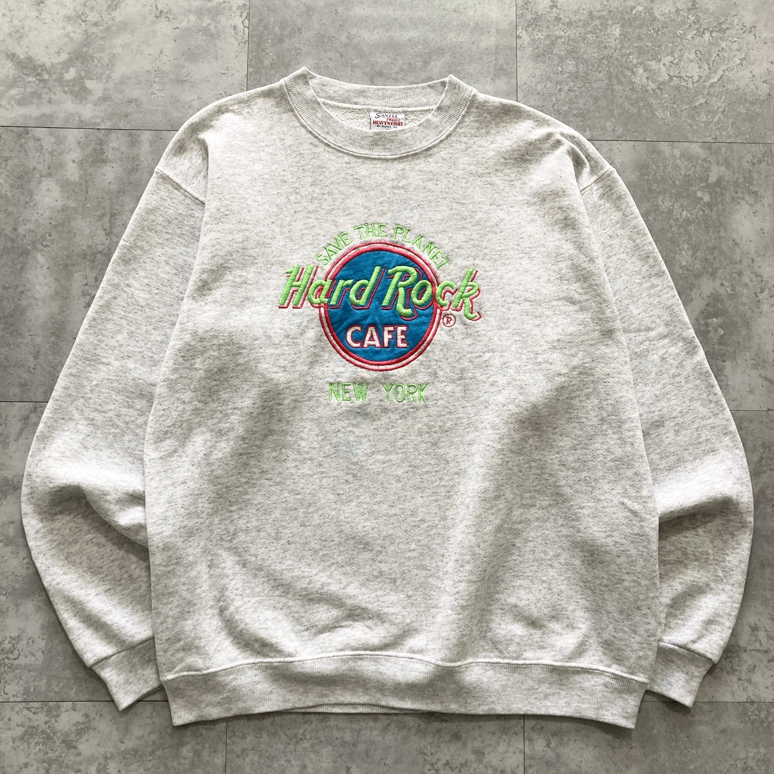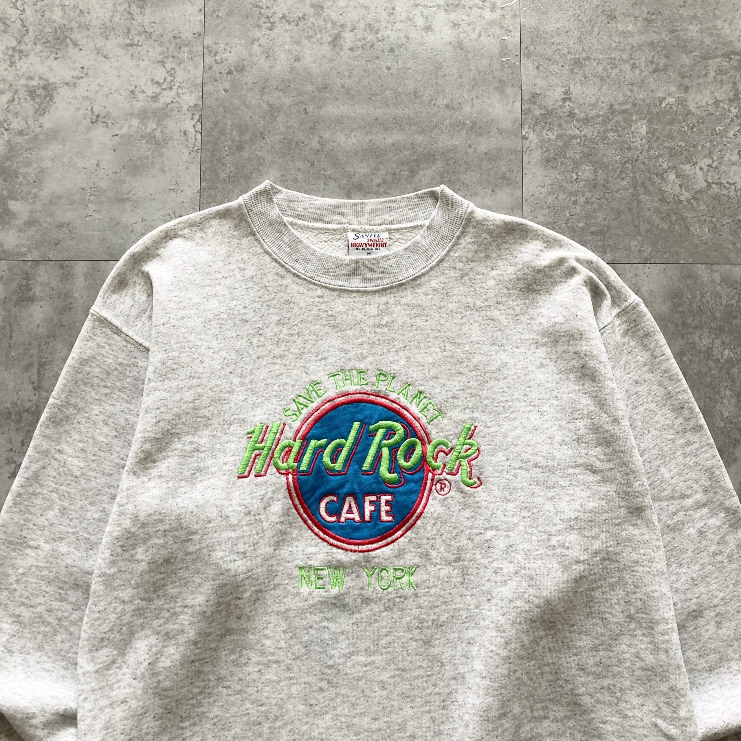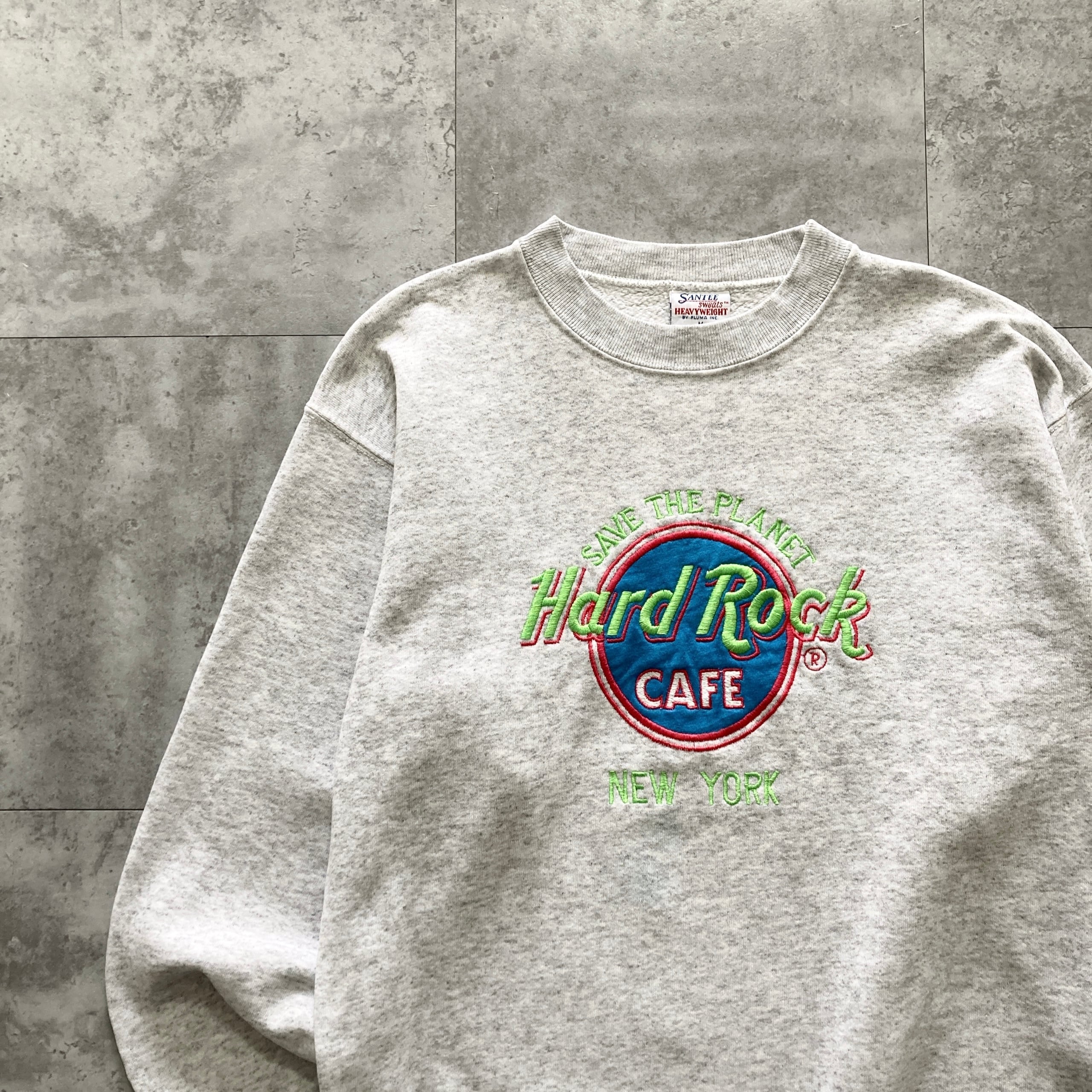 【USA製】90s Hard Rock CAFE ハードロックカフェ 表記M 着用感L程度 アメリカ製 センターロゴ刺繍 NEW YORK SANTEEボディー スウェット