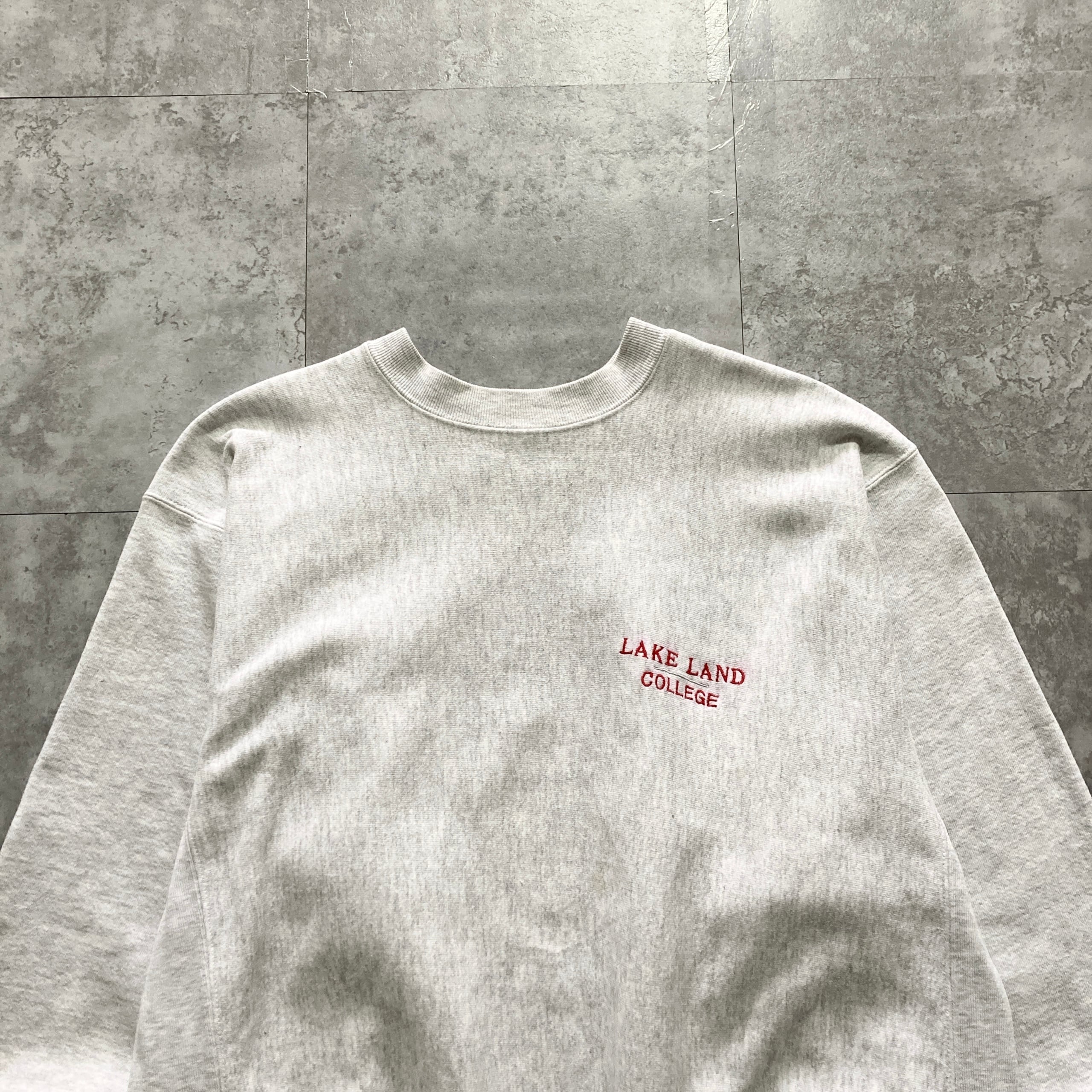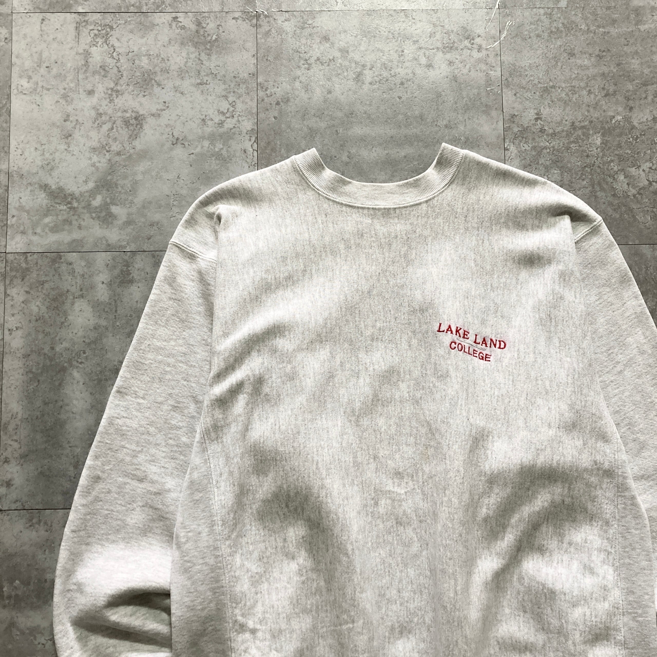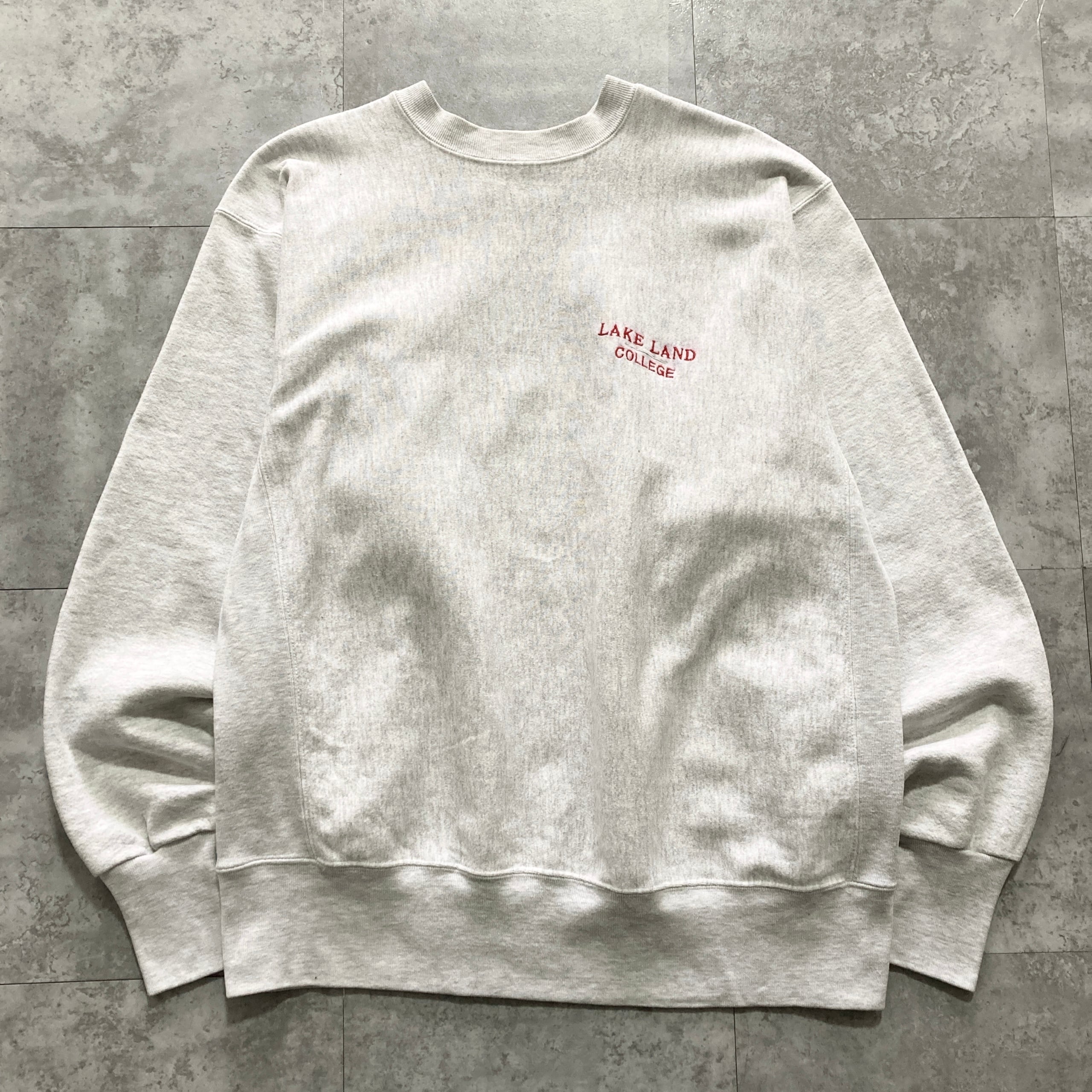 【USA製】80s-90s GRIBBLE 表記XL アメリカ製 ワンポイント ロゴ刺繍 LAKE LAND COLLEGE レイクランド大学 リバースウィーブタイプ 肉厚 スウェット | Only_Denim+