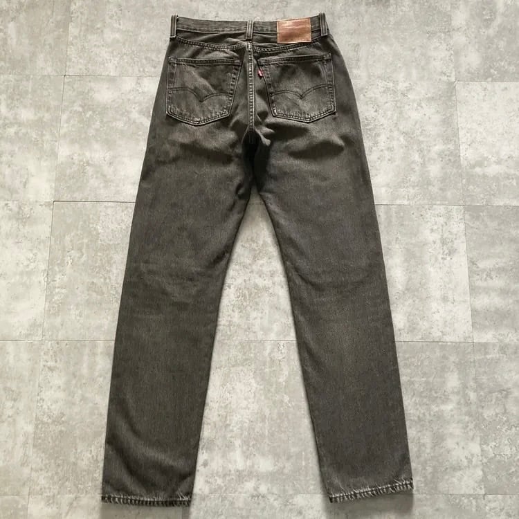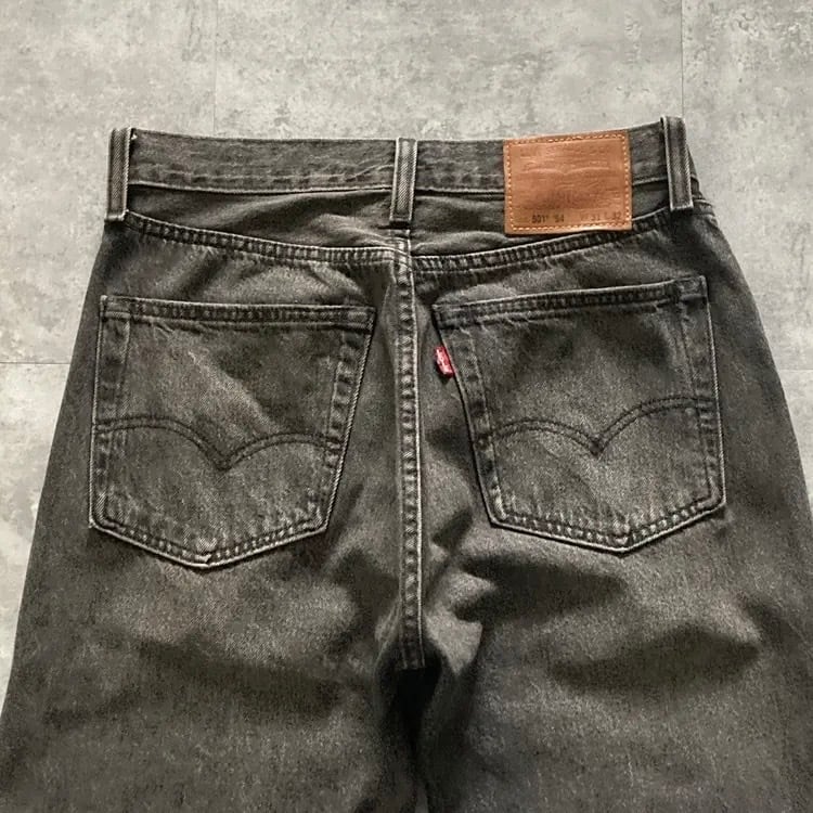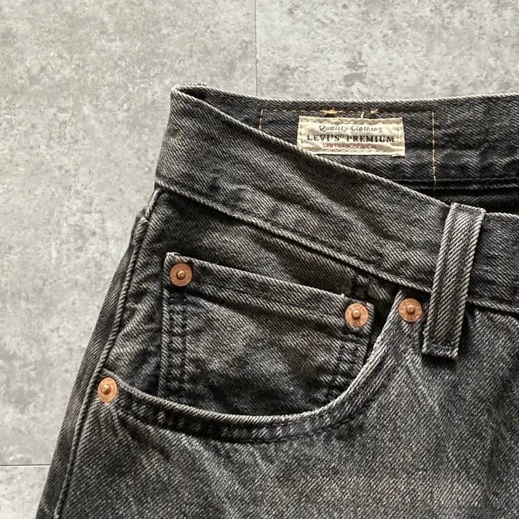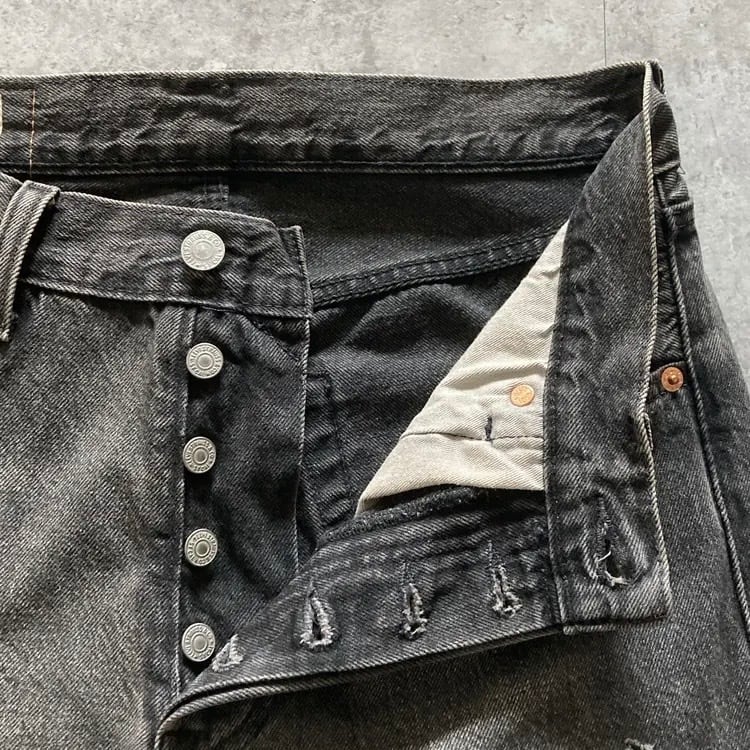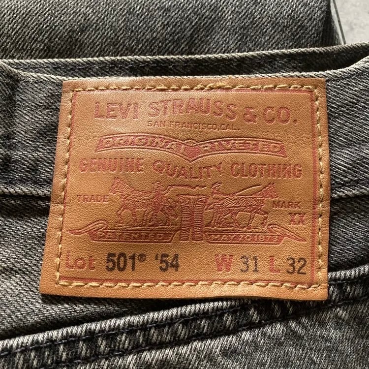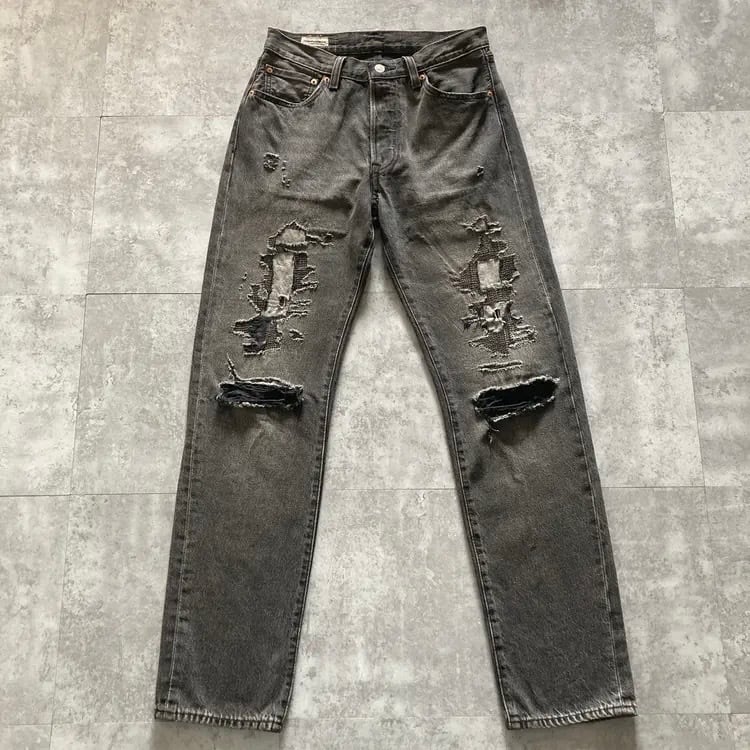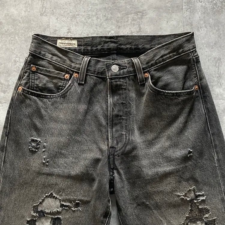 【W31 L32】Levis 501 ’54 PREMIUM リーバイス BIG E レザーパッチ チェーンステッチ ボタンフライ 先染めブラック ダメージ加工 デニムパンツ ジーンズ | Only_Denim+