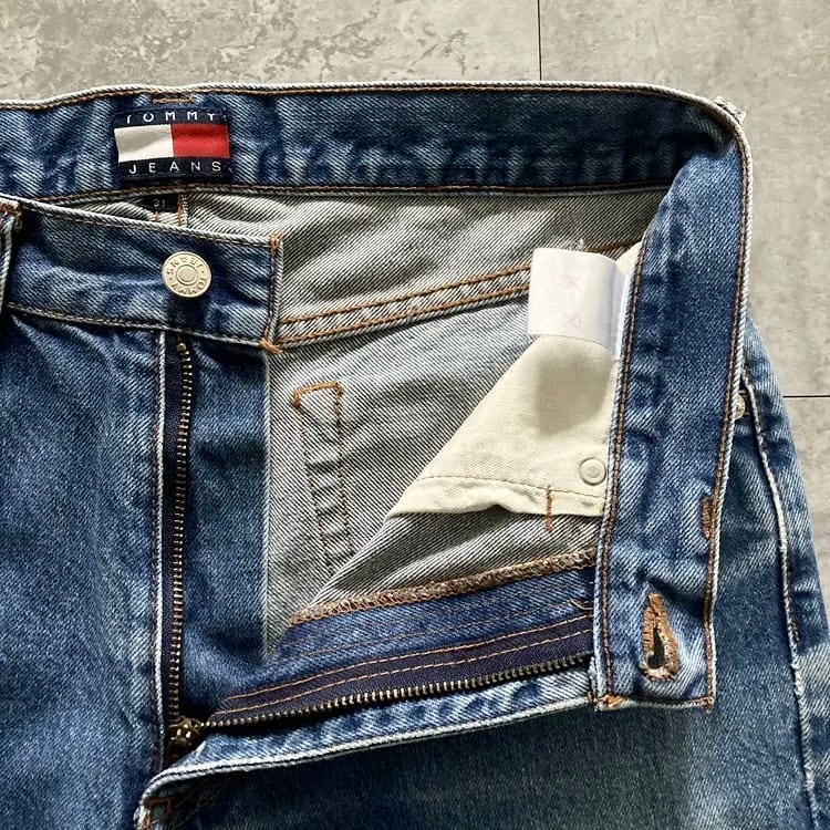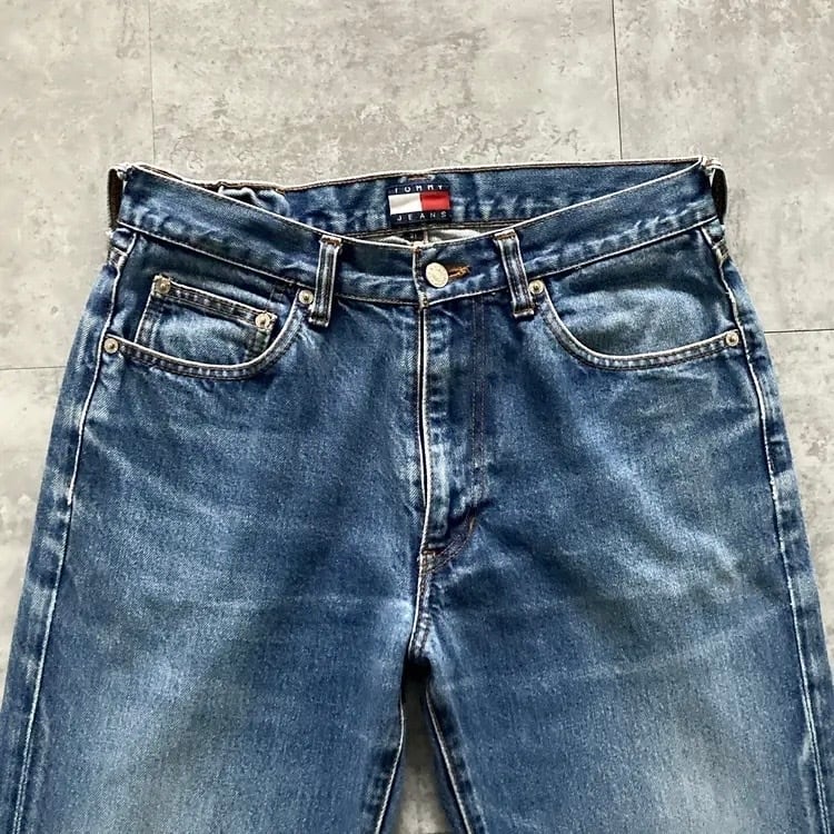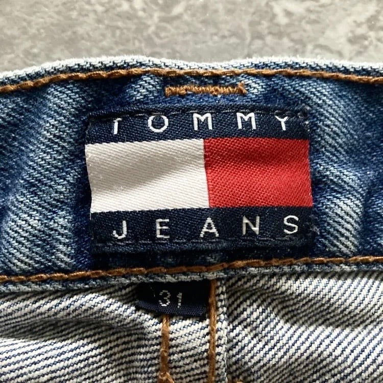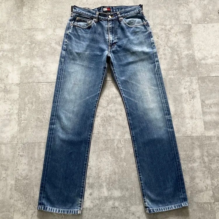 【size 31】TOMMY HILFIGER トミーフィルフィガー TOMMY JEANS トミージーンズ ジッパーフライ レザーパッチ 濃紺 縦落ち ヒゲ デニムパンツ ジーンズ | Only_Denim+