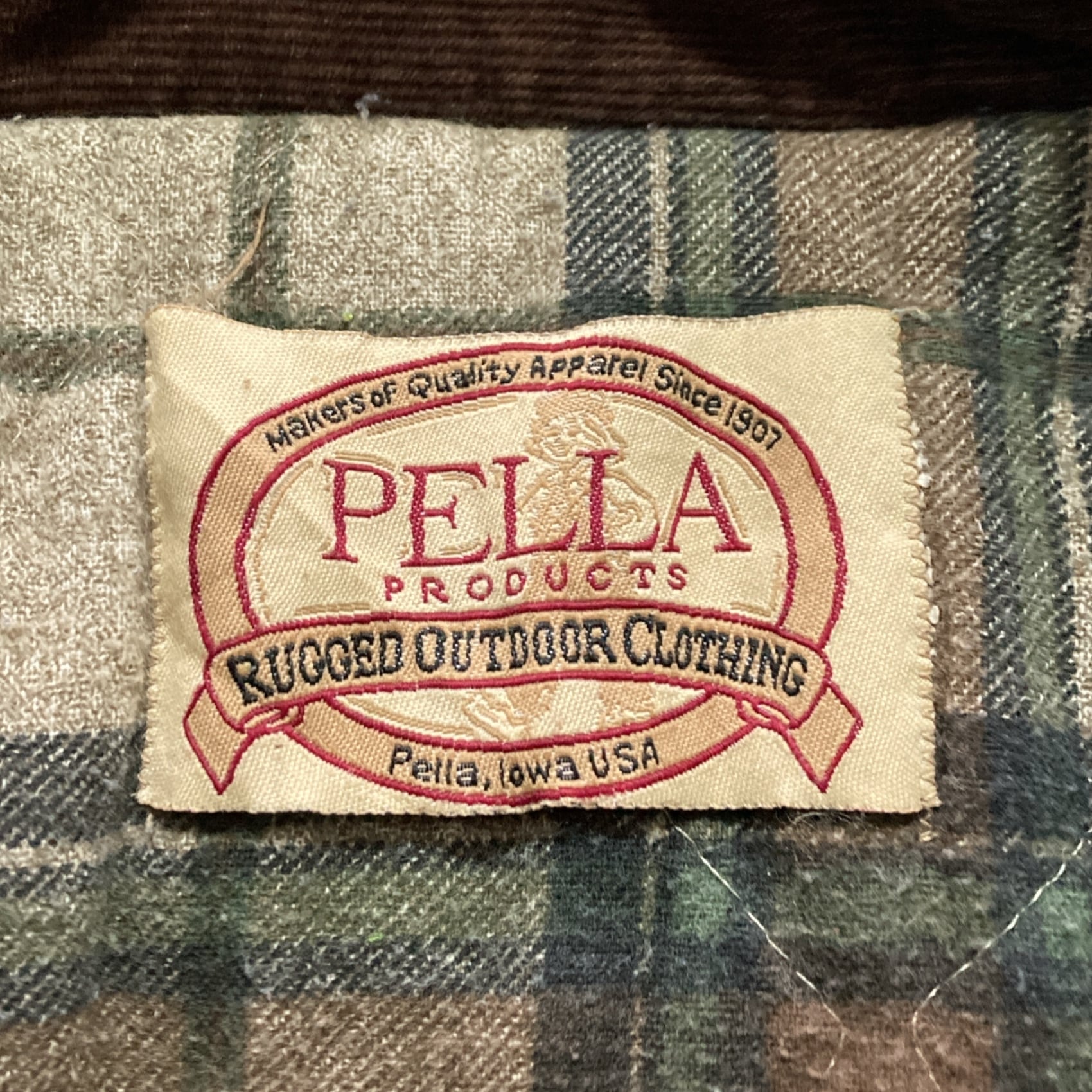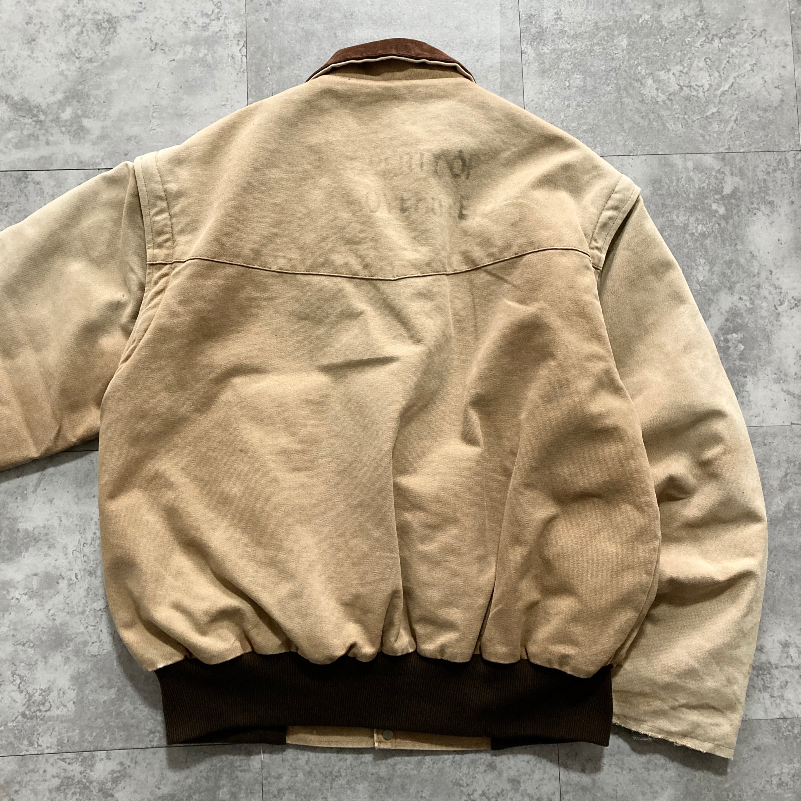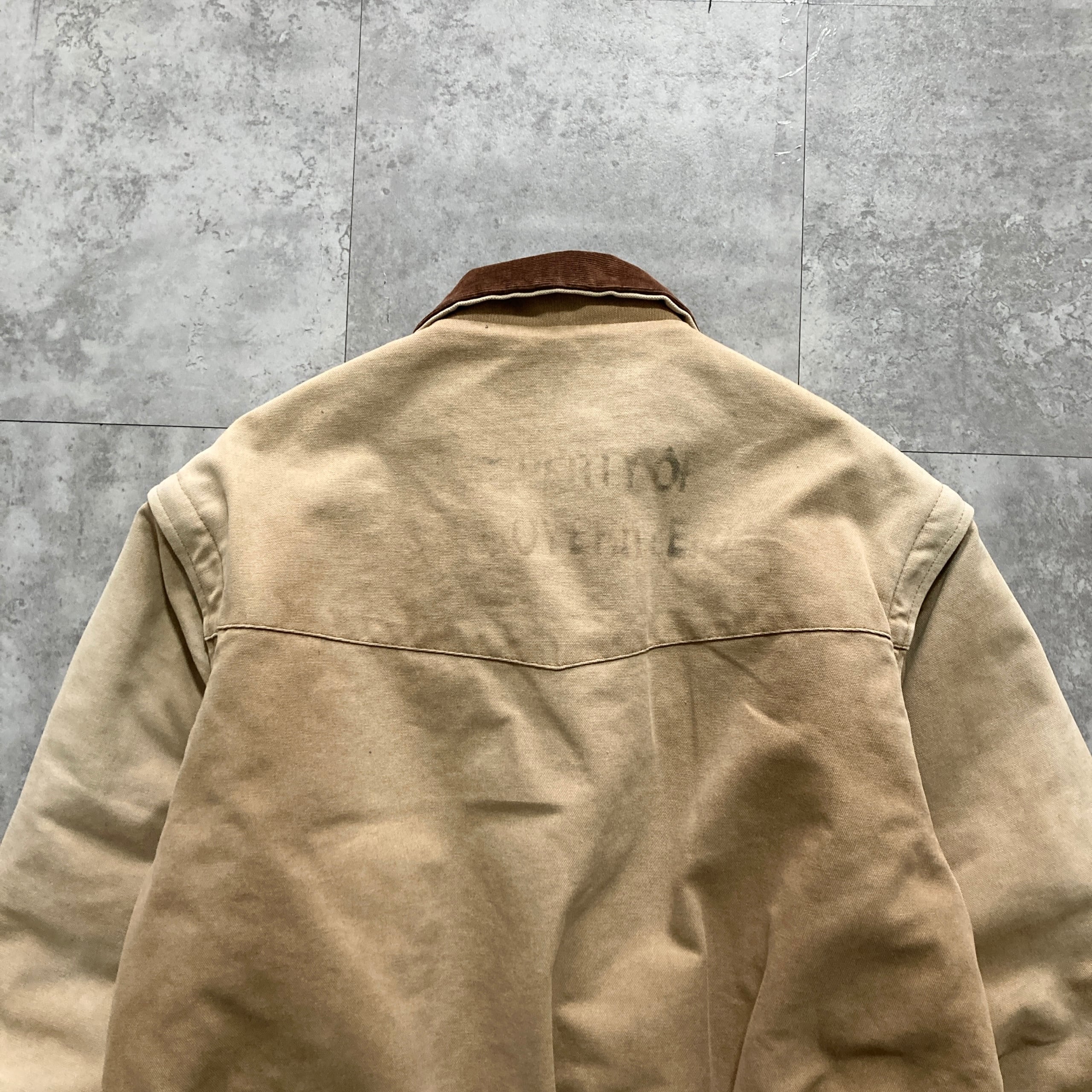 【USA製】80s-90s PELLA PRODUCTS ペラプロダクツ 表記L アメリカ製 ダック生地 袖着脱可 襟コーデュロイ 裏地チェック柄 フェード感 ダックジャケット/ワークジャケット | Only_Denim+