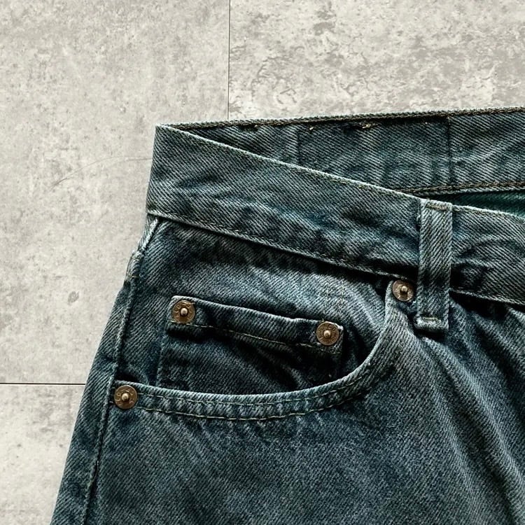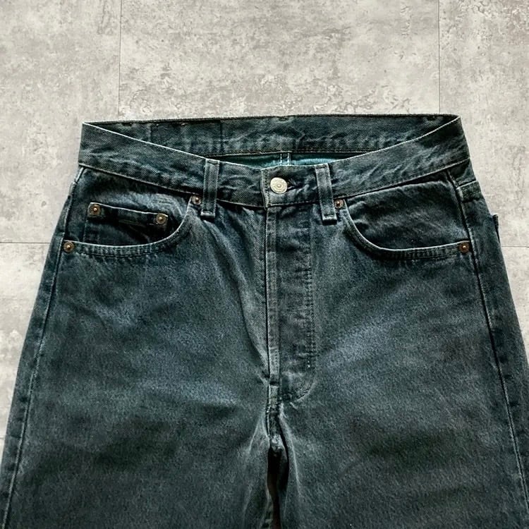 【W30 L34】90's US.Levis 501 リーバイス エルパソ工場(525) ボタン裏刻印525 USA製 アメリカ製 後染めダークグリーン ボタンフライ デニムパンツ ジーンズ
