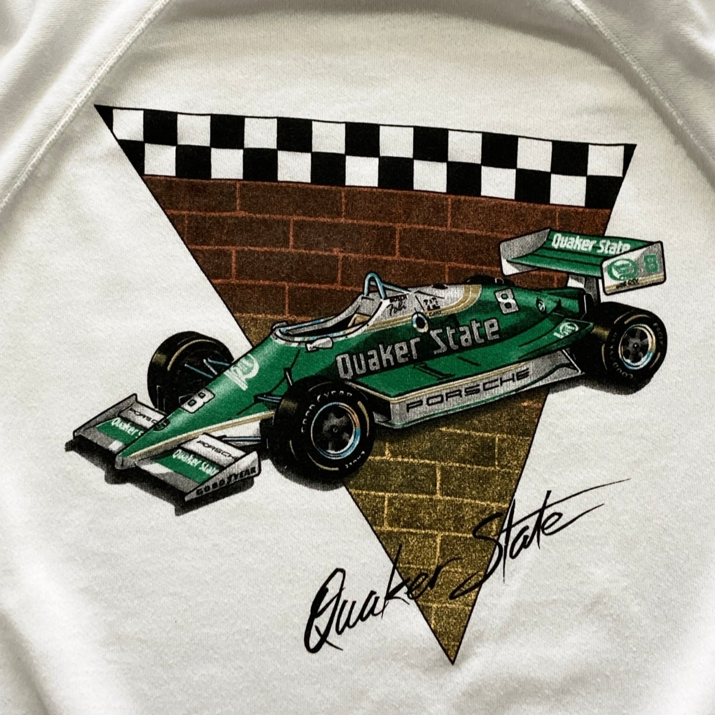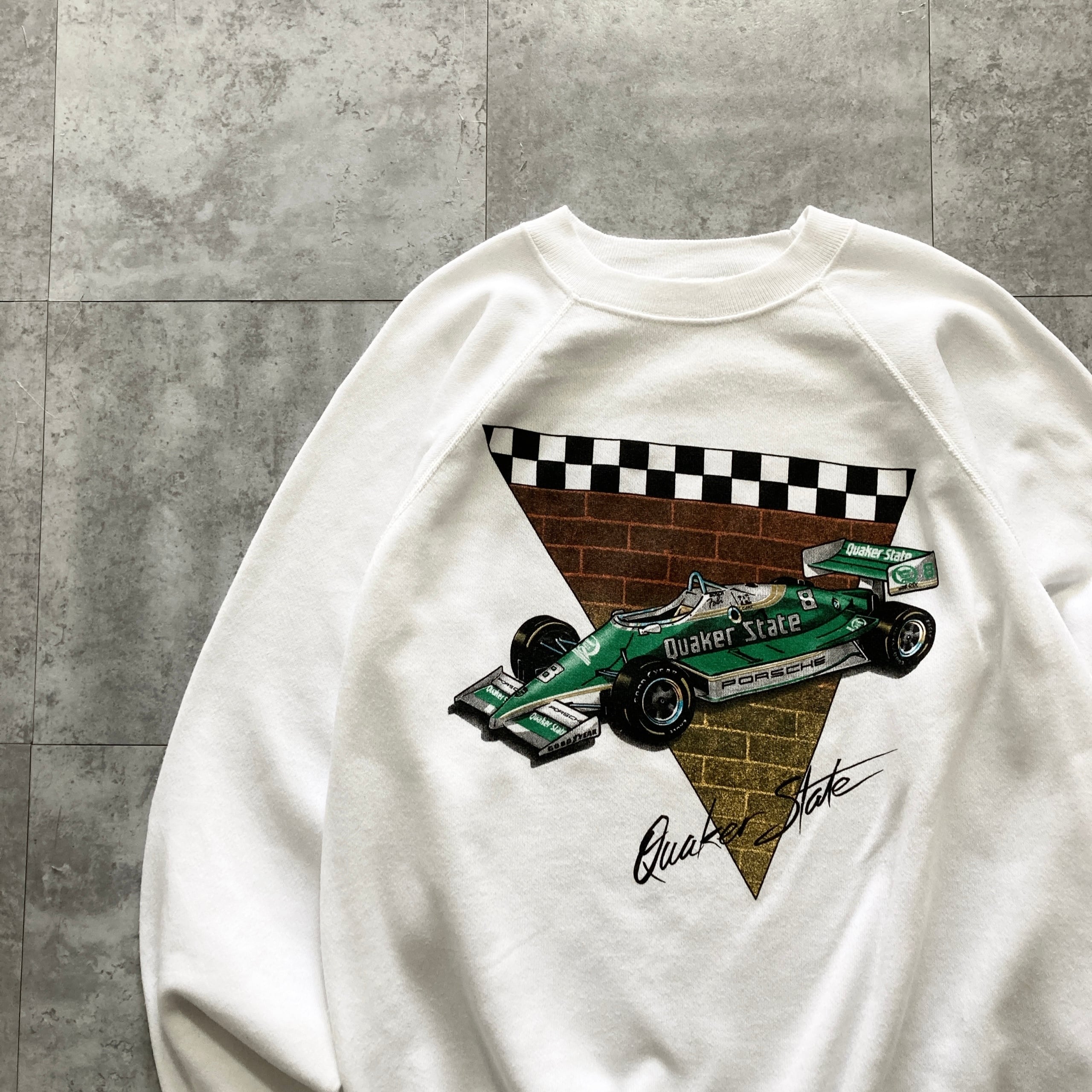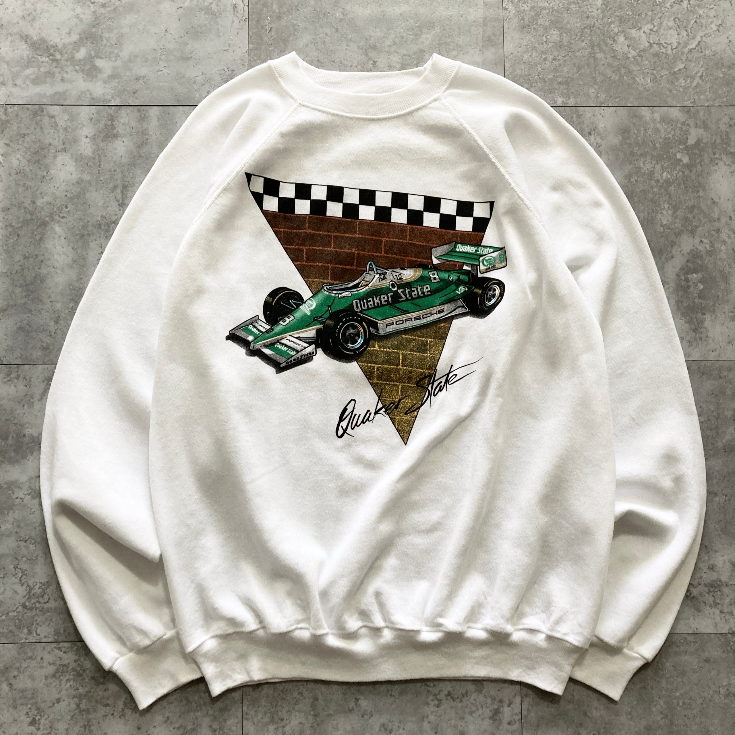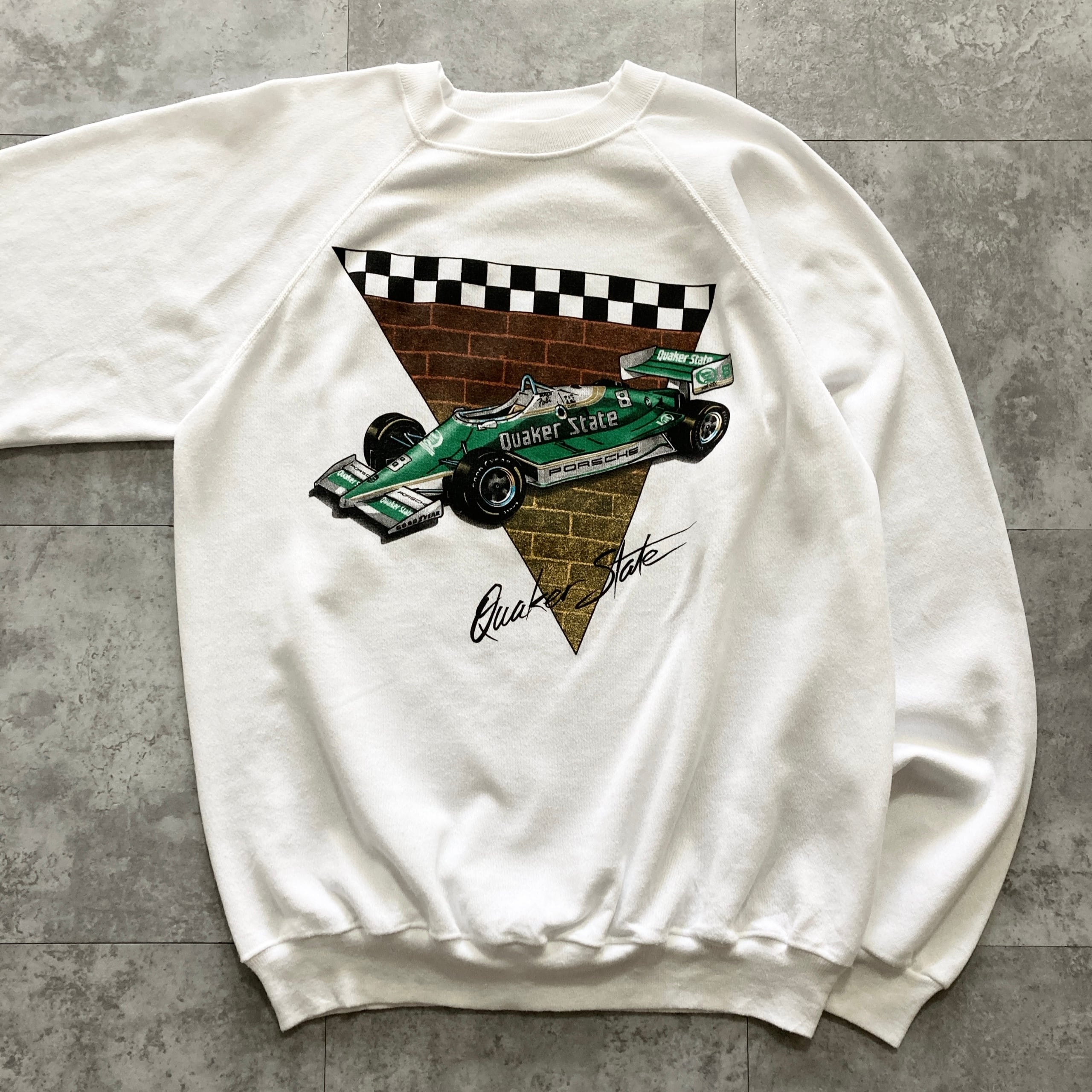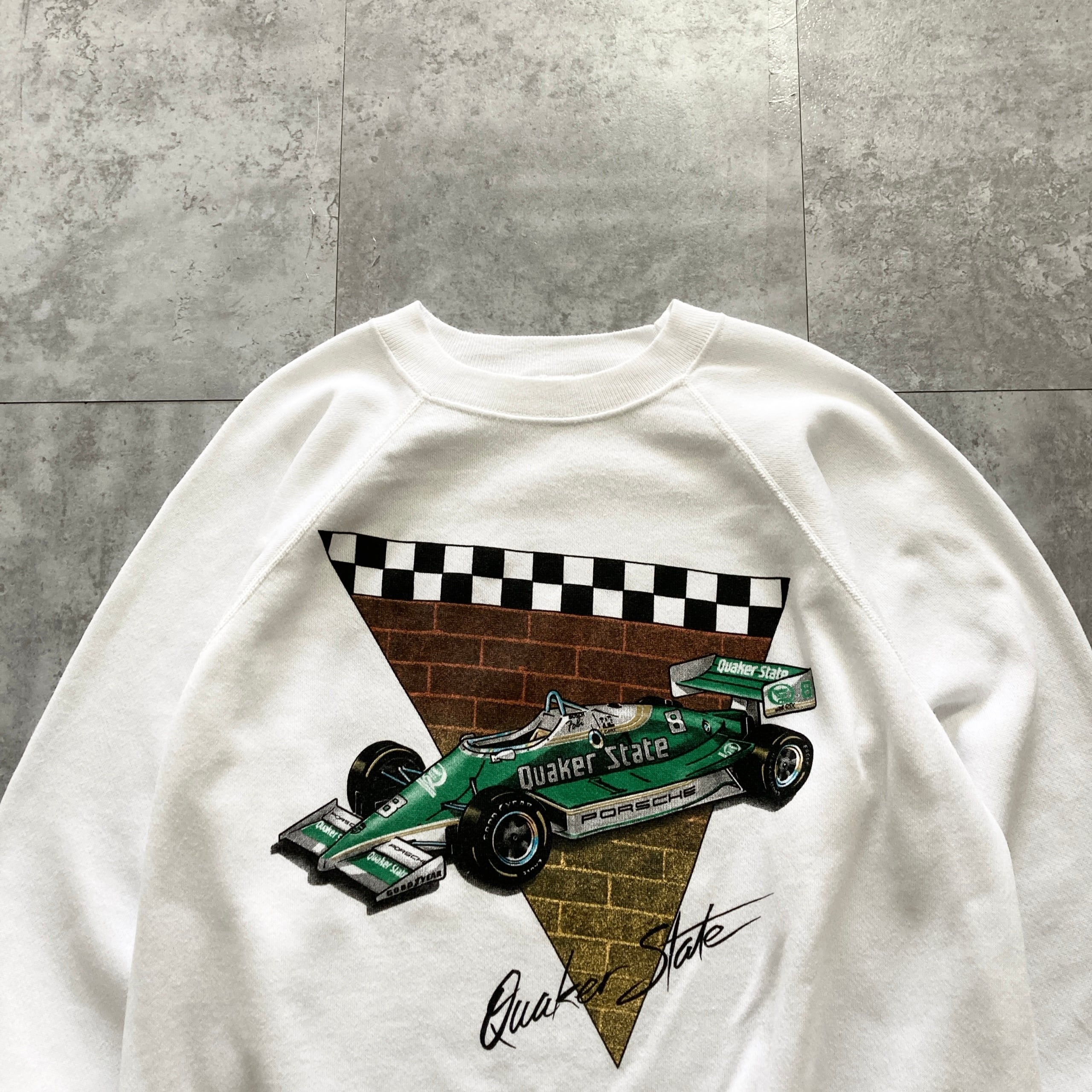 【USA製】80s Hanes ヘインズ 表記XL アメリカ製 レーシングカー クエーカーステート Quaker State PORSCHE ポルシェ ホワイト スウェット