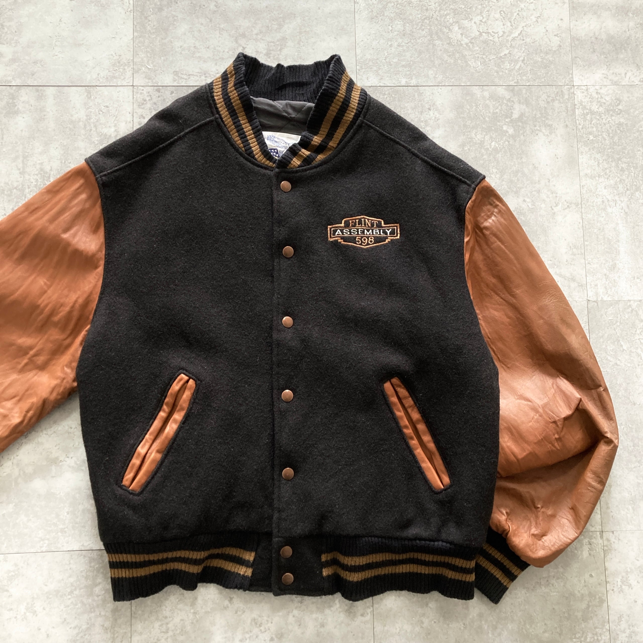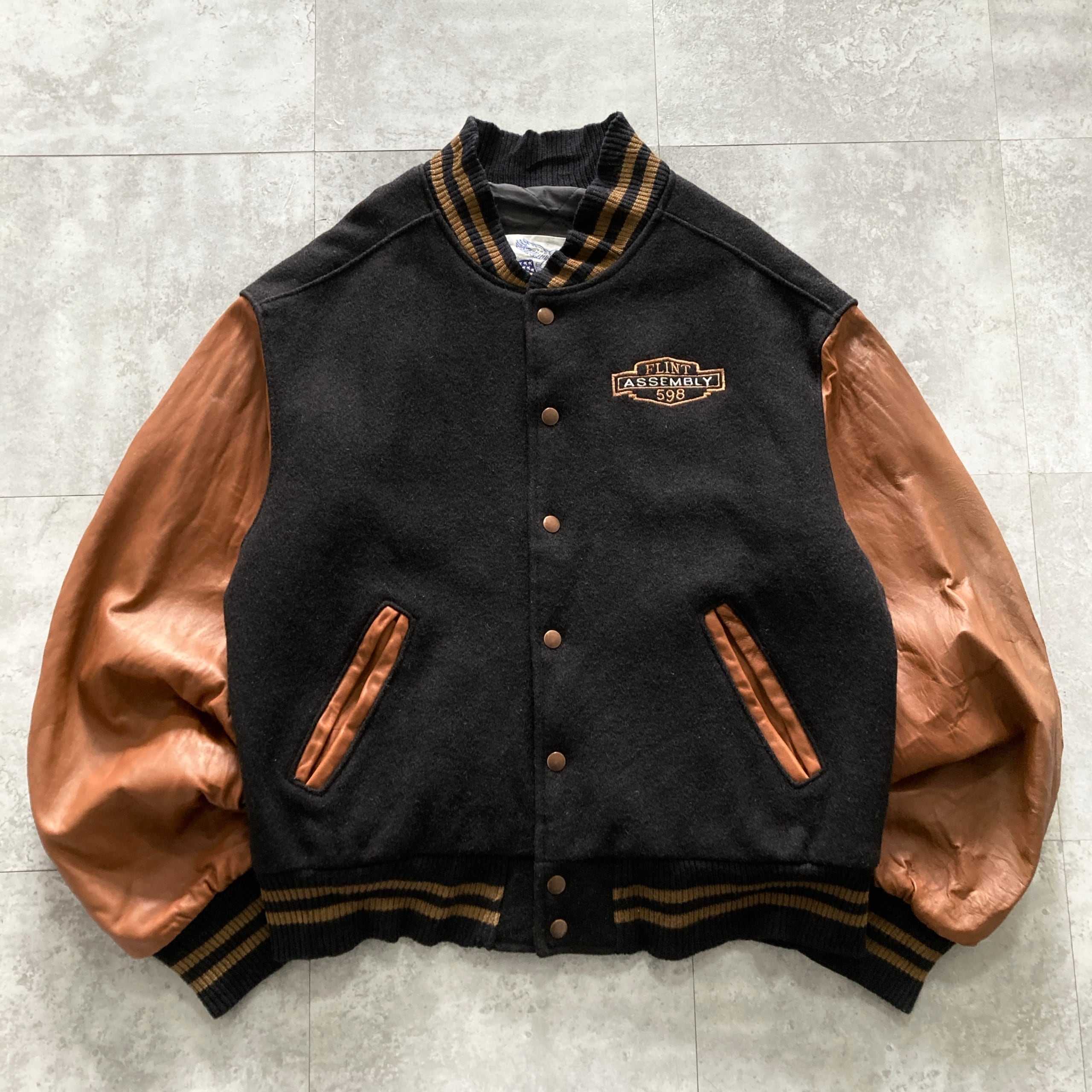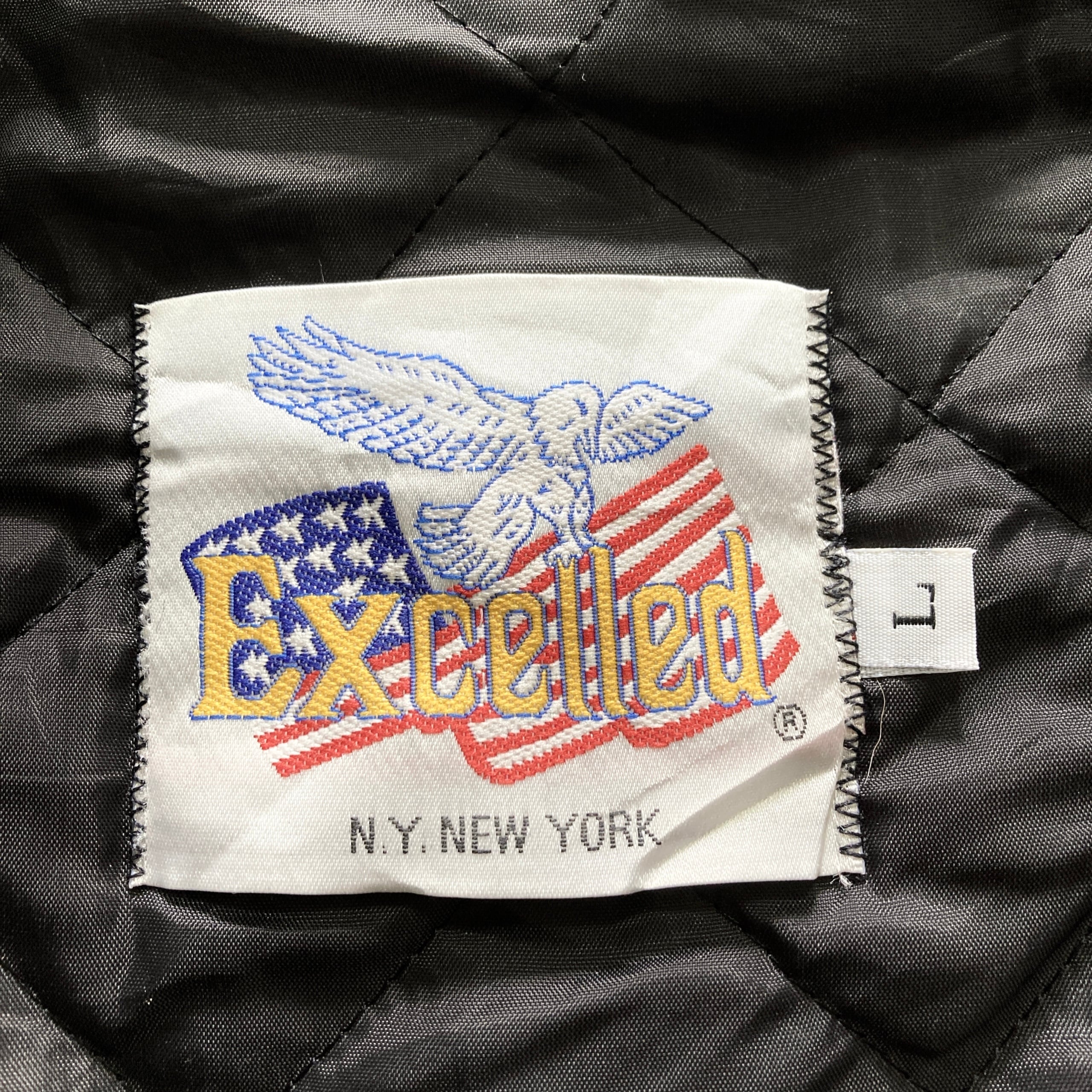 【USA製】90s Excelled エクセルド 表記L アメリカ製 ワンポイント ロゴ刺繍 FLINT ASSEMBLY 598 スナップボタン ウールスタジャン