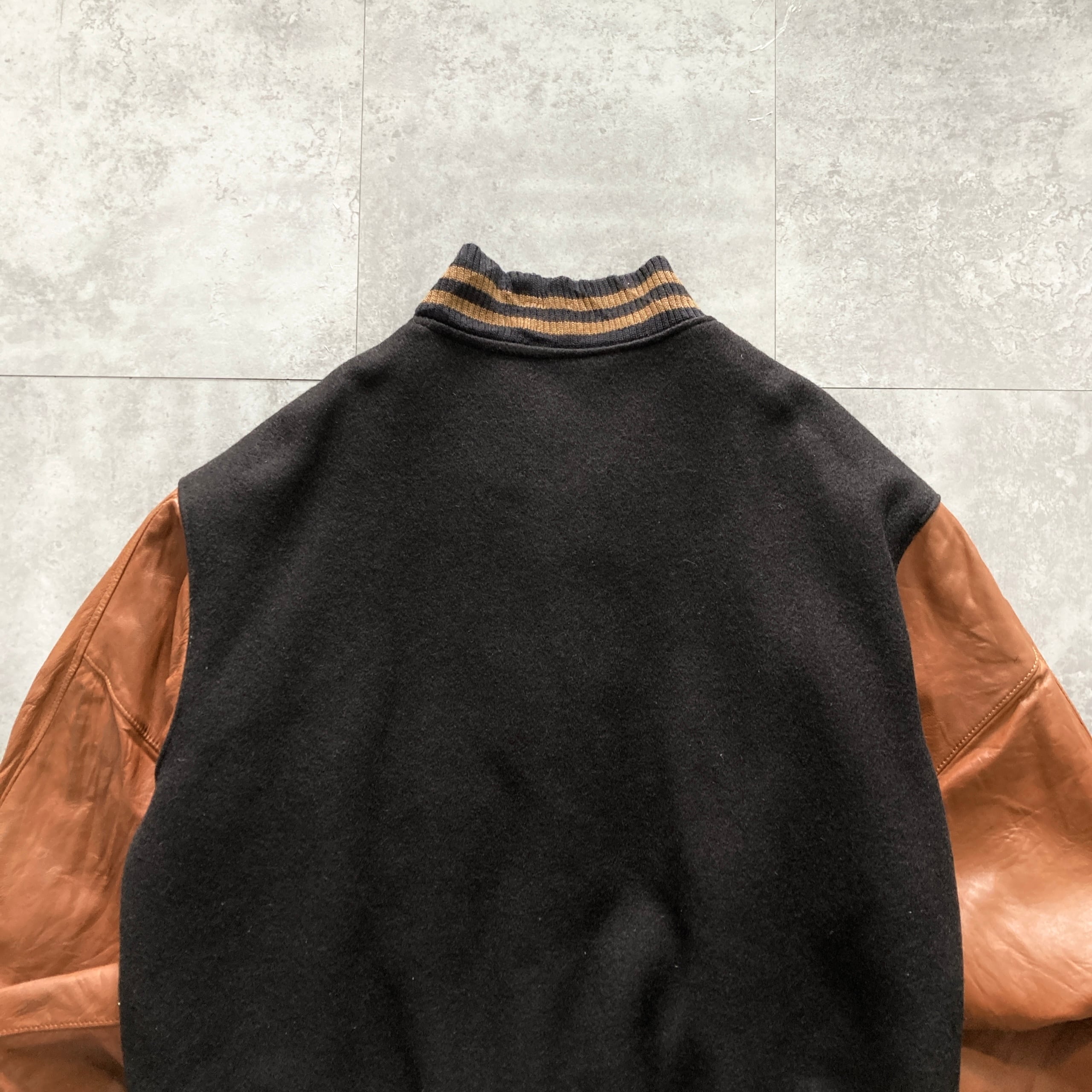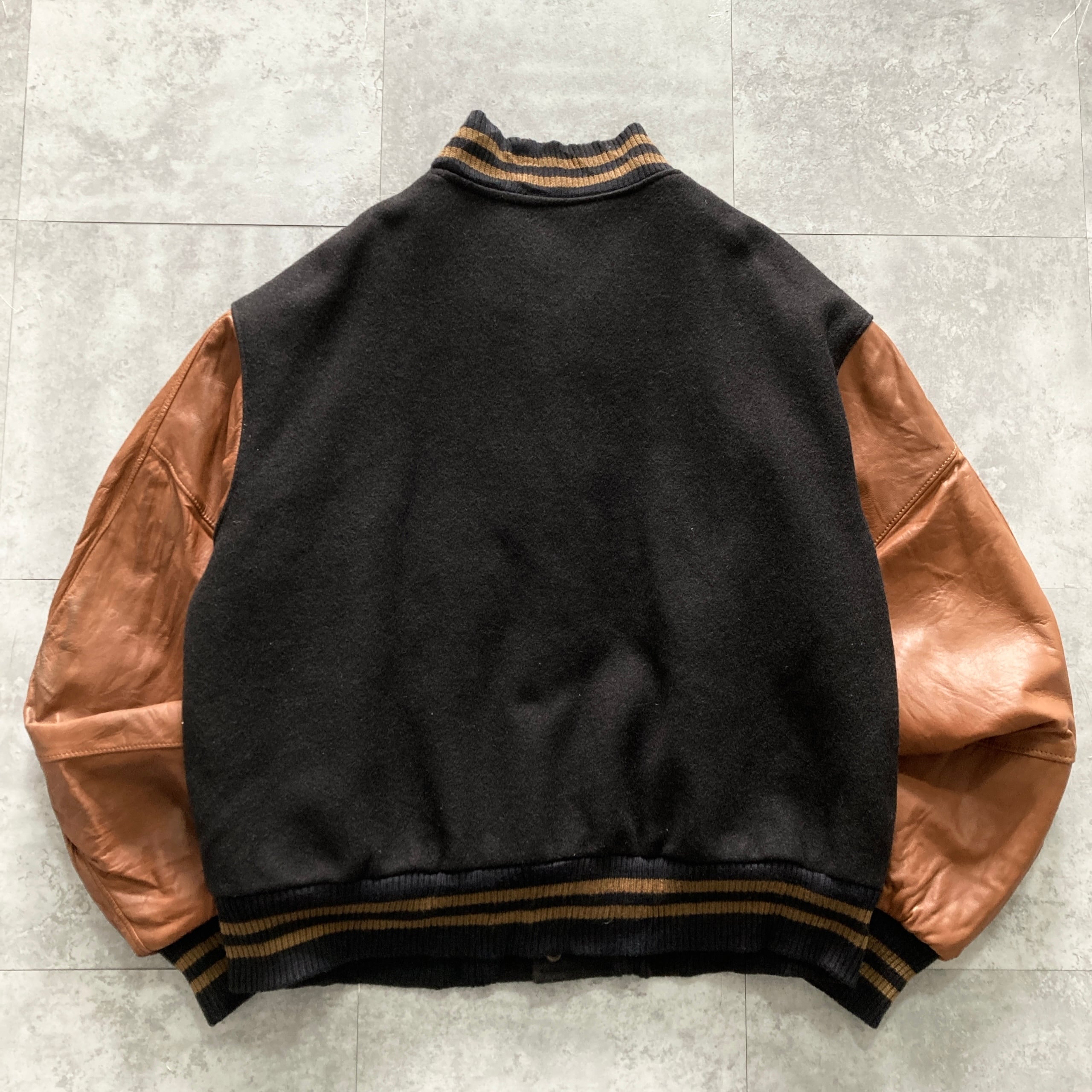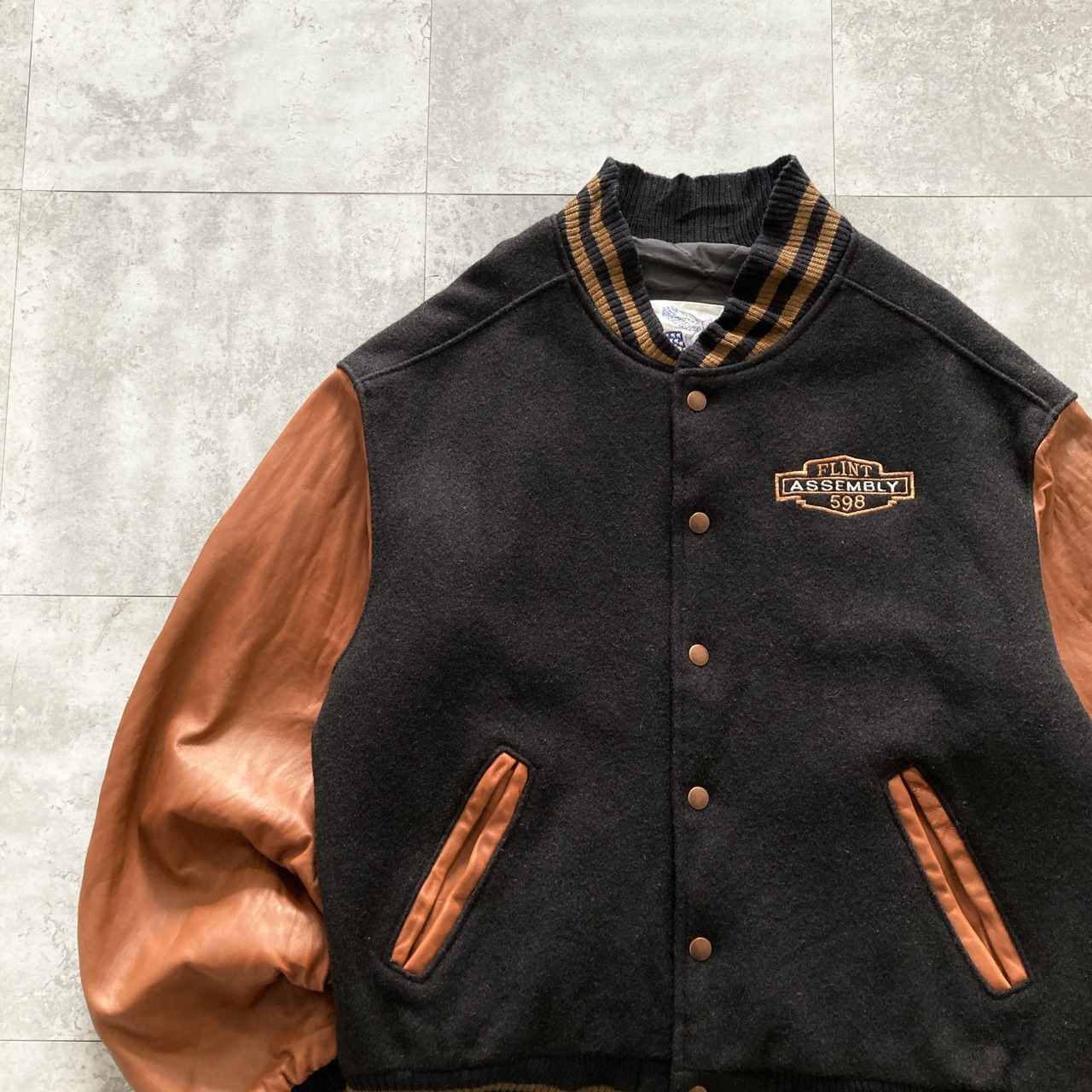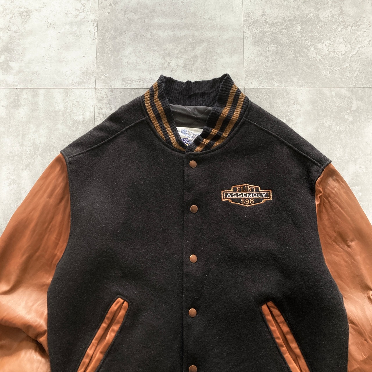 【USA製】90s Excelled エクセルド 表記L アメリカ製 ワンポイント ロゴ刺繍 FLINT ASSEMBLY 598 スナップボタン ウールスタジャン
