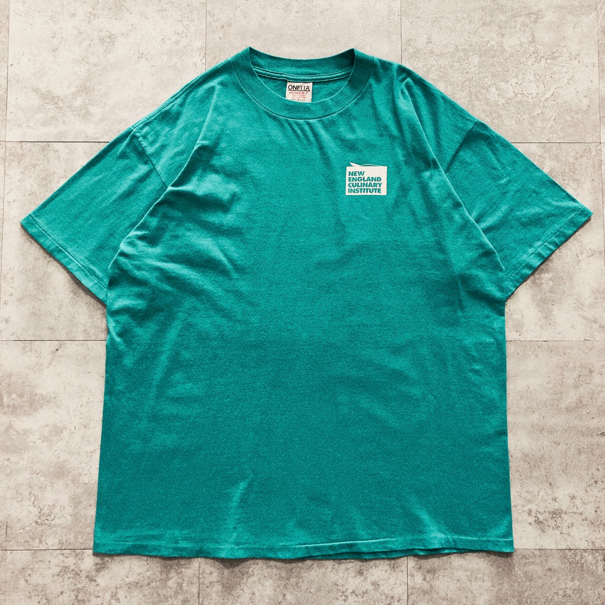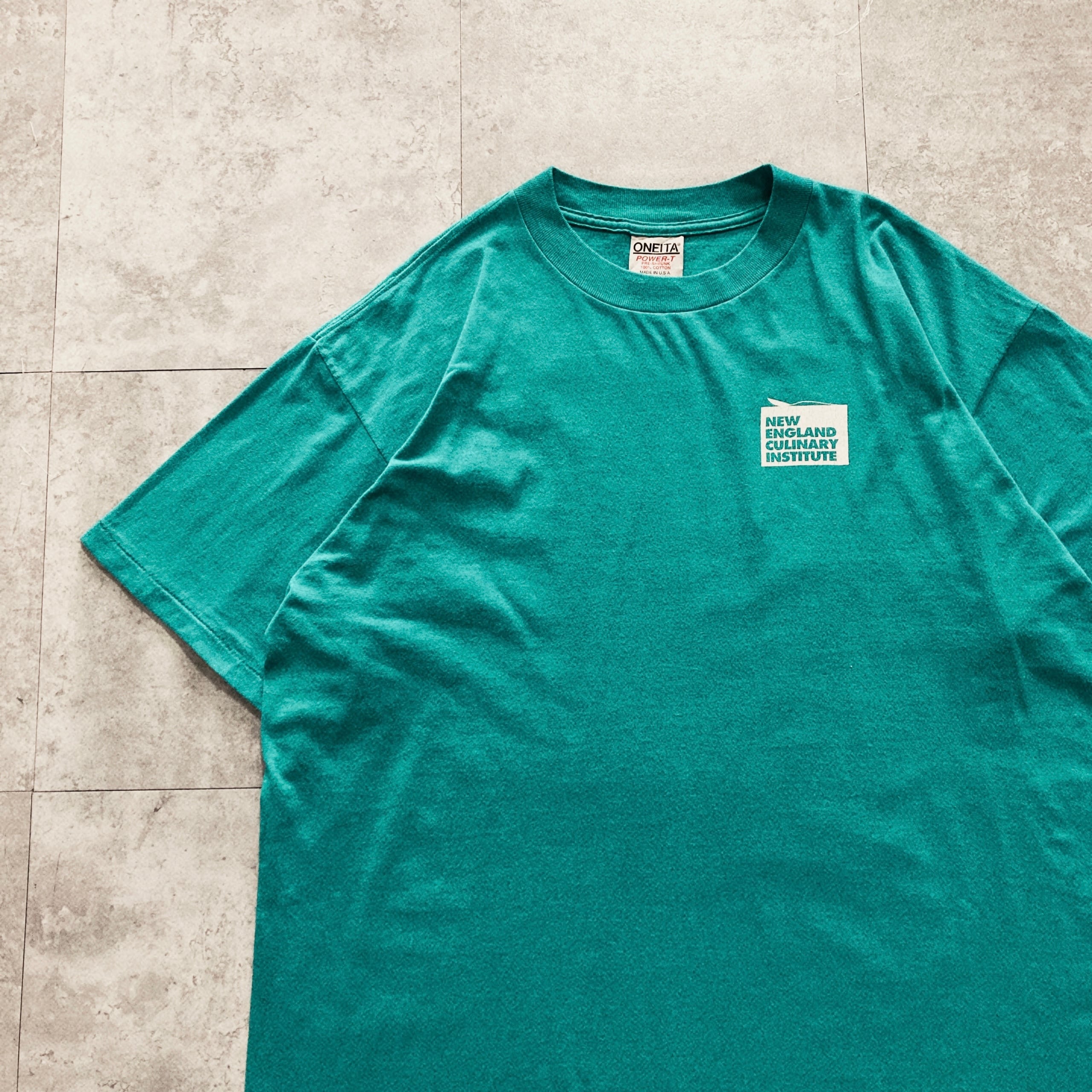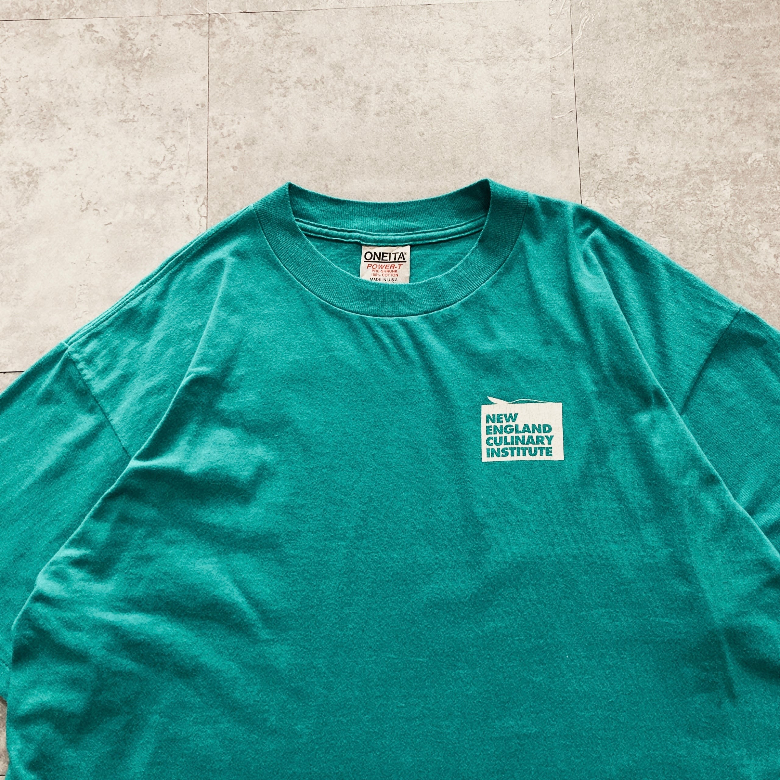 【USA製】90s ONEITA オニータ 表記XL シングルステッチ NEW ENGLAND CULINARY INSTITUTE エメラルドグリーン Tシャツ