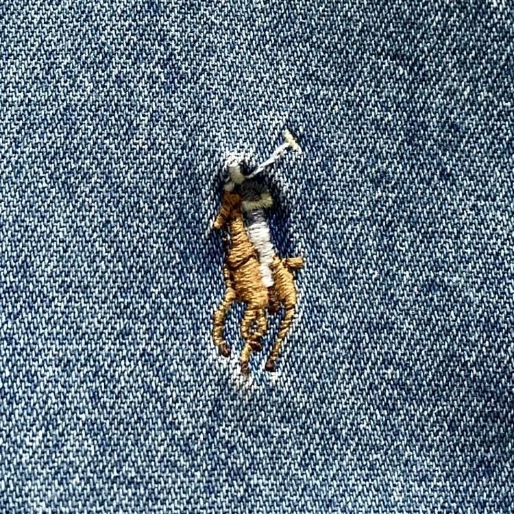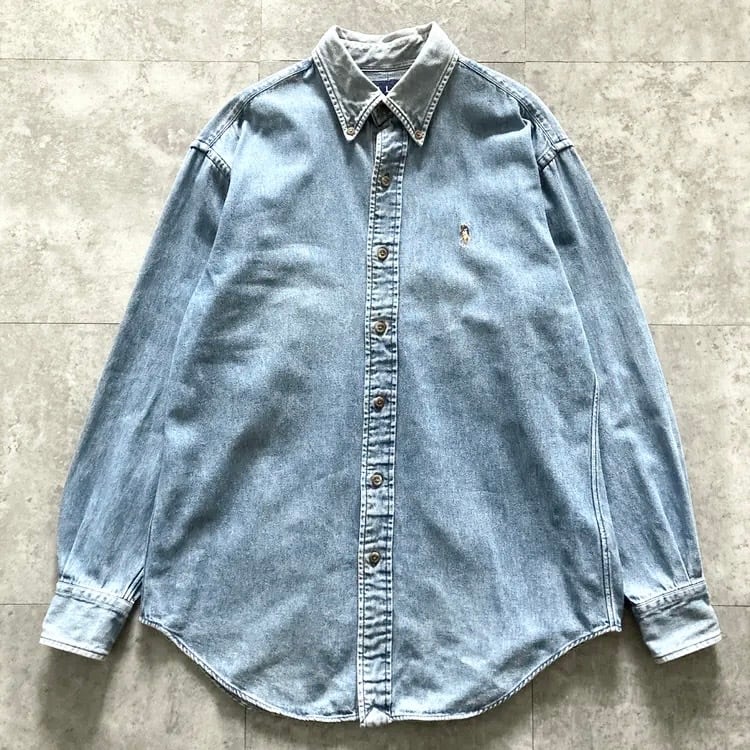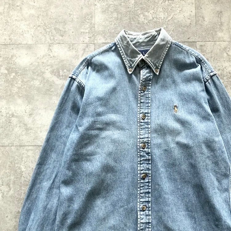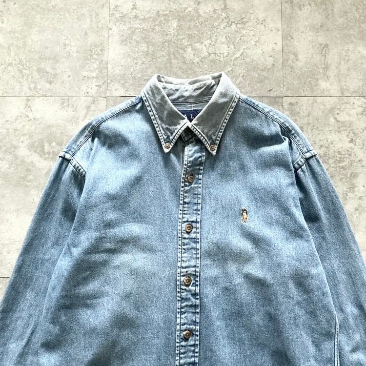 【size 7】RALPH LAUREN ラルフローレン ワンポイント ロゴ刺繍 カラーポニー デニムシャツ