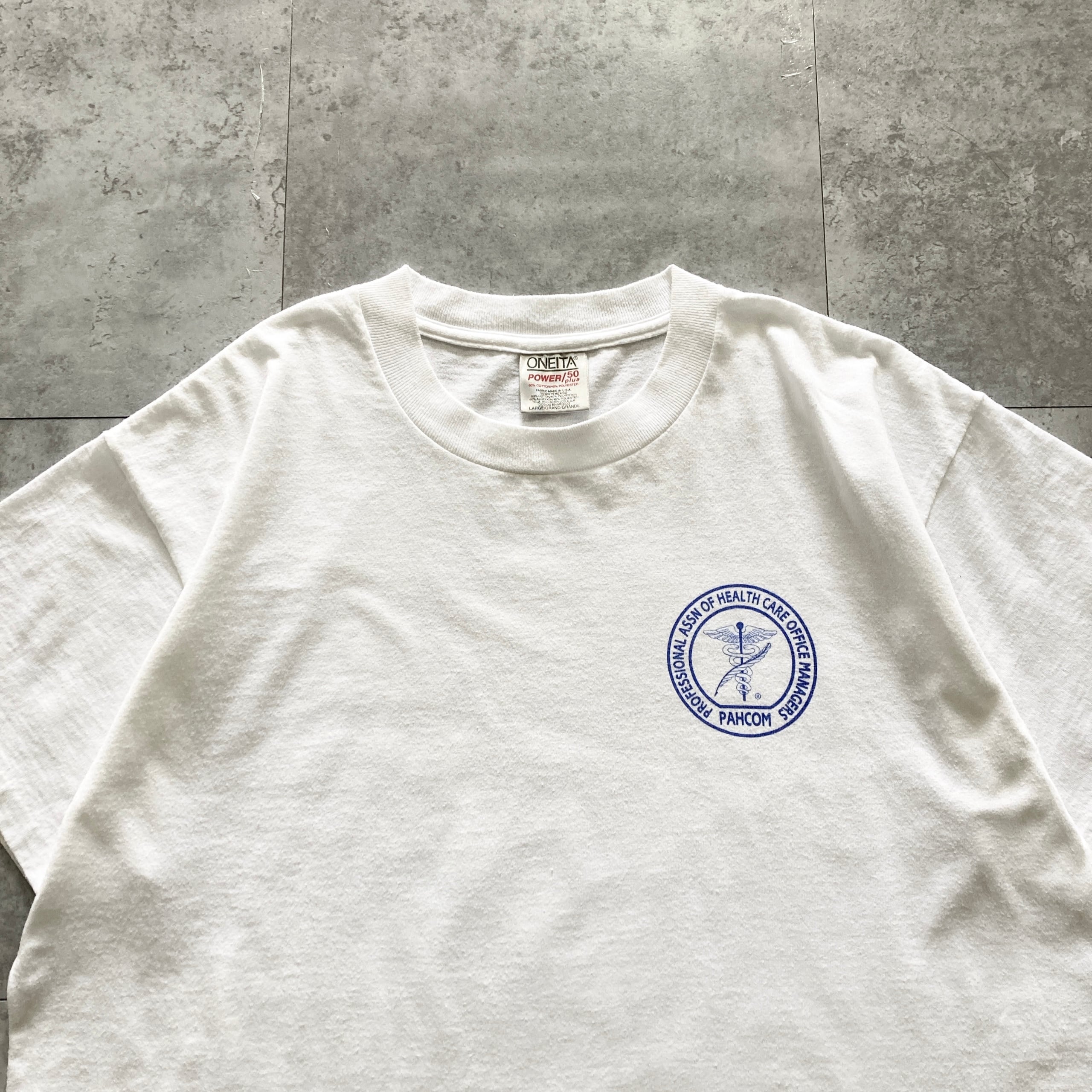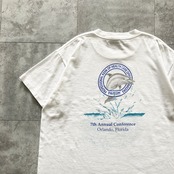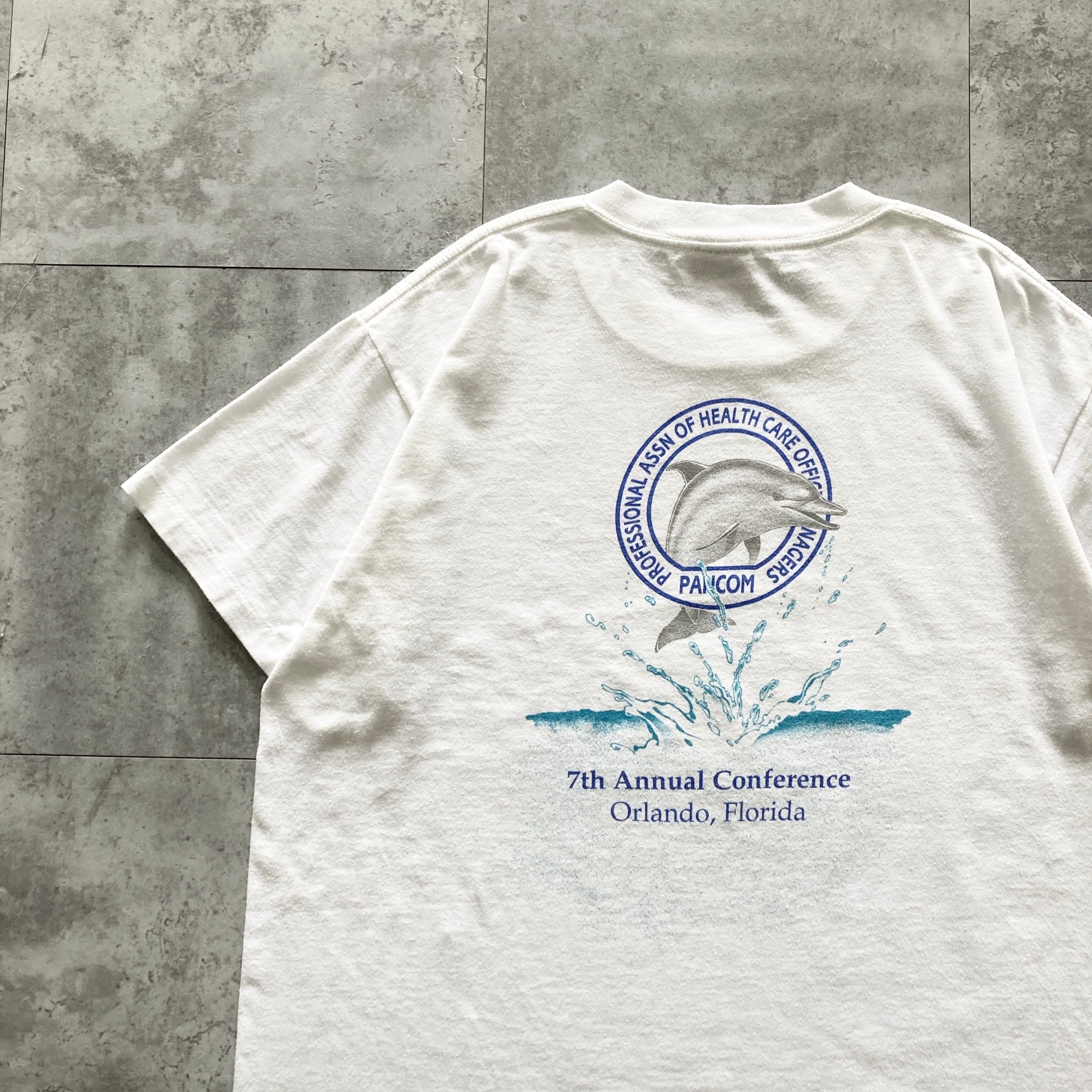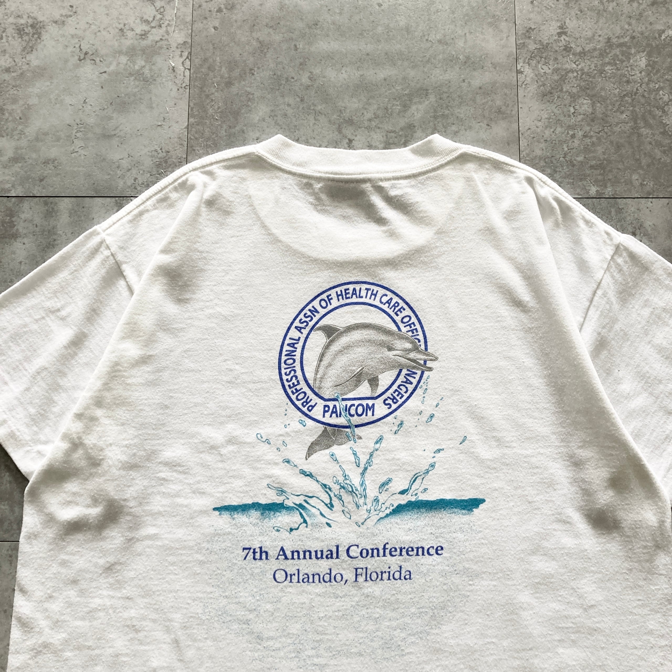 【USA製】90s ONEITA オニータ 表記L アメリカ製 シングルステッチ 両面プリント イルカ 7th ホワイト Tシャツ