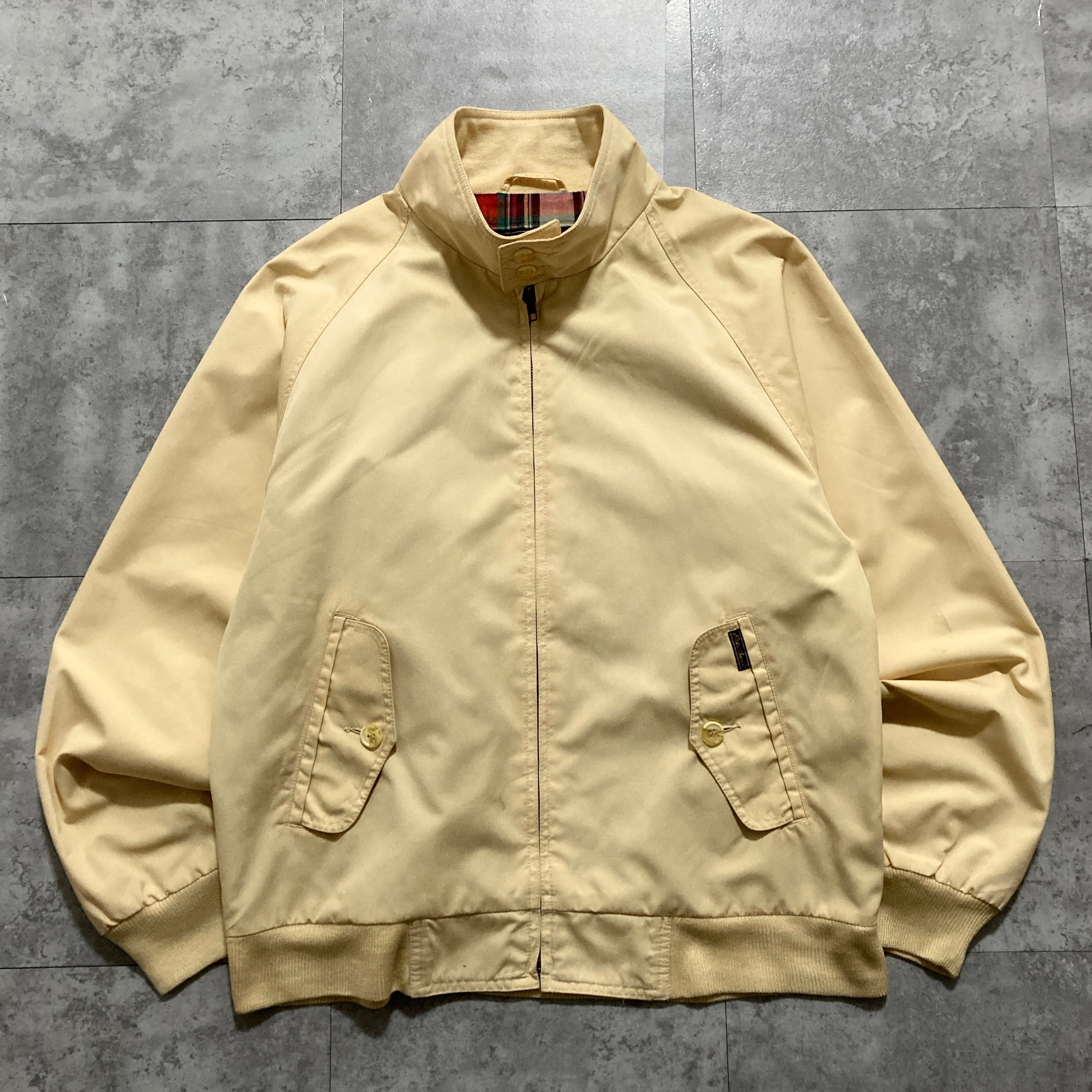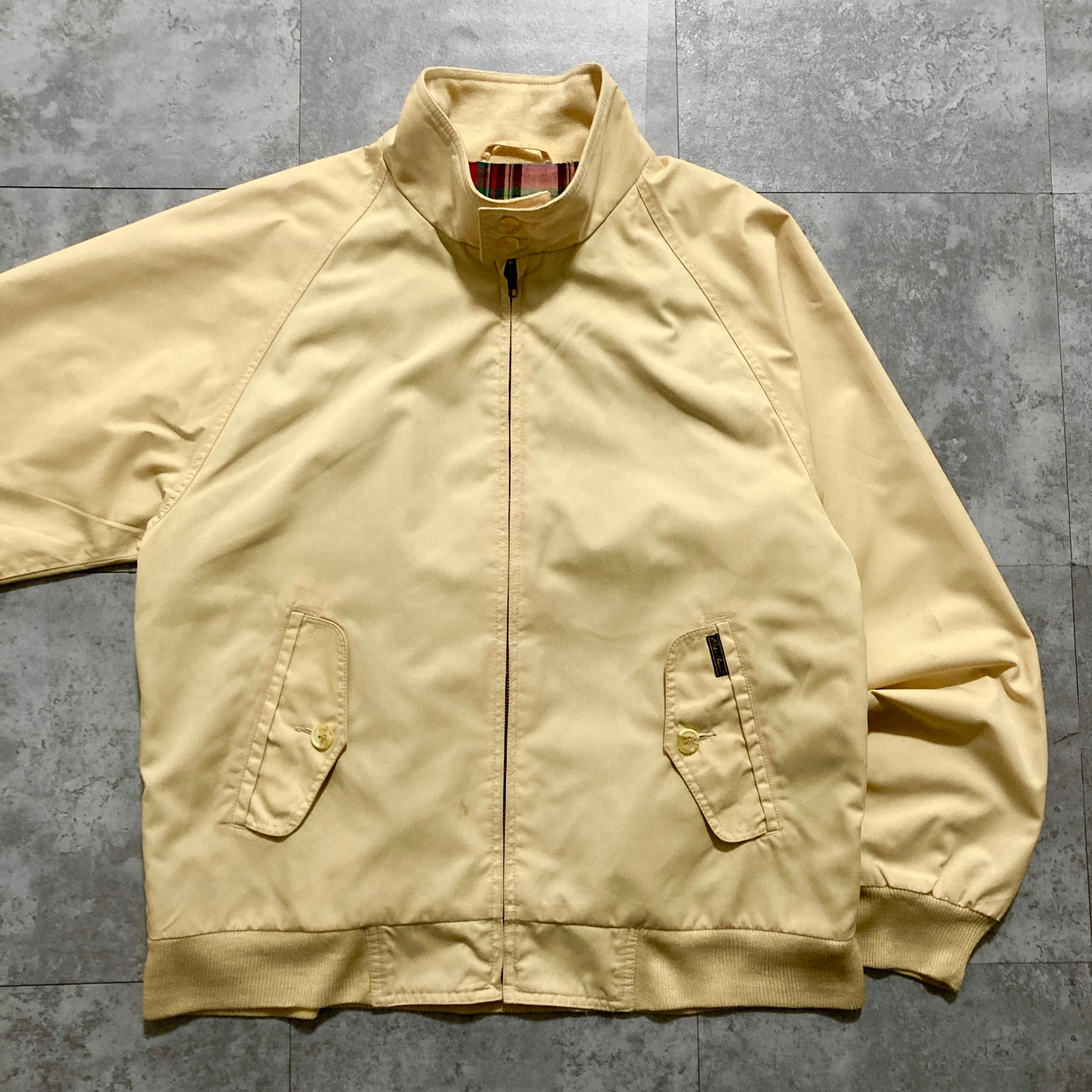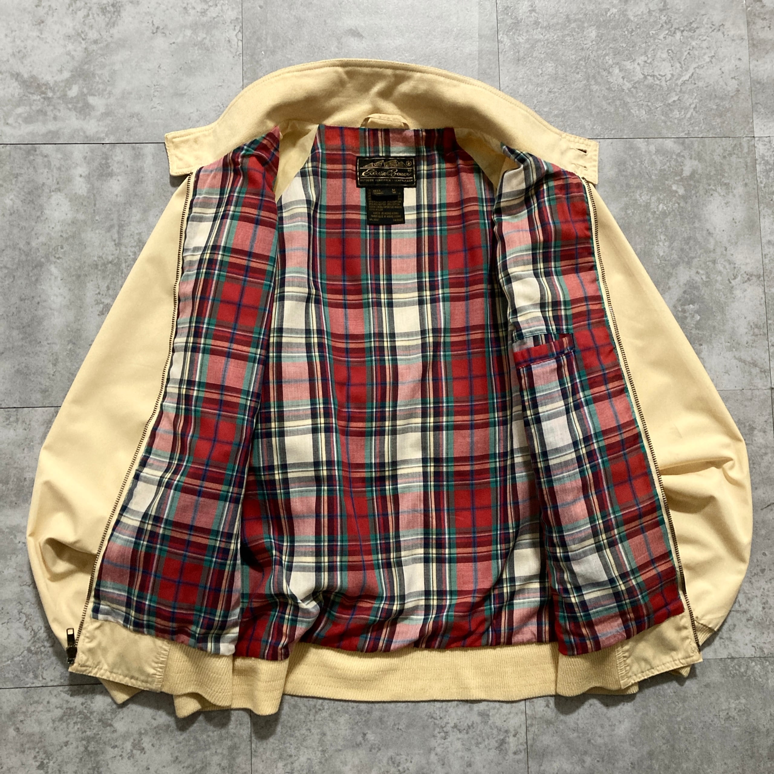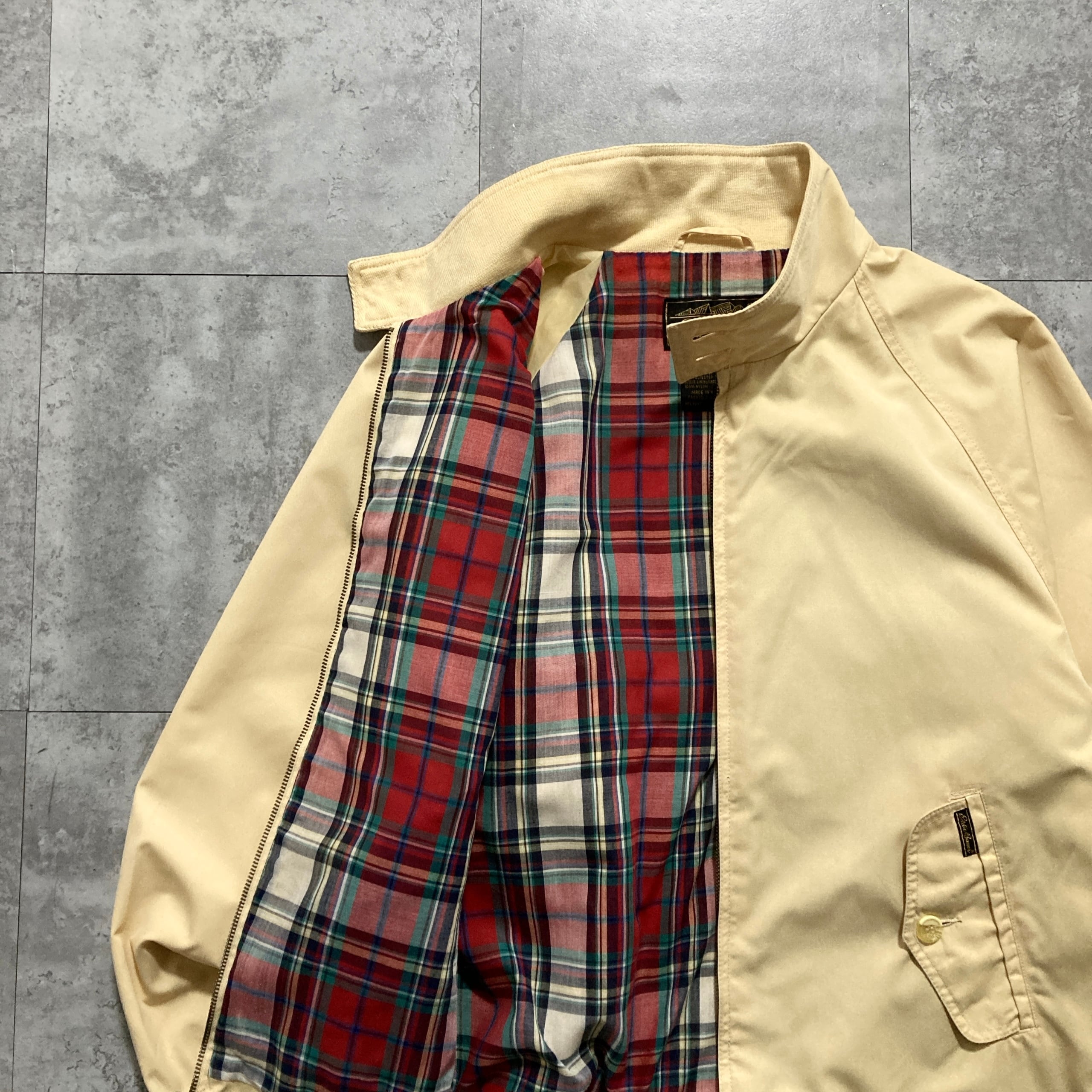 【80s-90s】Eddie Bauer エディーバウアー 表記M 黒タグ ワンポイント ロゴ刺繍 裏地チェック柄 イエロー スイングトップ