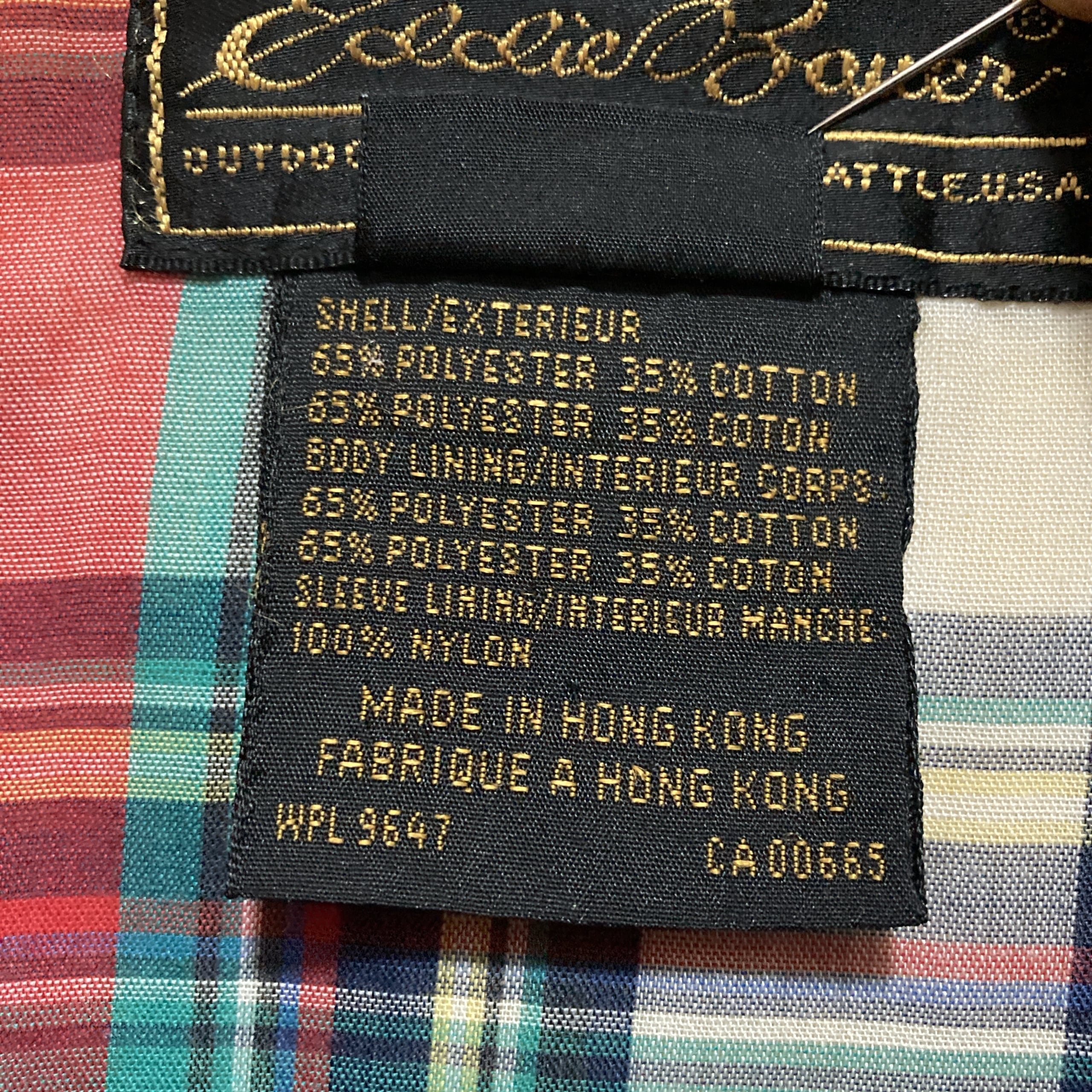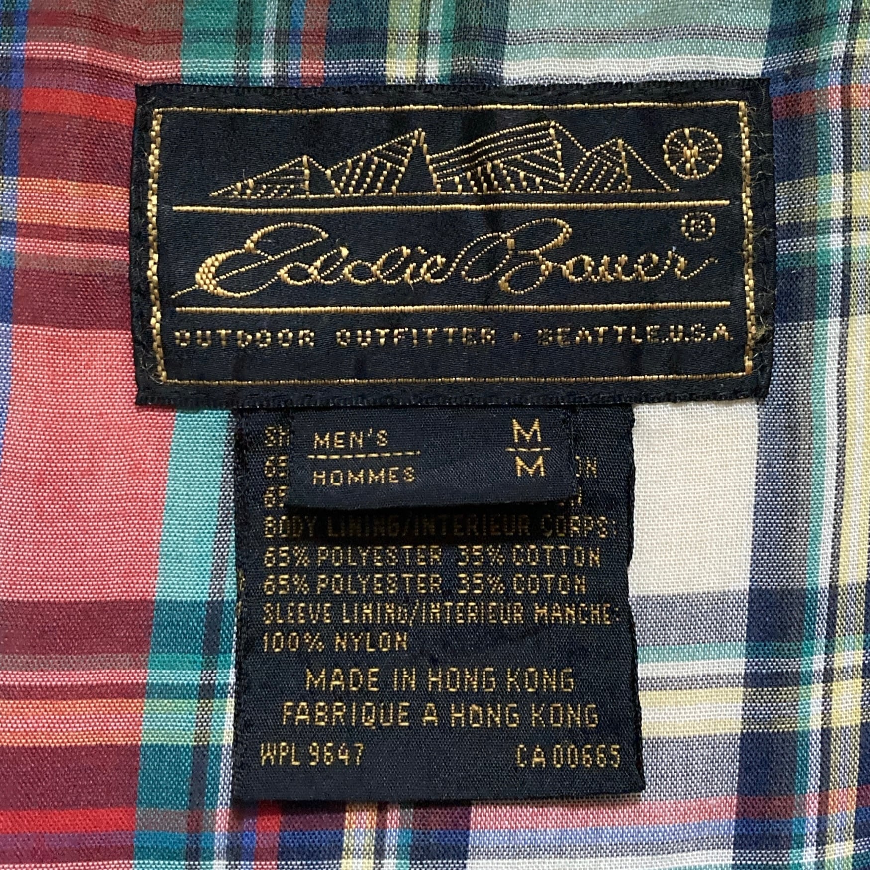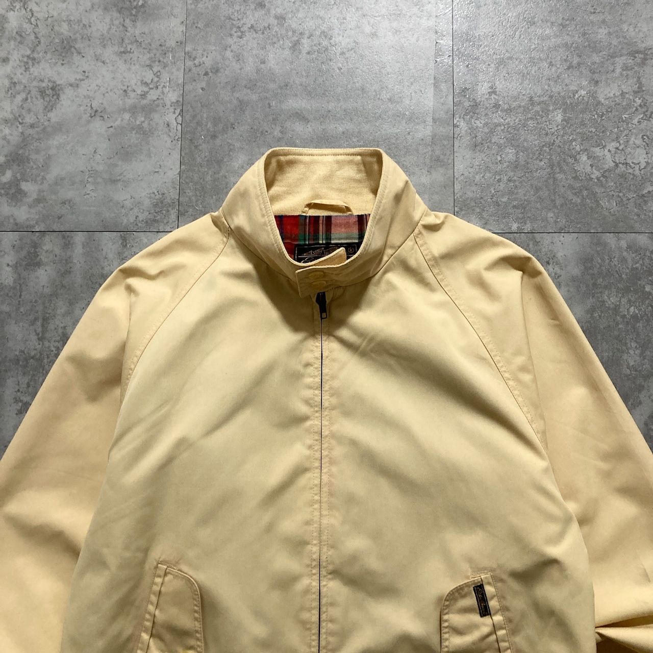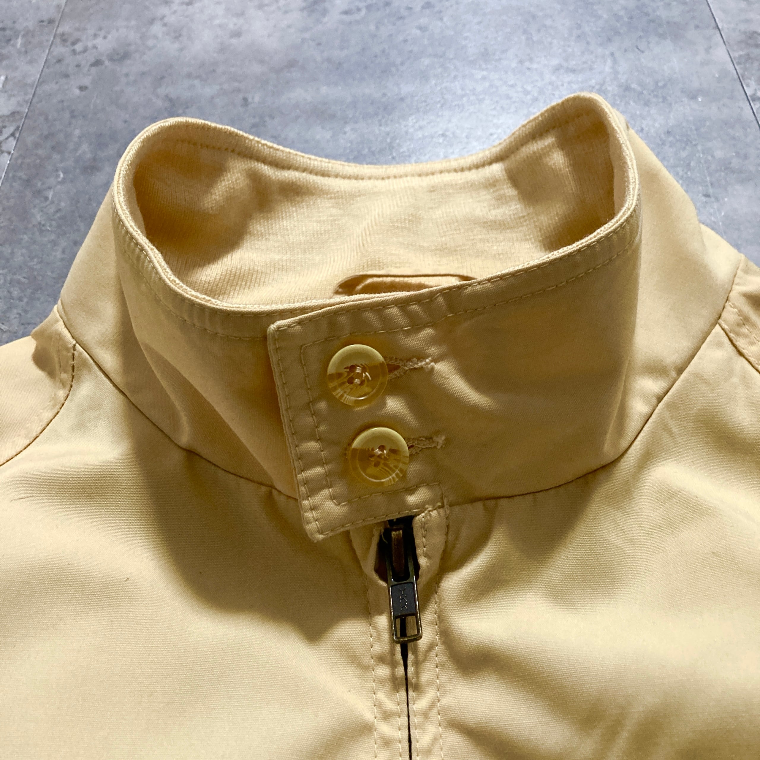 【80s-90s】Eddie Bauer エディーバウアー 表記M 黒タグ ワンポイント ロゴ刺繍 裏地チェック柄 イエロー スイングトップ