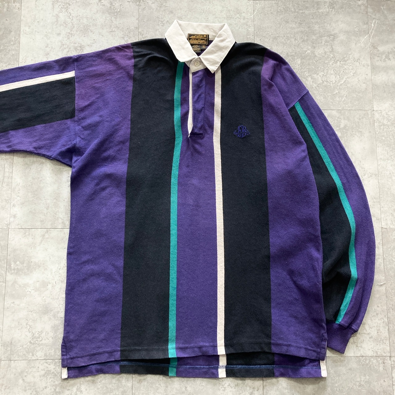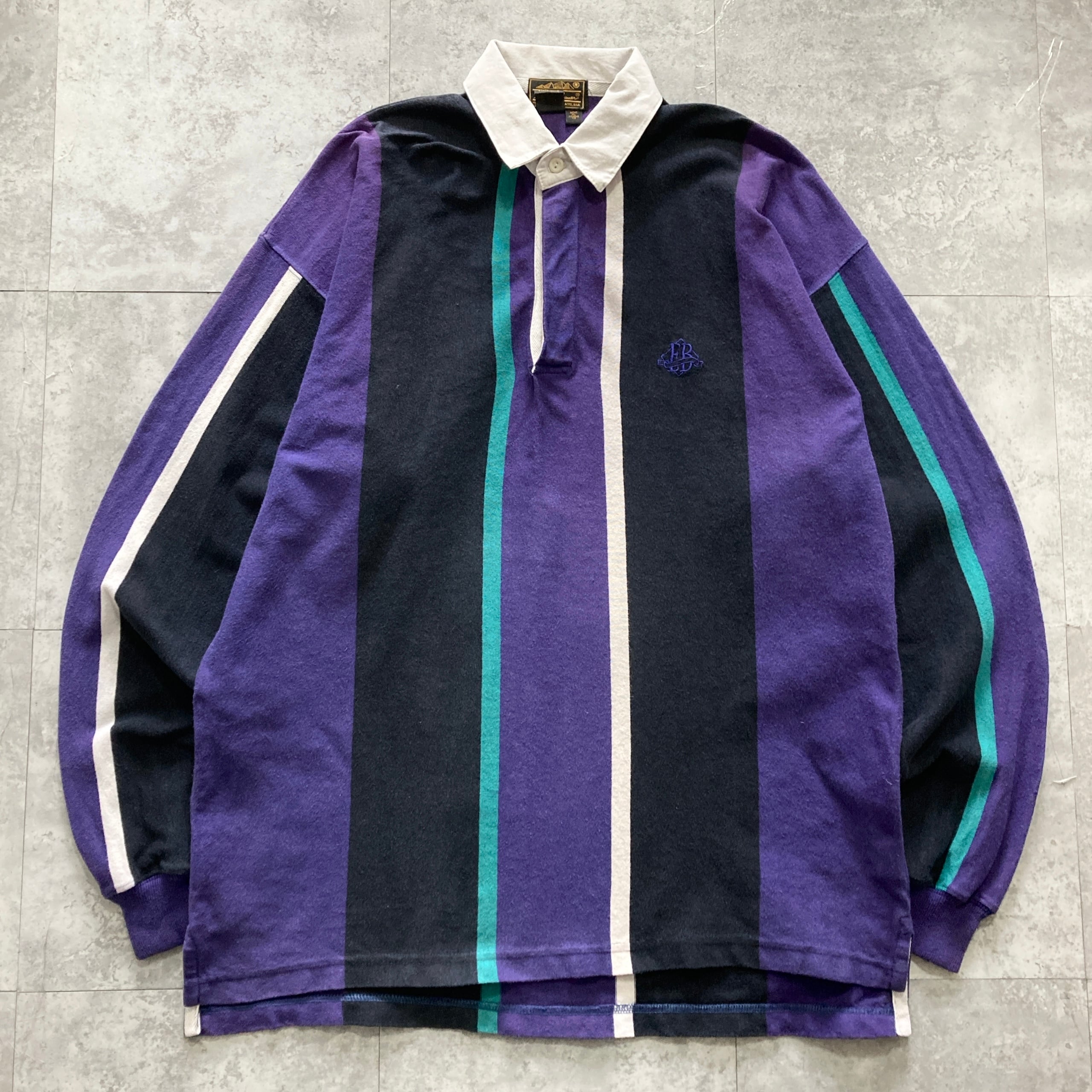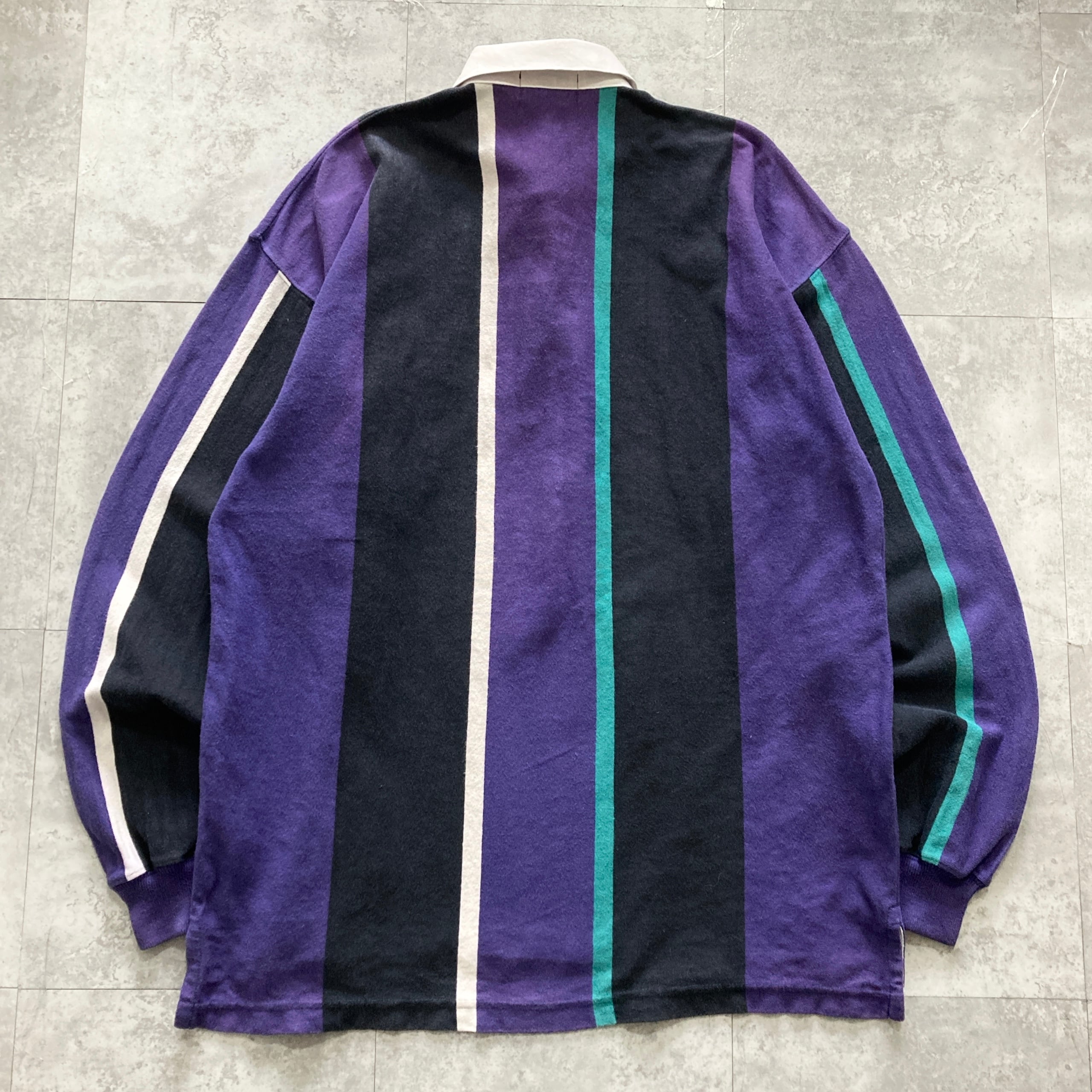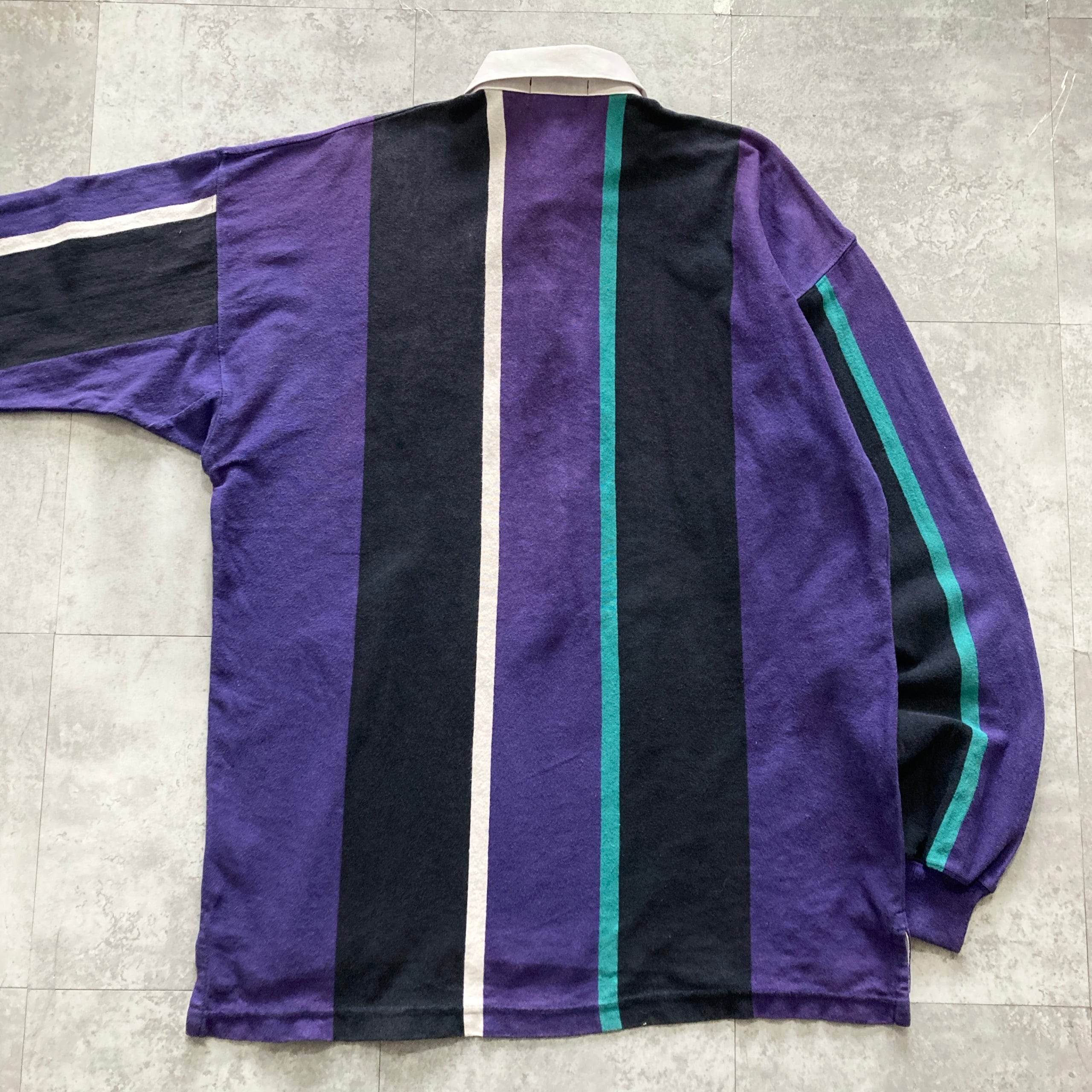 【USA製】80s Eddie Bauer エディーバウアー 表記XL アメリカ製 ワンポイント ロゴ刺繍 マルチカラー ラガーシャツ