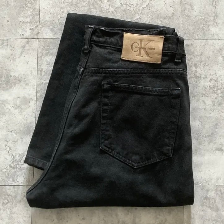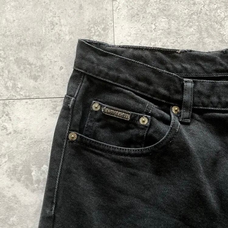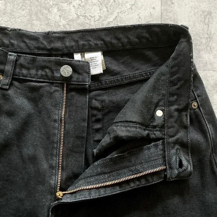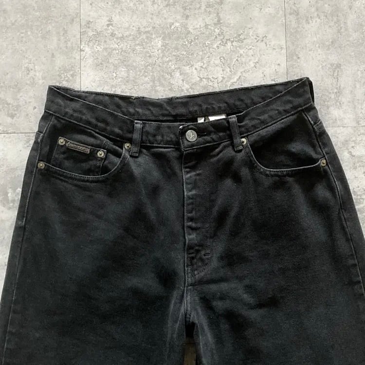 【Size.12】Calvin Klein カルバンクライン ジッパーフライ レザーパッチ ビッグサイズ ブラック デニムパンツ ジーンズ