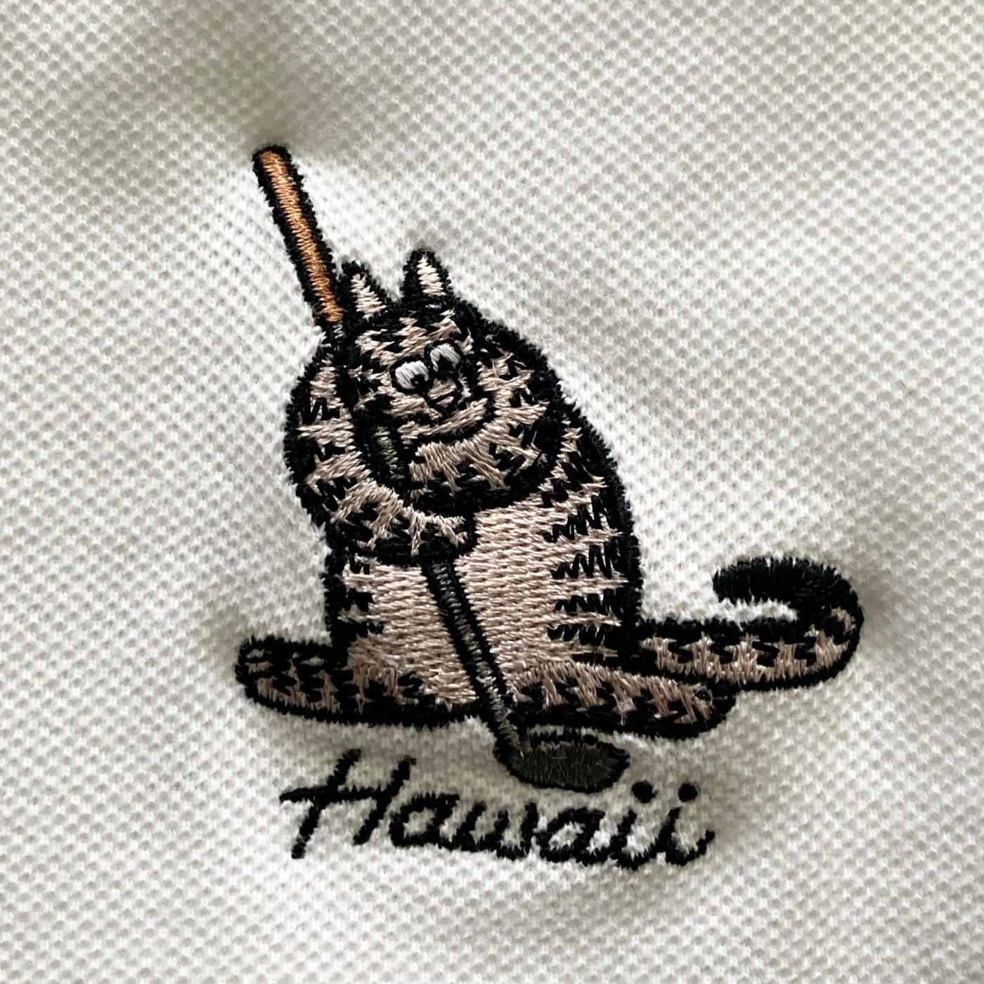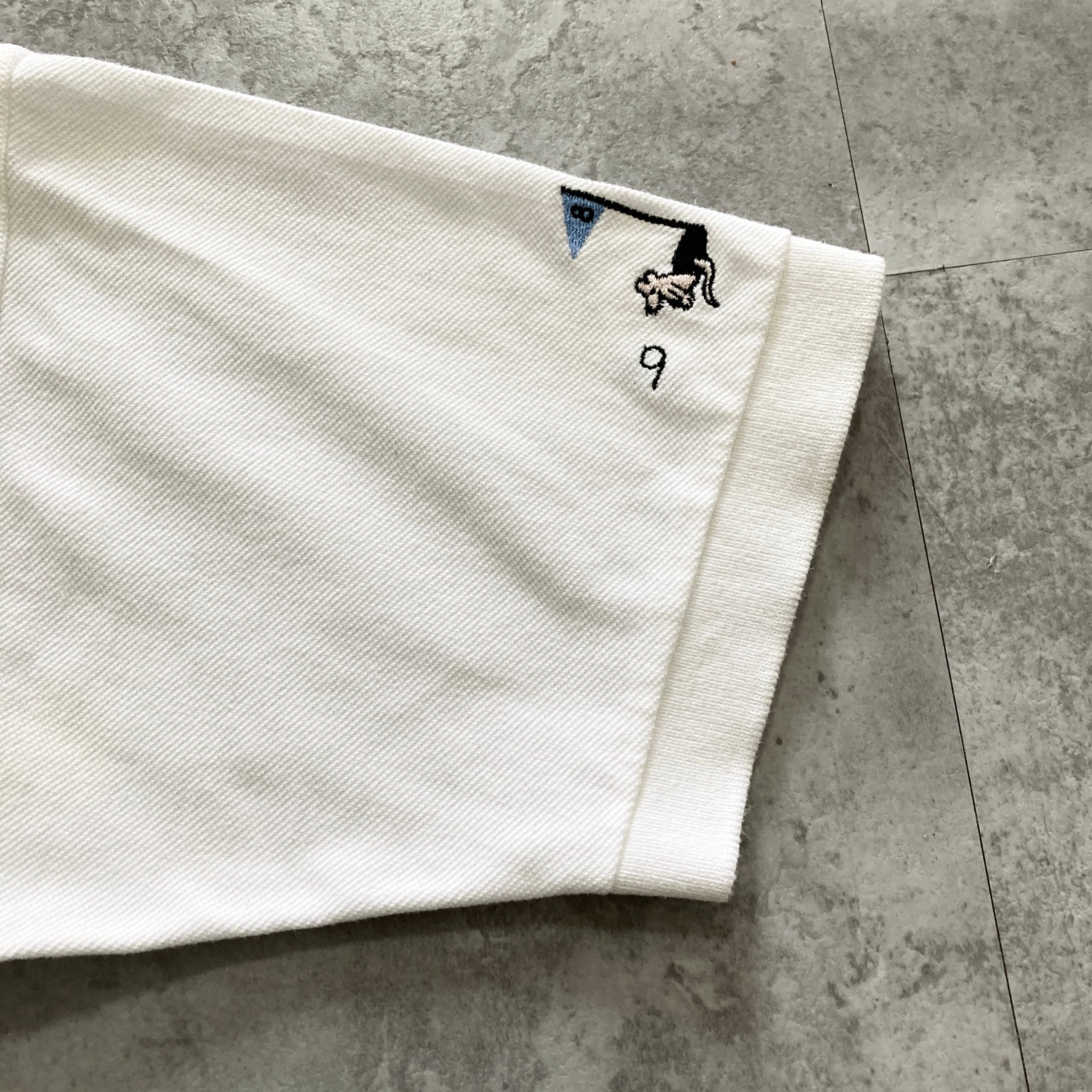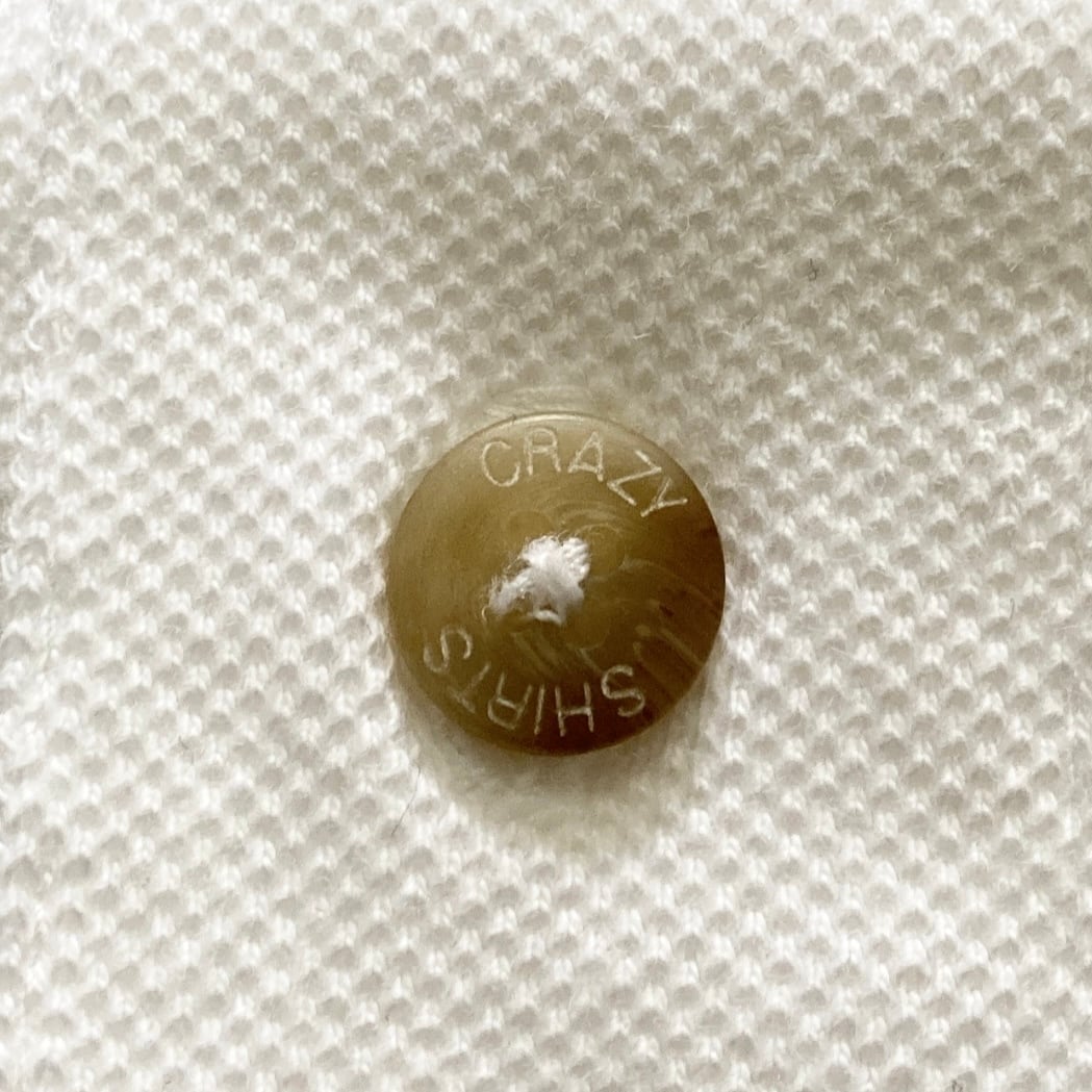【USA製】90s Crazy Shirts クレイジーシャツ クリバンキャット 表記S 着用感M キャラクター刺繍 ブランドロゴボタン ホワイト ポロシャツ