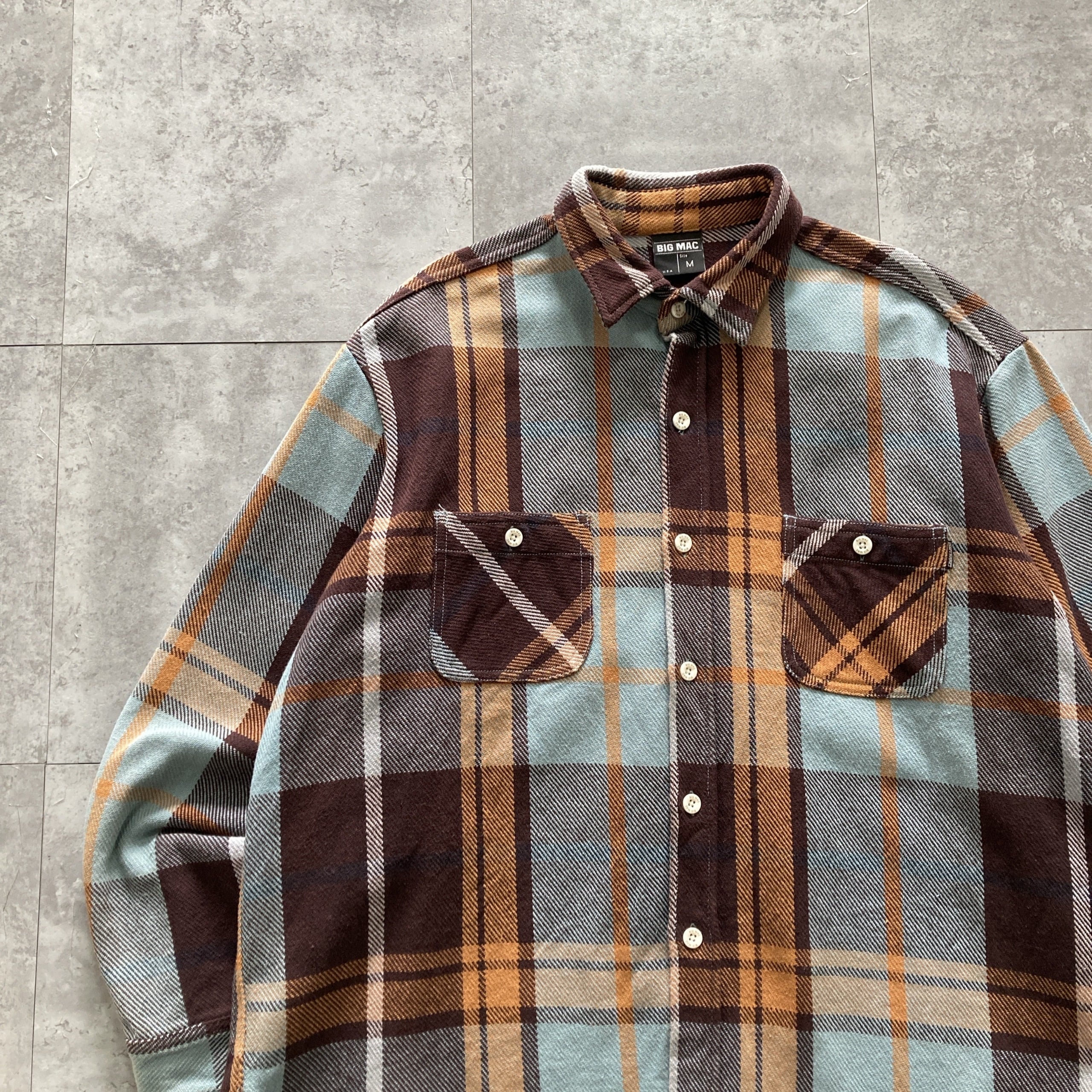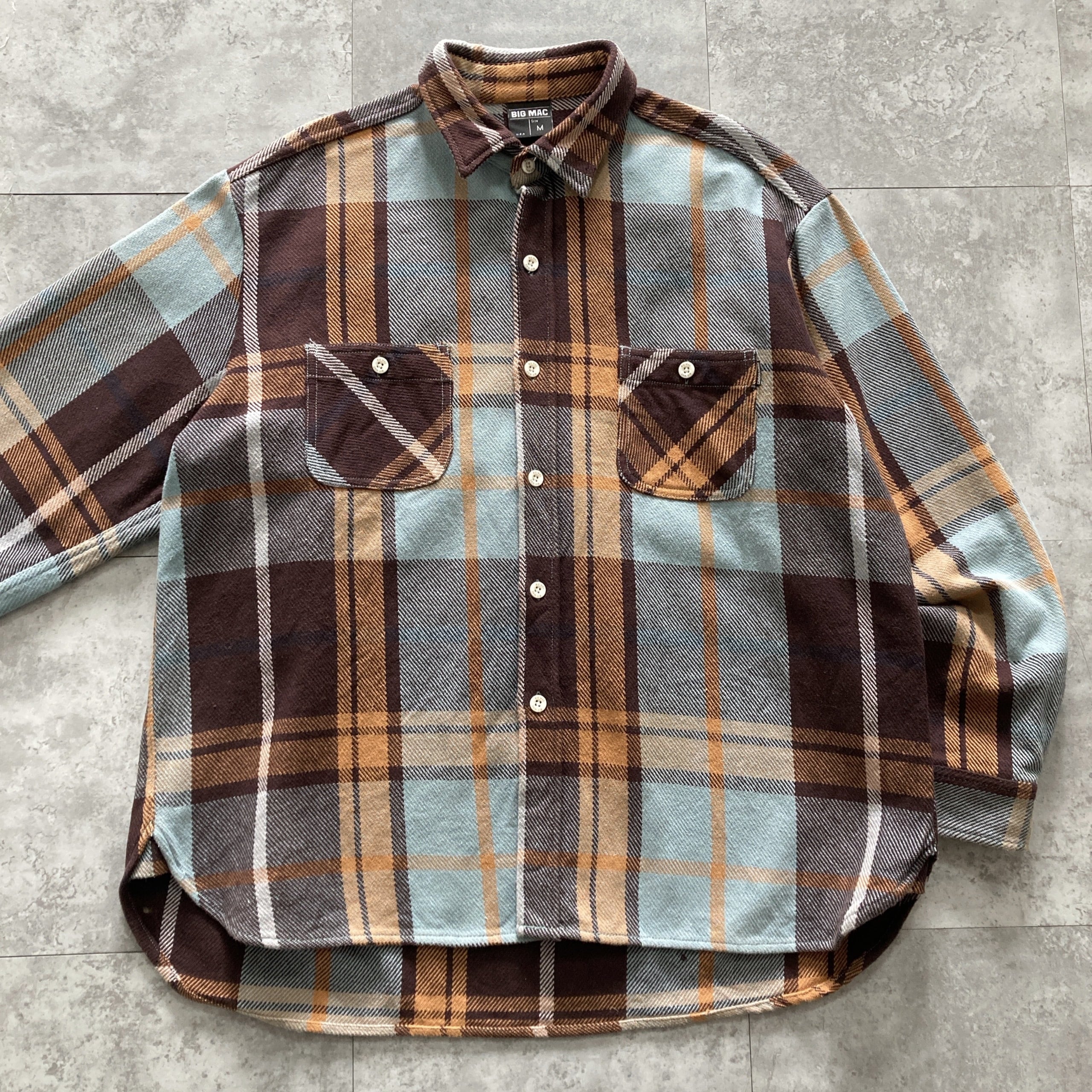 【Size.M】BIG MAC ビッグマック ブランドロゴボタン ダブルポケット チェック柄 ヘビネル ネルシャツ
