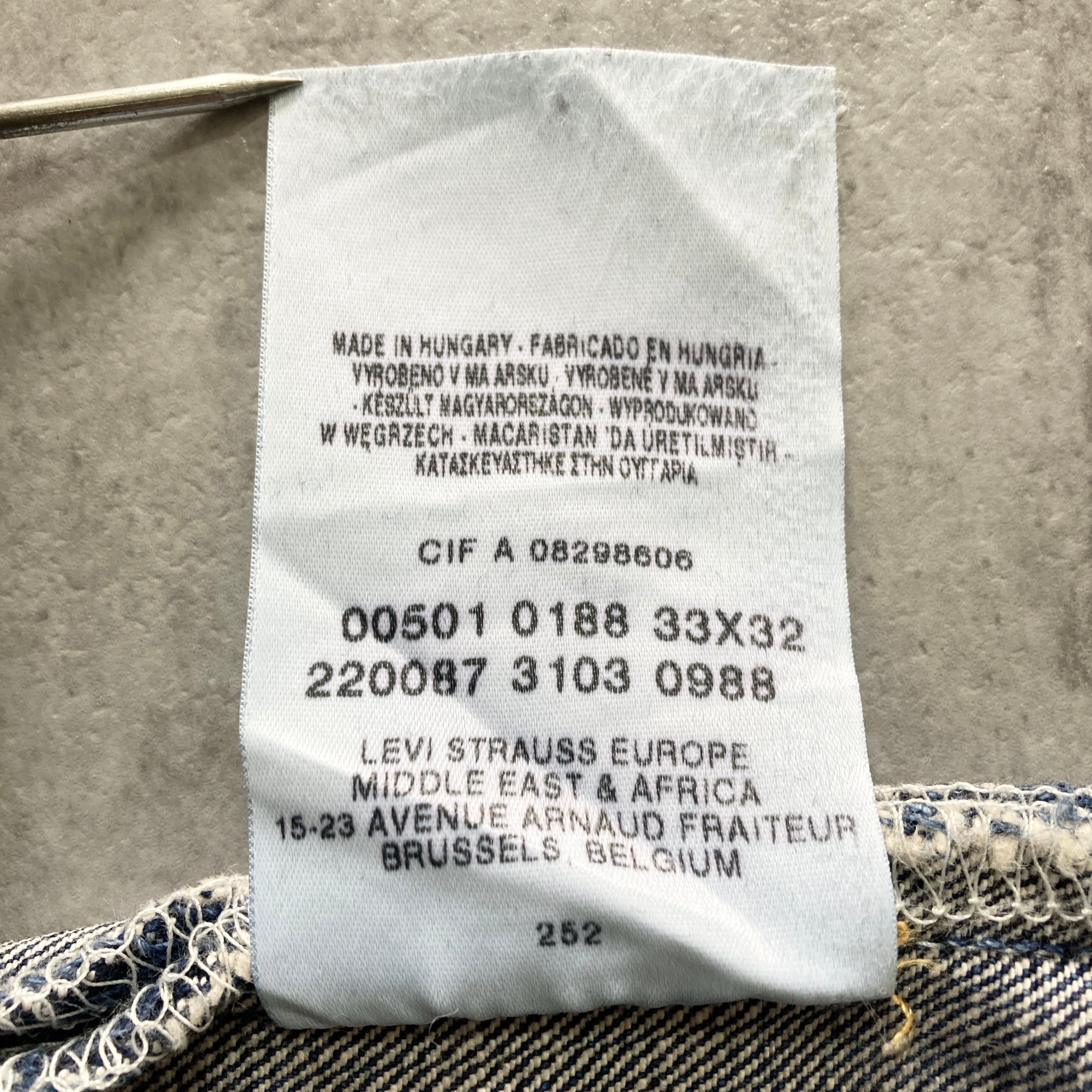 【W33 L32】00s Euro Levis 501 ユーロリーバイス 03年製 ハンガリー製 裏ボタン刻印252 ボタンフライ 縦落ち ヒゲ デニムパンツ ジーンズ