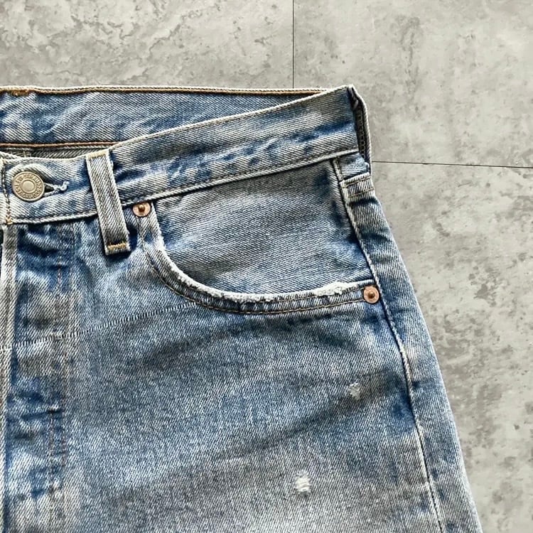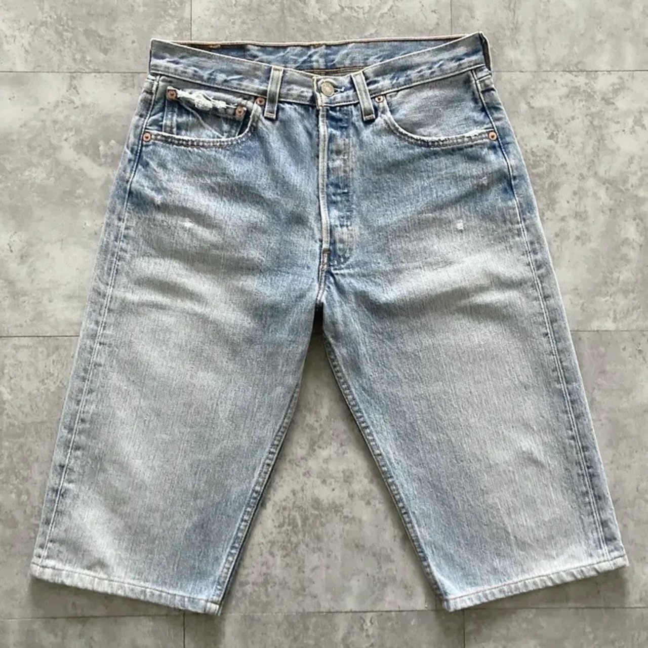 【W31 L32】00's US.Levis 501 リーバイス サンベニート工場(553) ボタン裏刻印553 USA製 アメリカ製 00年製 ボタンフライ 縦落ち ヒゲ デニム ショートパンツ ハーフパンツ ジーンズ