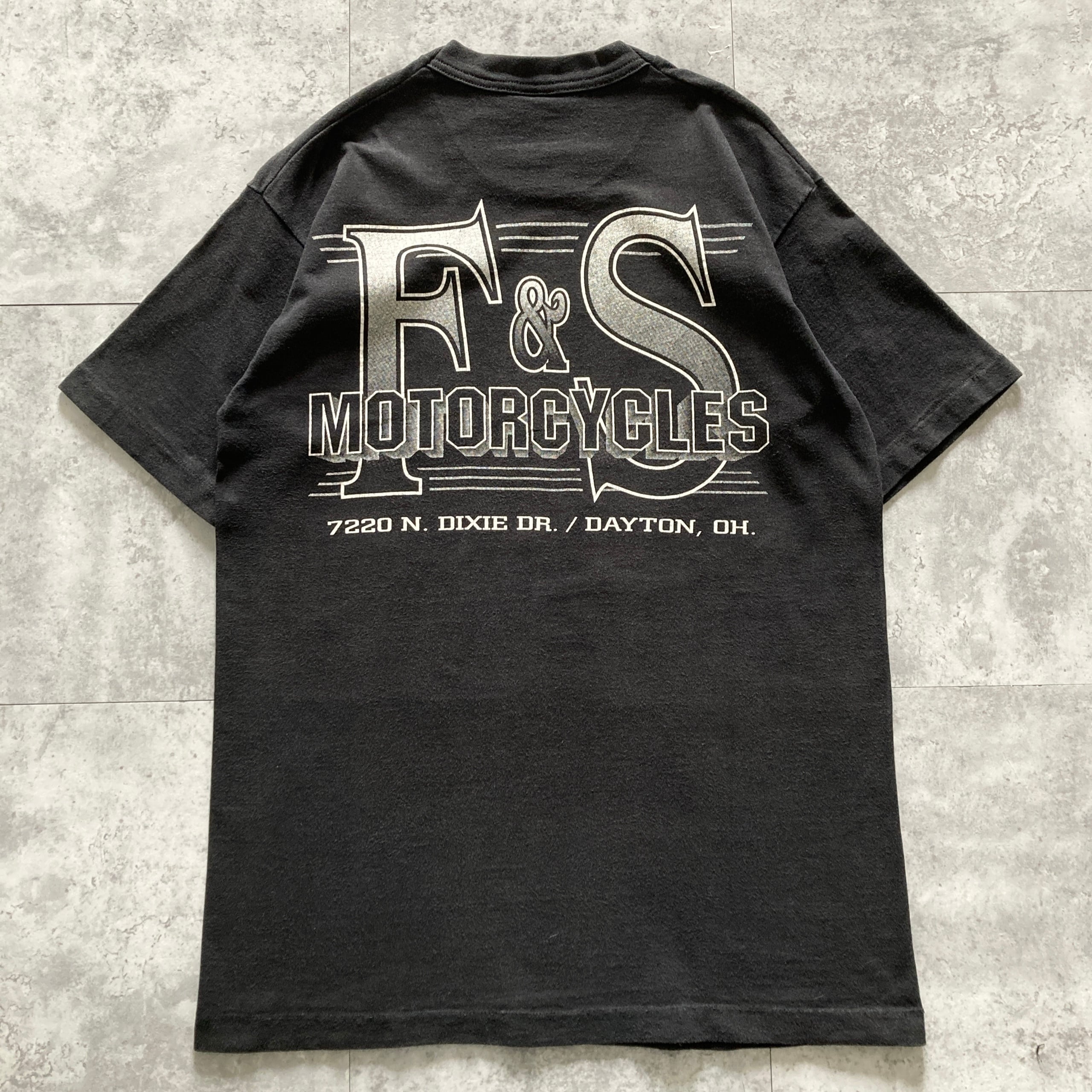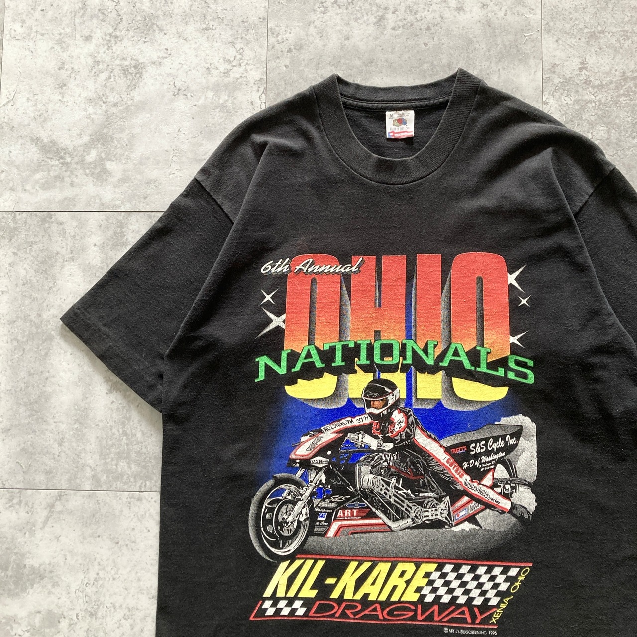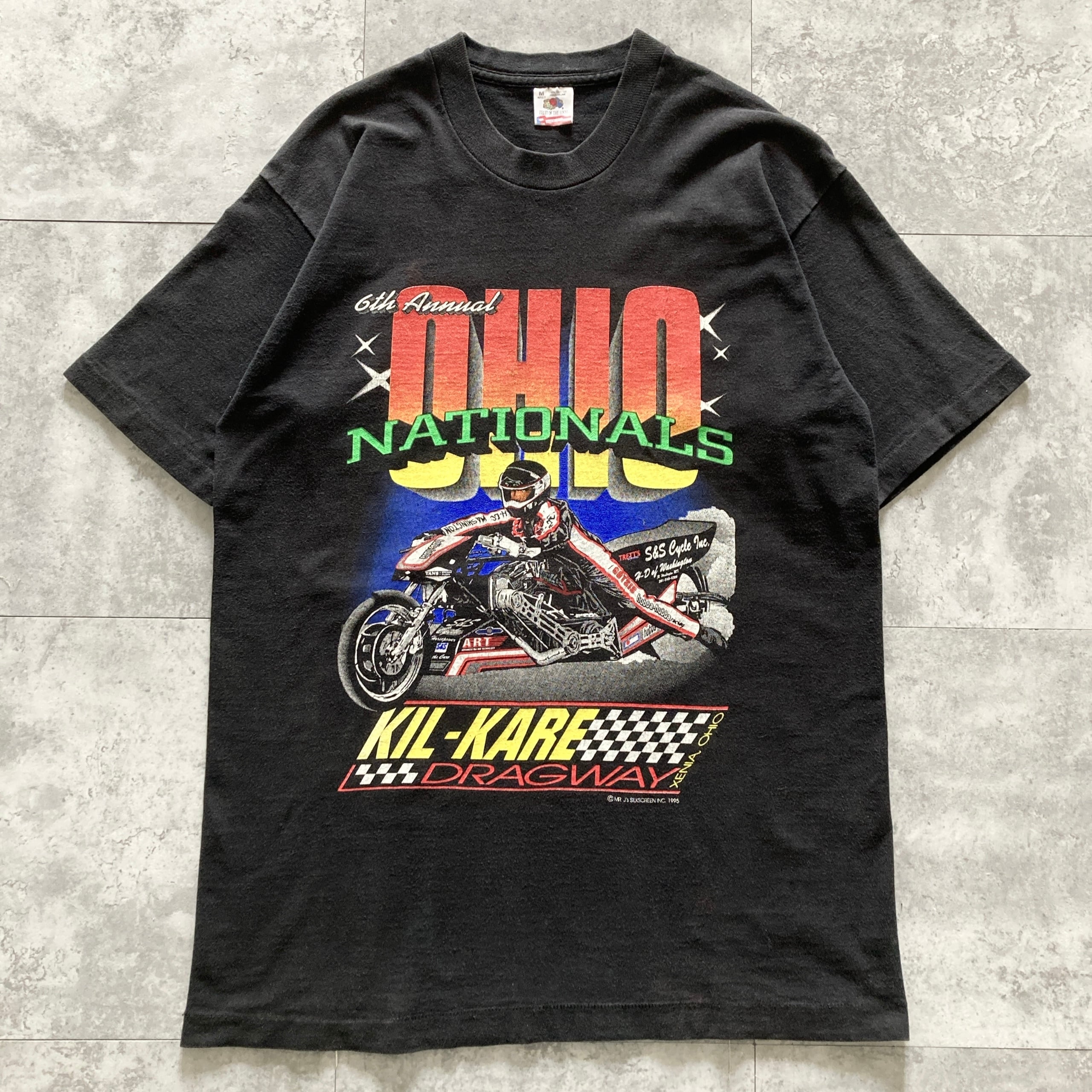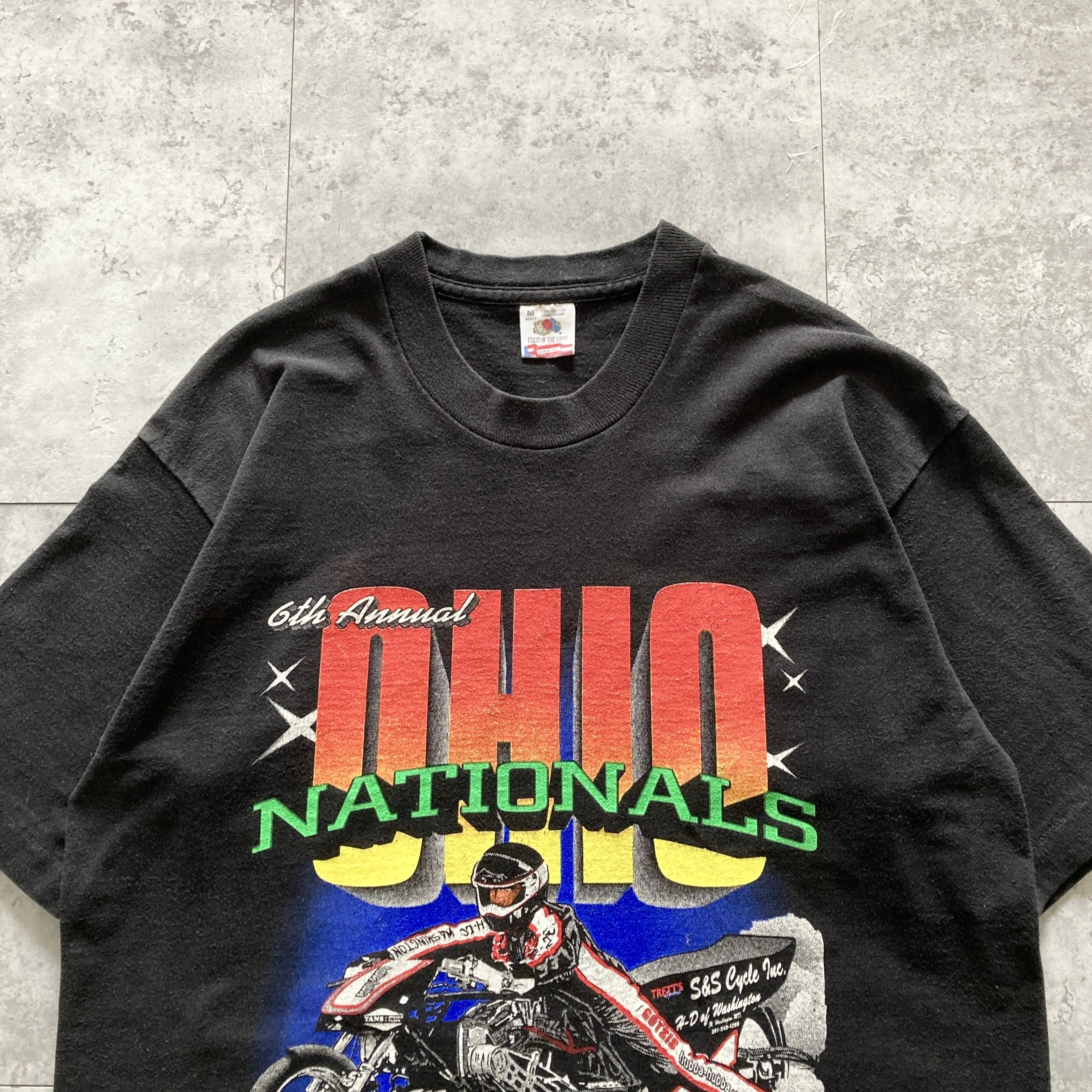 【USA製】90s FRUIT OF THE LOOM フルーツオブザルーム 表記M コピーライト1995年 シングルステッチ 両面プリント 6th Annual Ohio Nationals モーターサイクル ブラック Tシャツ