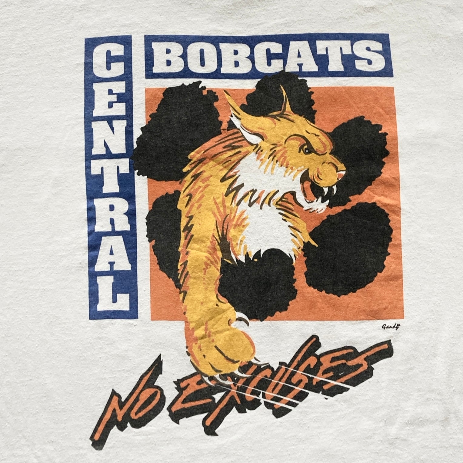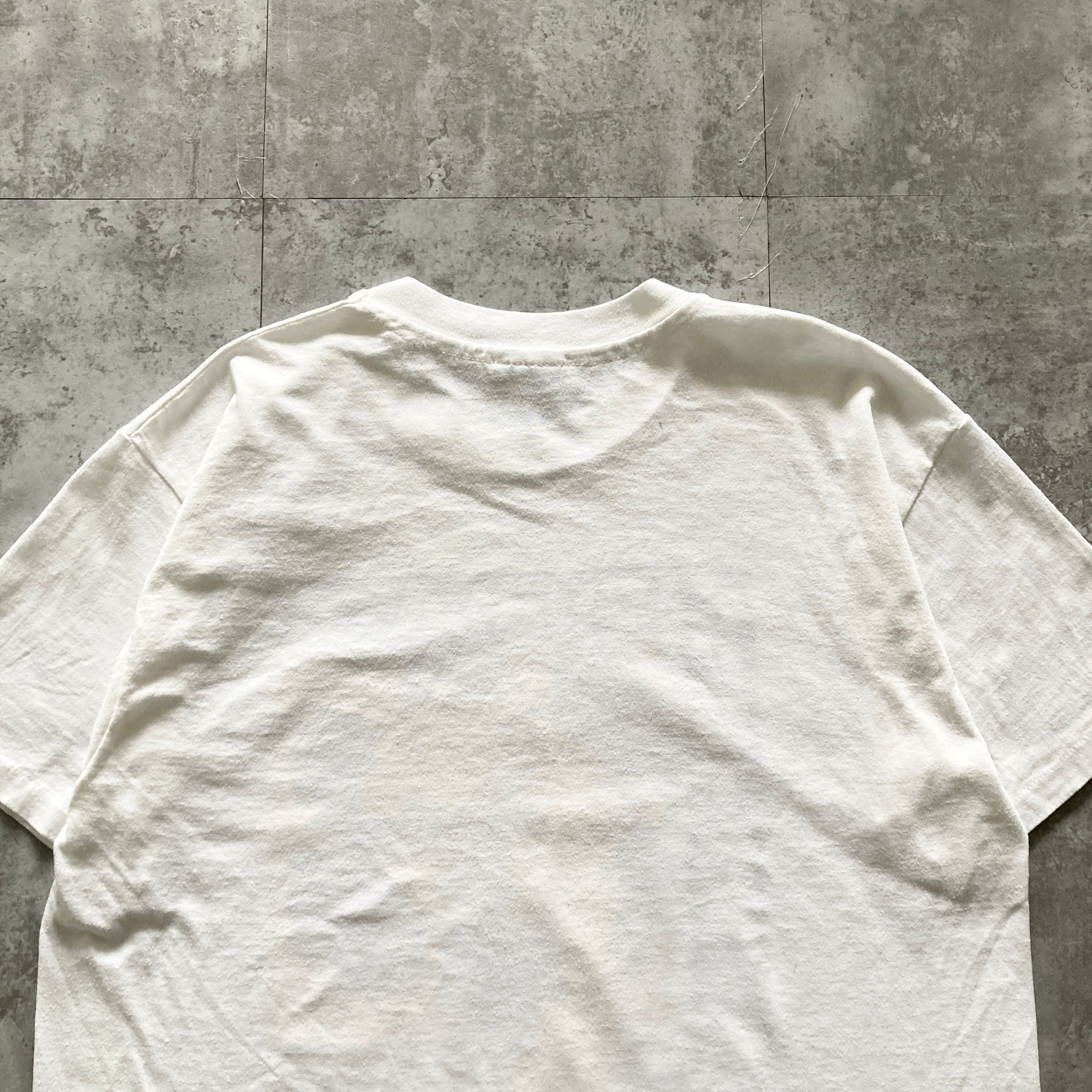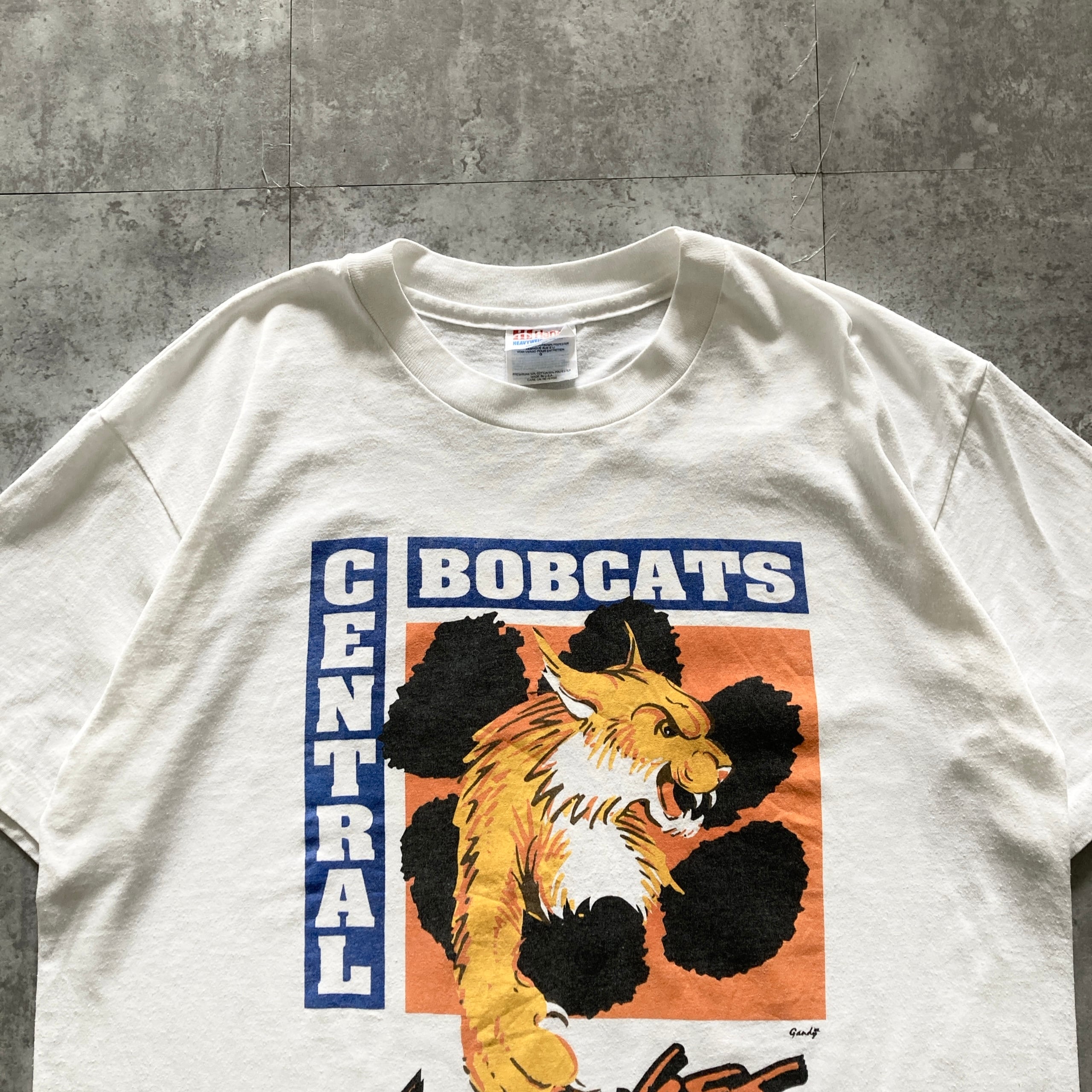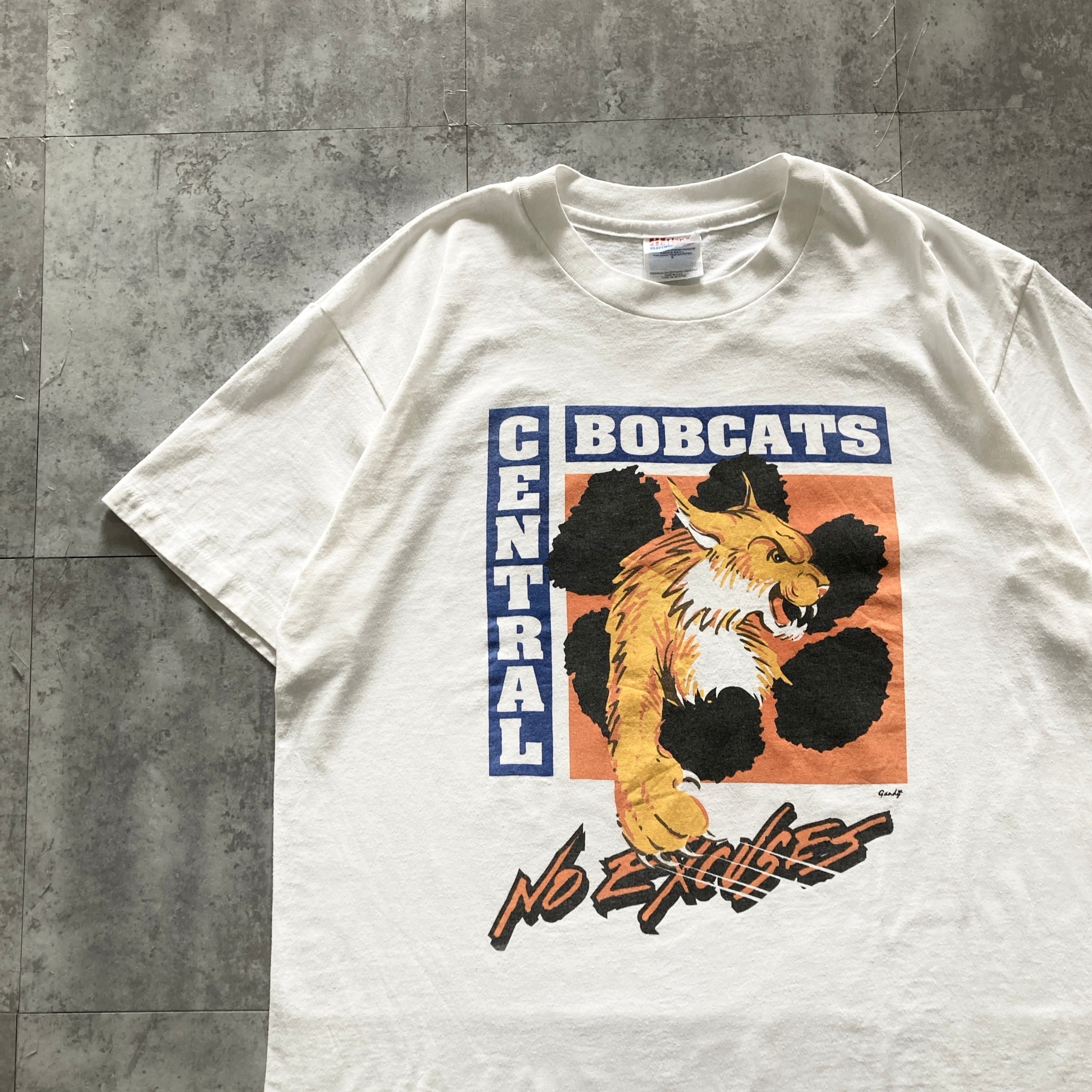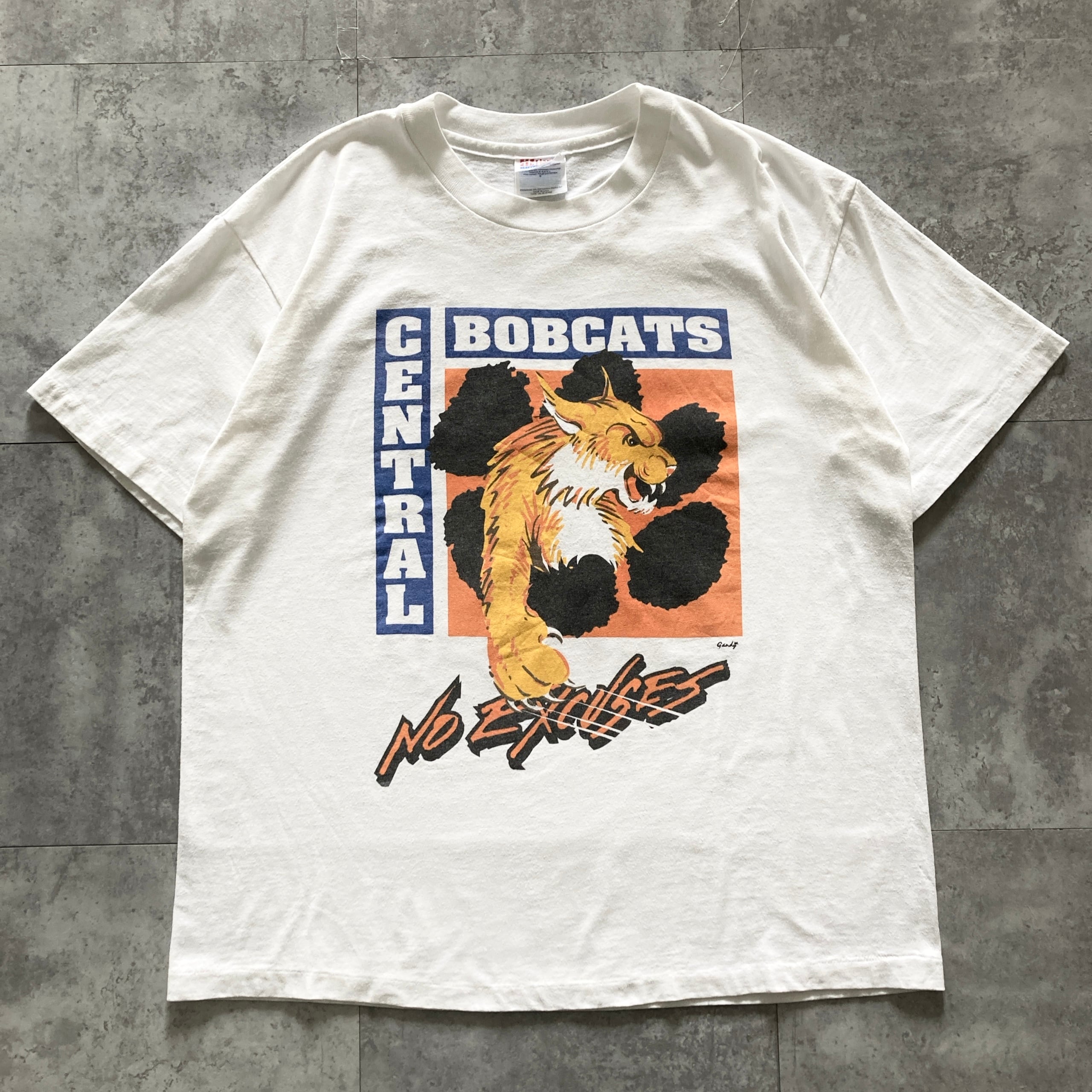 【USA製】90s Hanes ヘインズ 表記L シングルステッチ バックプリント アメリカ製 Central Bobcats No Excuses ホワイトレ Tシャツ