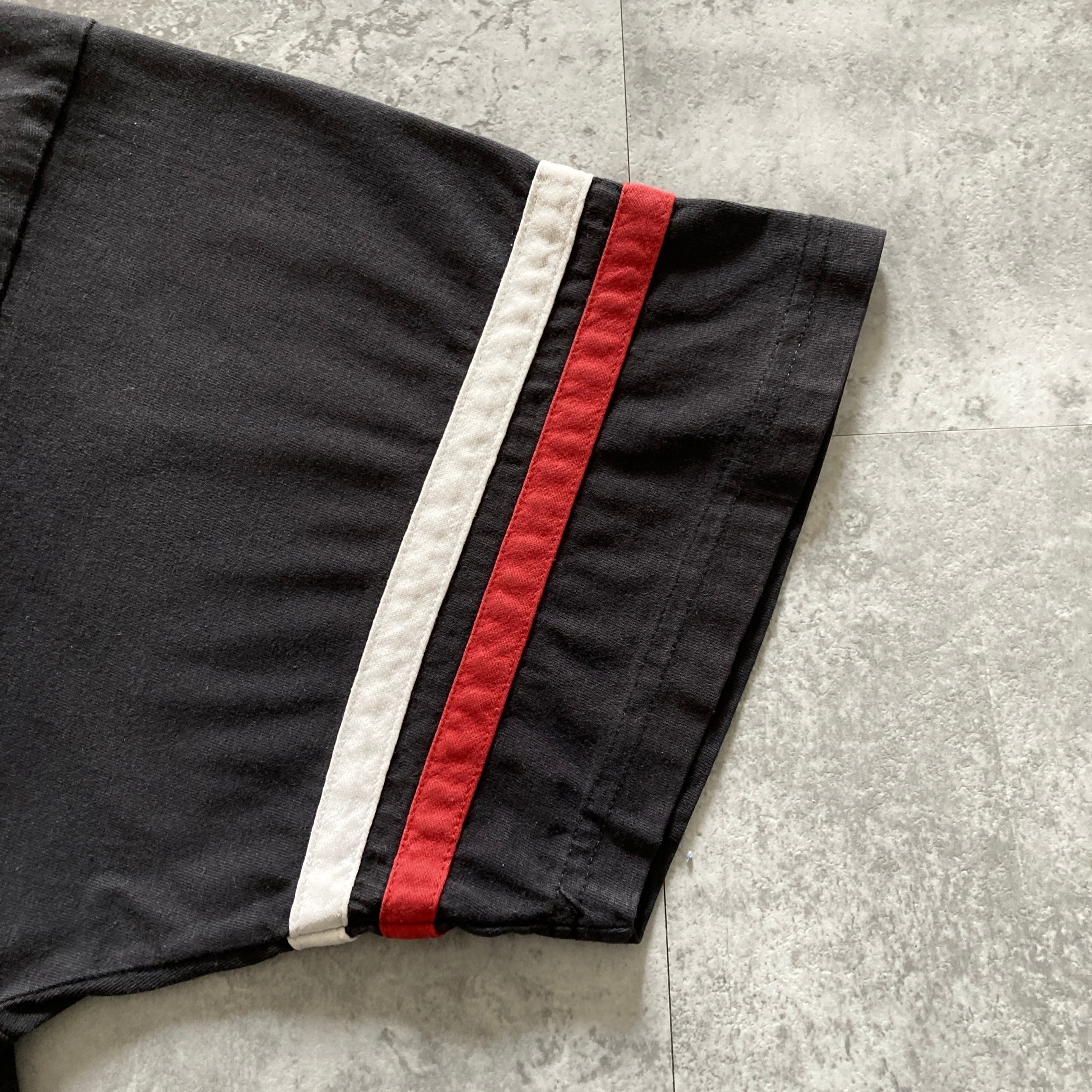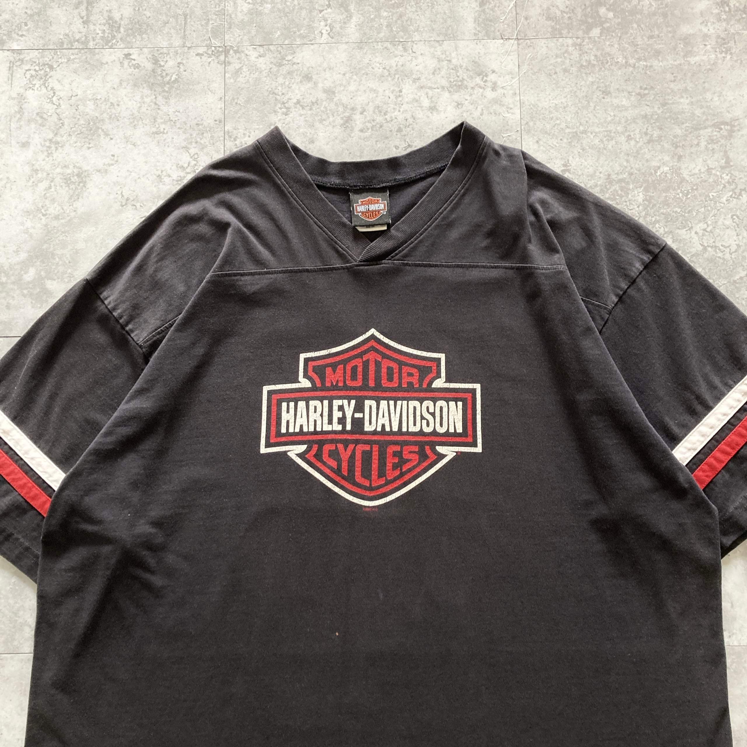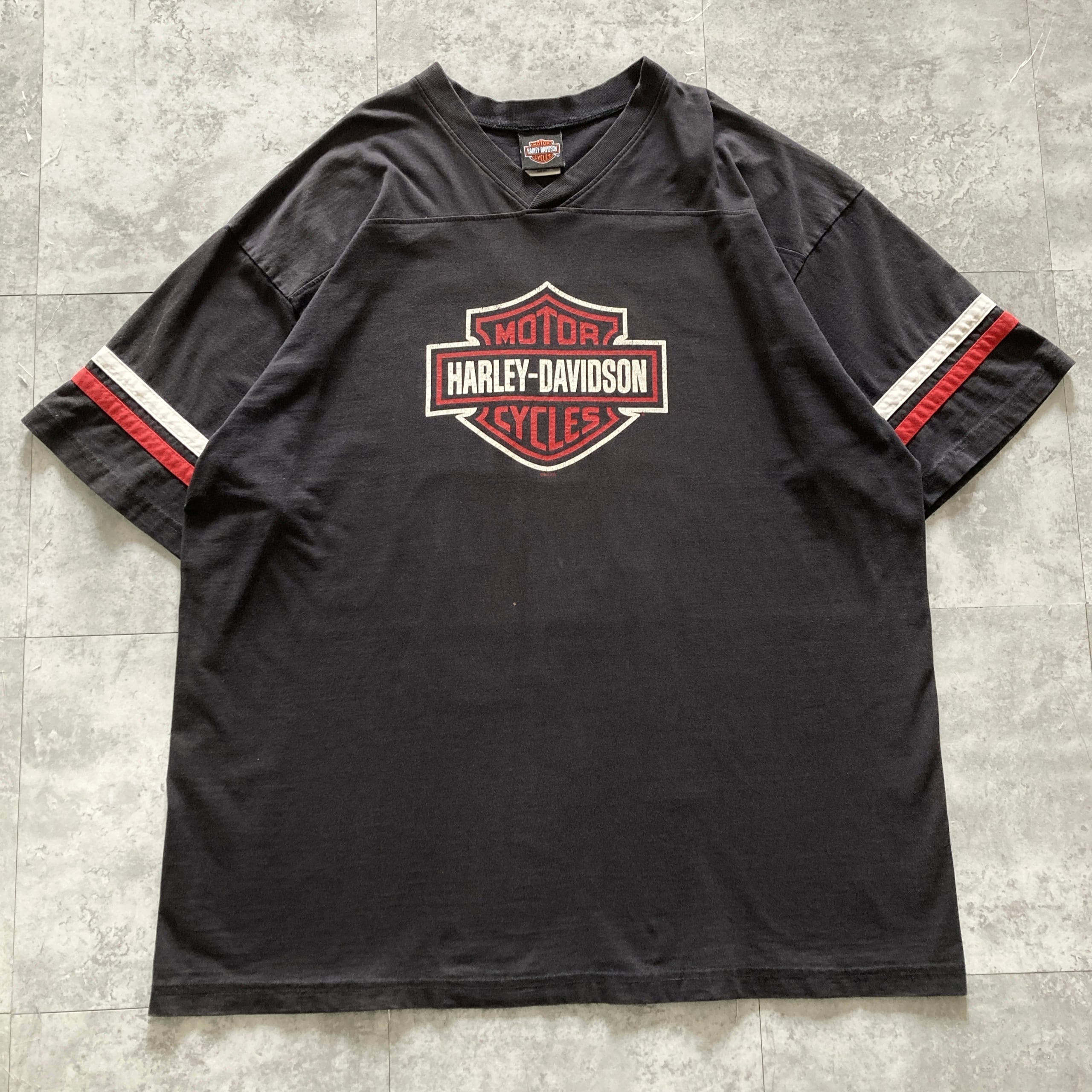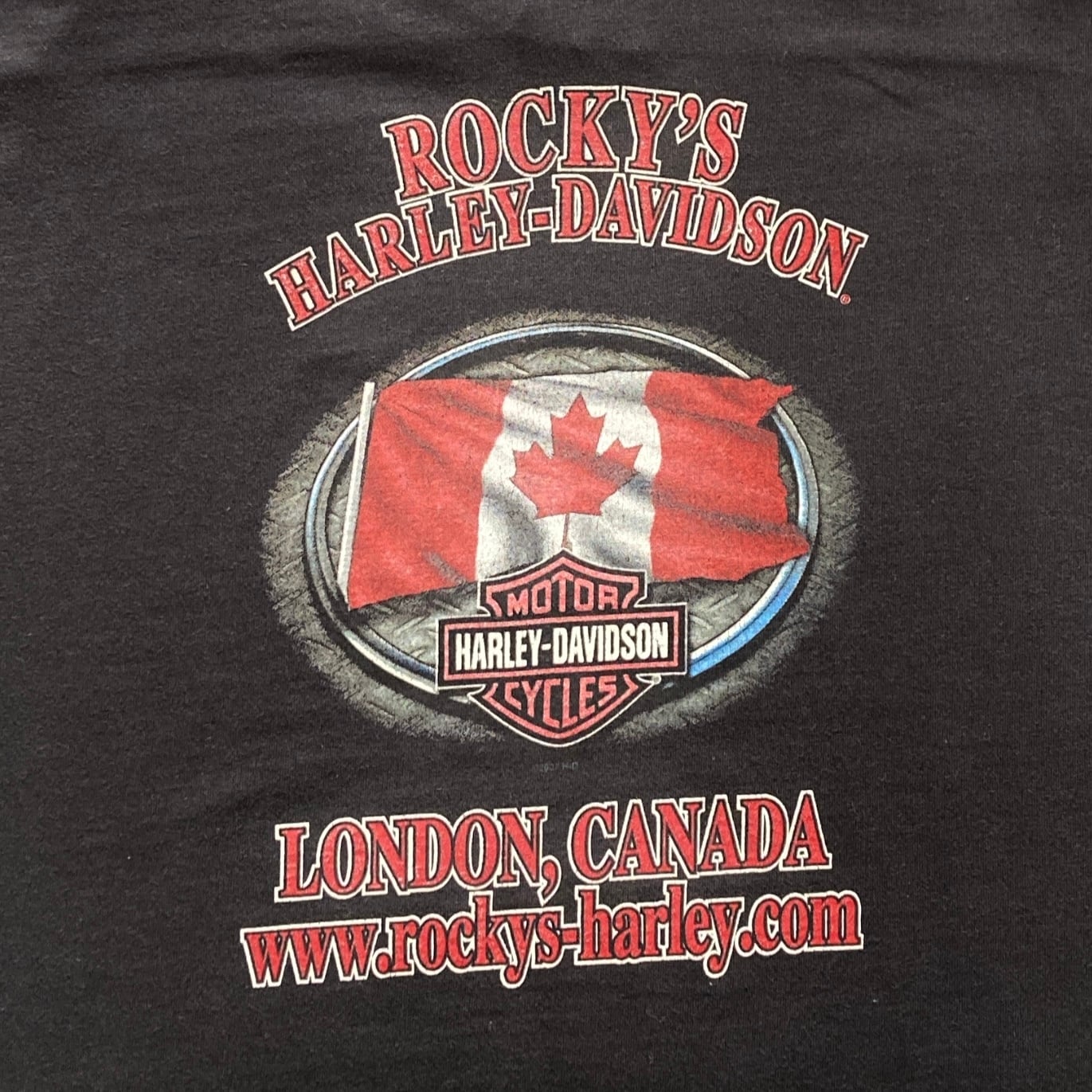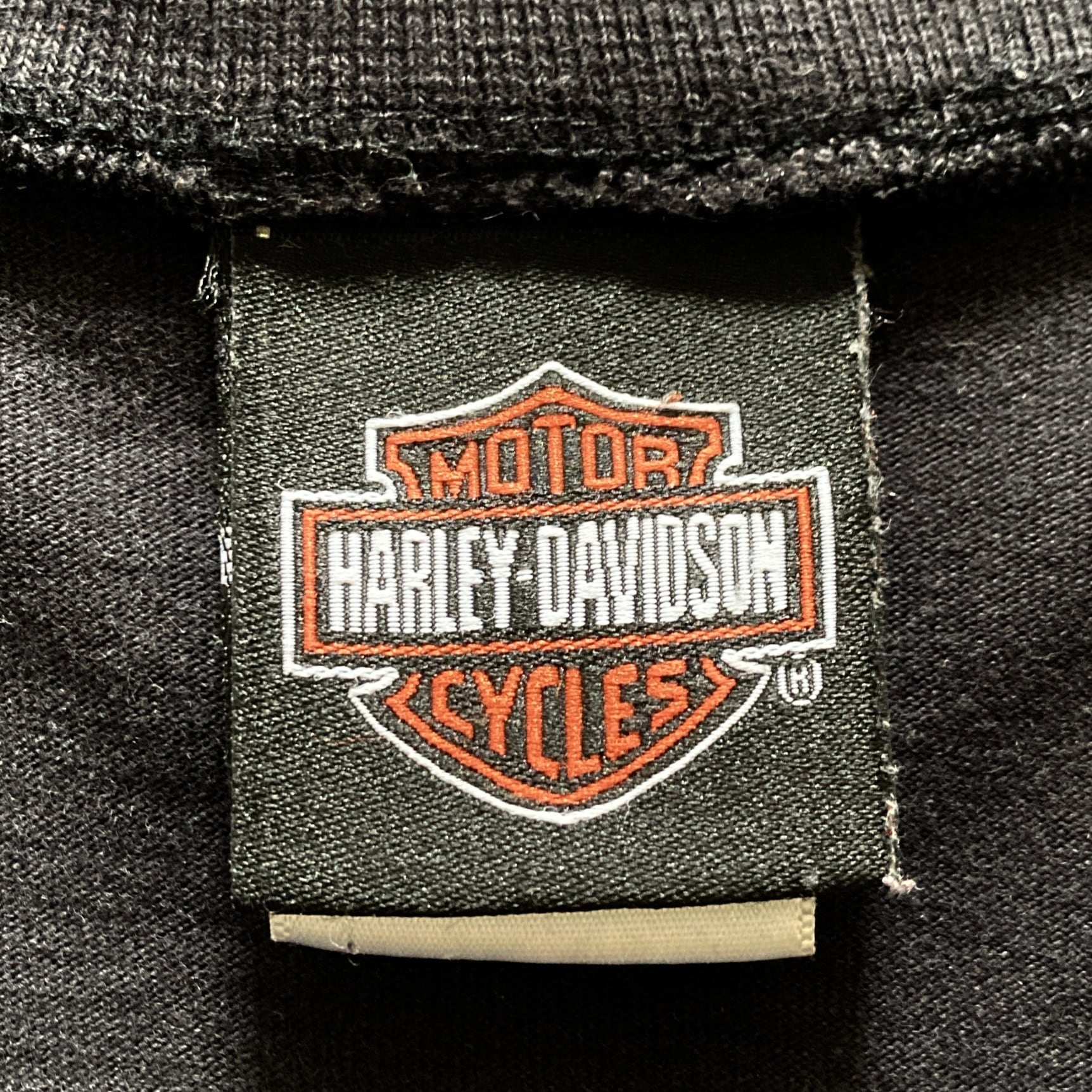 【USA製】00s ハーレーダビッドソン HARLEY-DAVIDSON 07年製 表記2XL アメリカ製 両面プリント 袖ライン ブラック Tシャツ