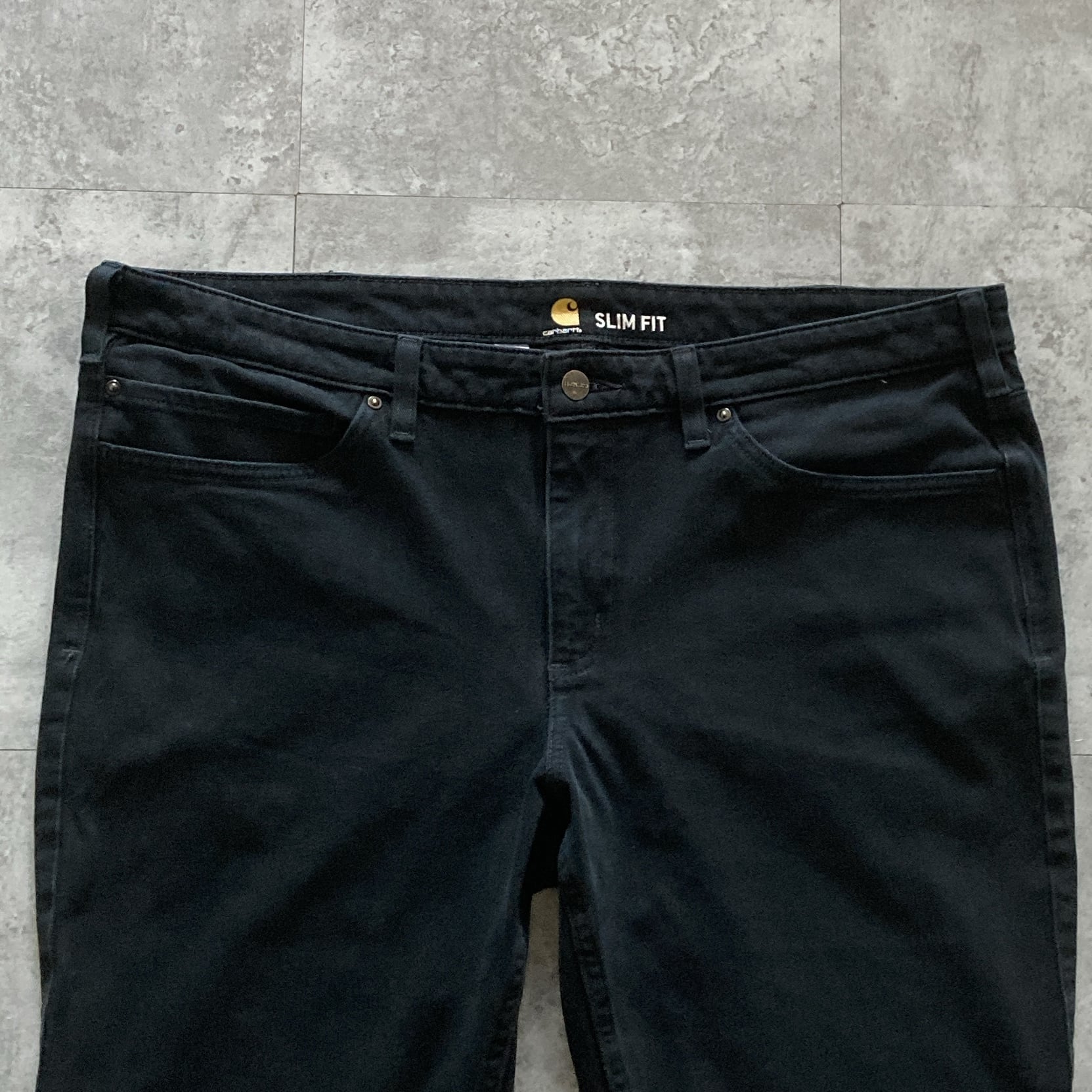 【Size.18】carhartt カーハート ジッパーフライ ワンポイント ロゴ刺繍 ブラック ビッグサイズ デニムパンツ ジーンズ