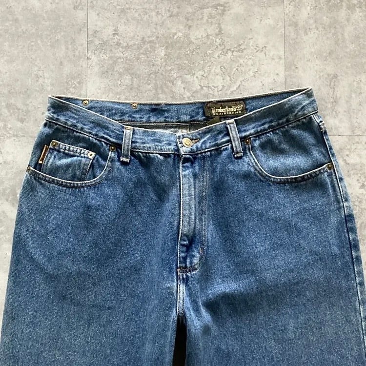 【Size.34】90’s Timberland ティンバーランド ジップフライ レザーパッチ ビッグサイズ デニムパンツ ジーンズ