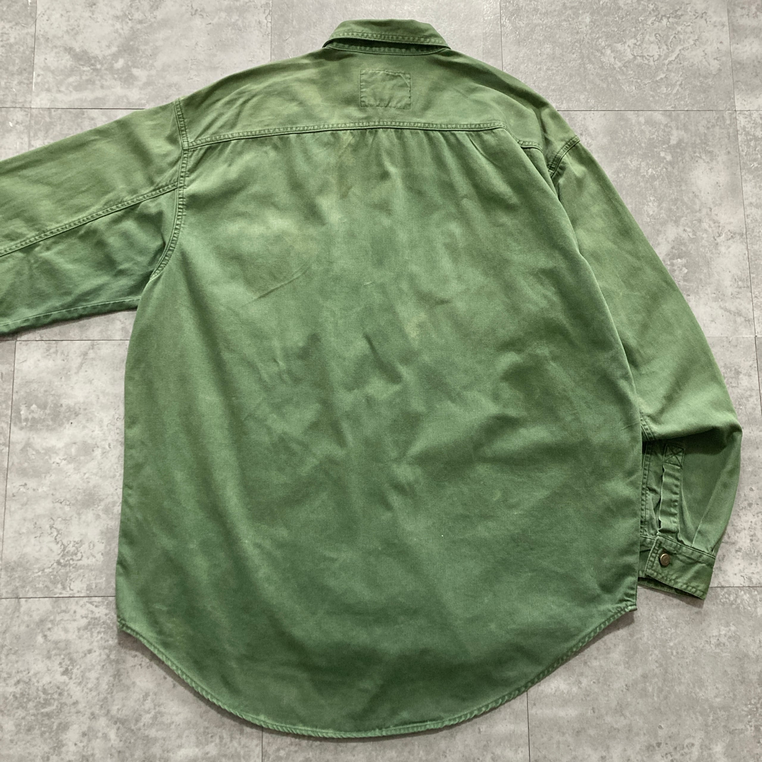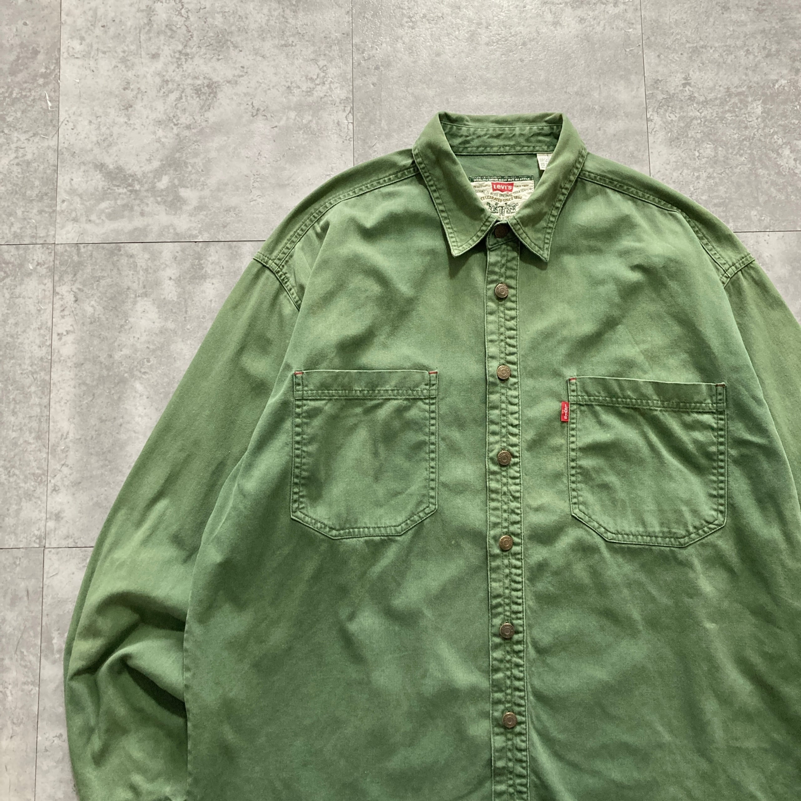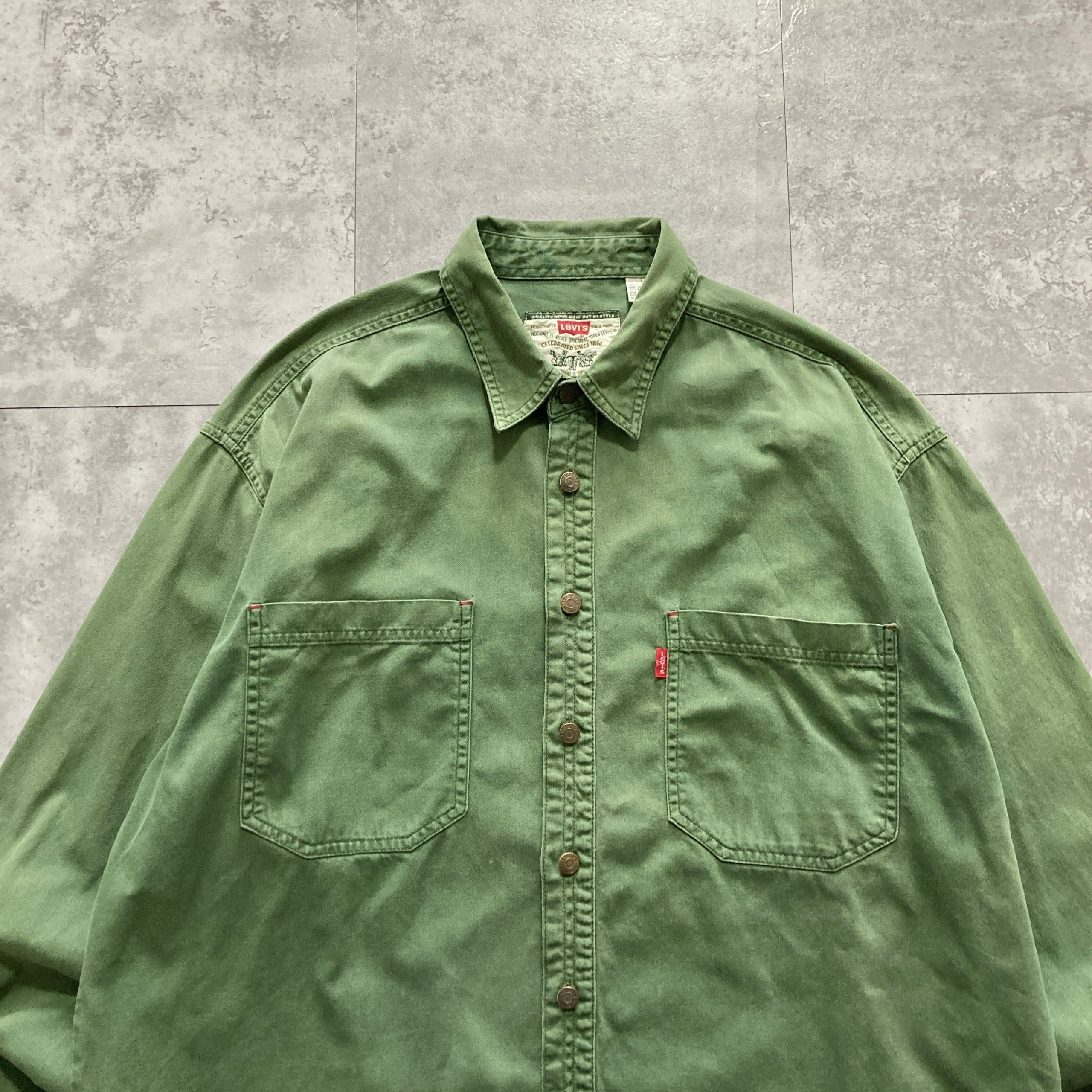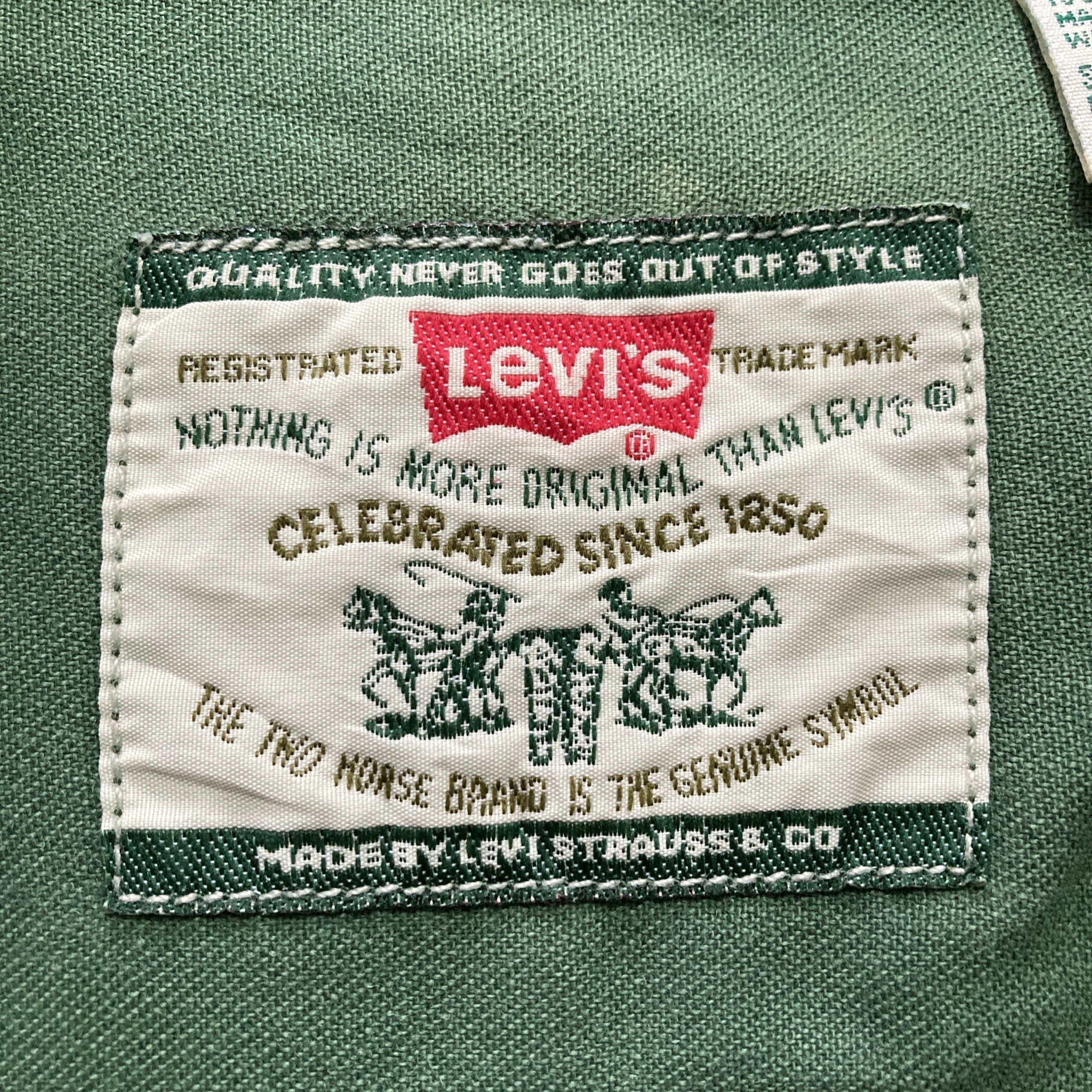 【Size.M】90‘s Levis リーバイス 90年代製 ワンポイント ロゴ刺繍 メタルボタン ダブルポケット グリーン デニムシャツ
