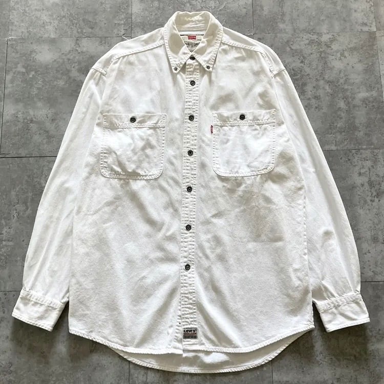【90s】Levi's リーバイス メタルボタン 胸ポケット 90年代製 着用感M ホワイト デニムシャツ