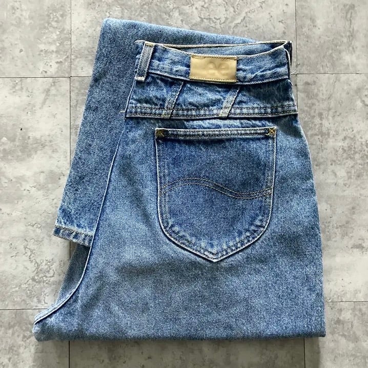 【16 MED】Lee リー ジッパーフライ レザーパッチ デニムパンツ ジーンズ