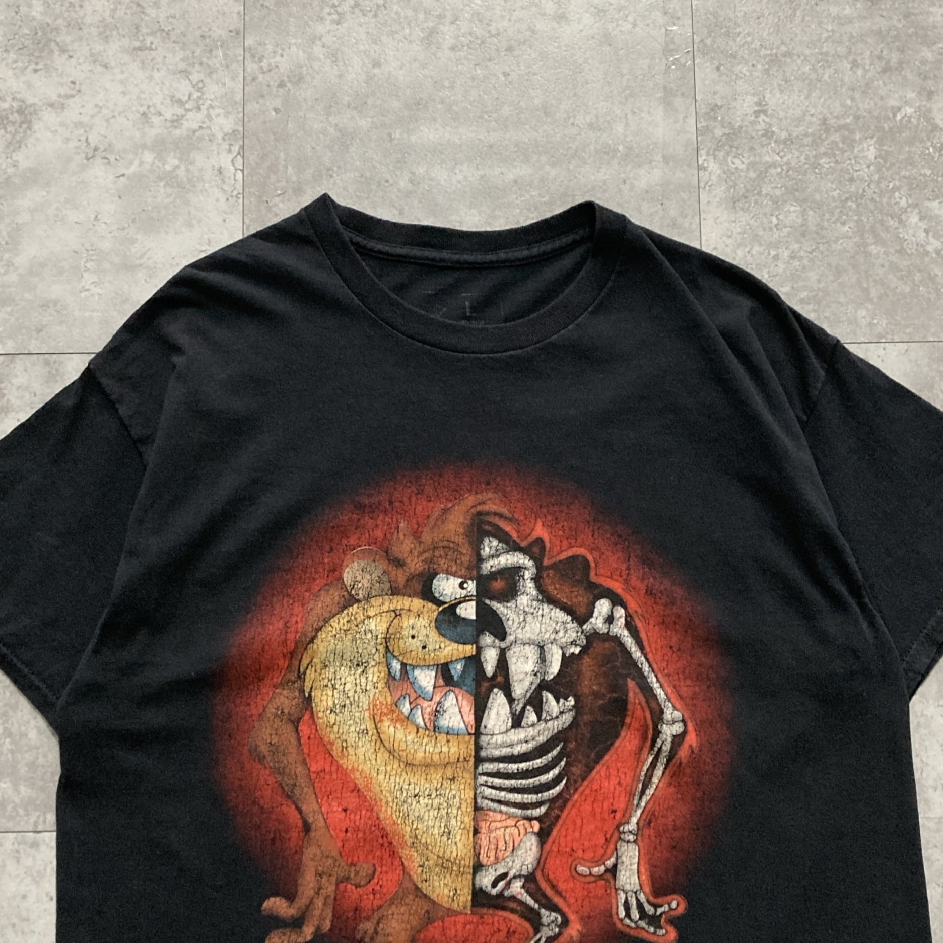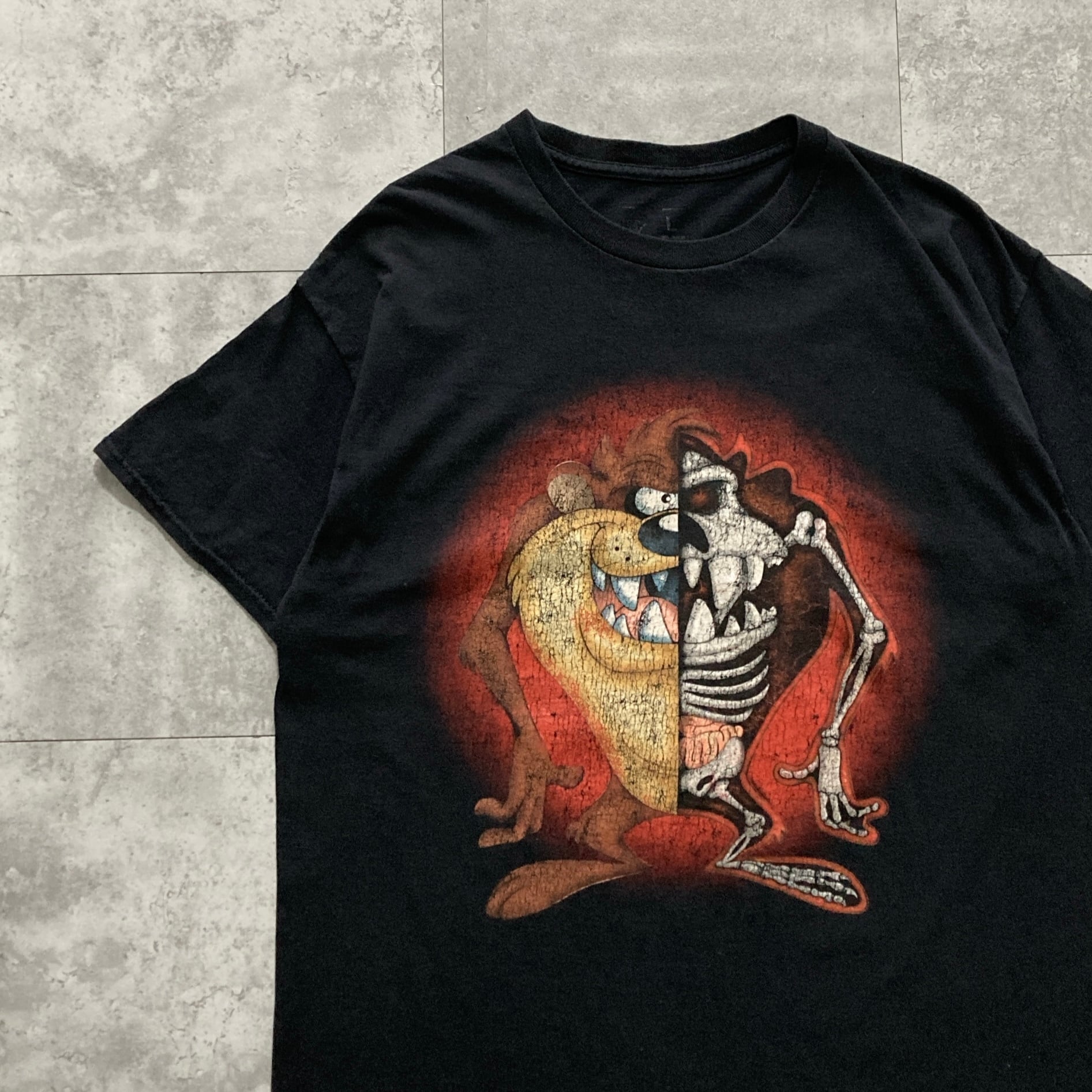 【Size.L】LOONEY TUNES ルーニーテューンズ タズマニアンデビル ヴィンテージ加工プリント ブラック Tシャツ