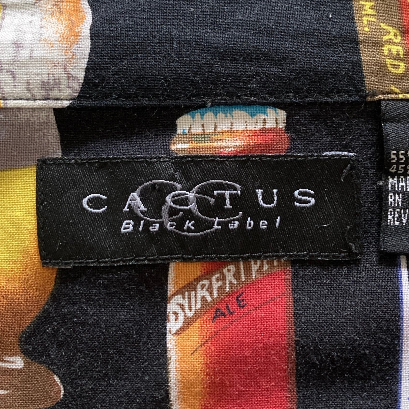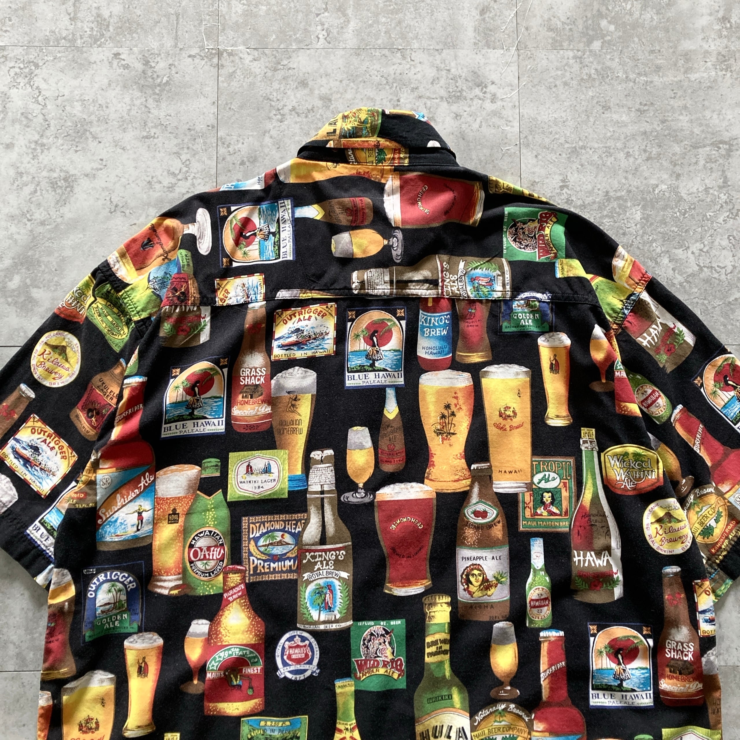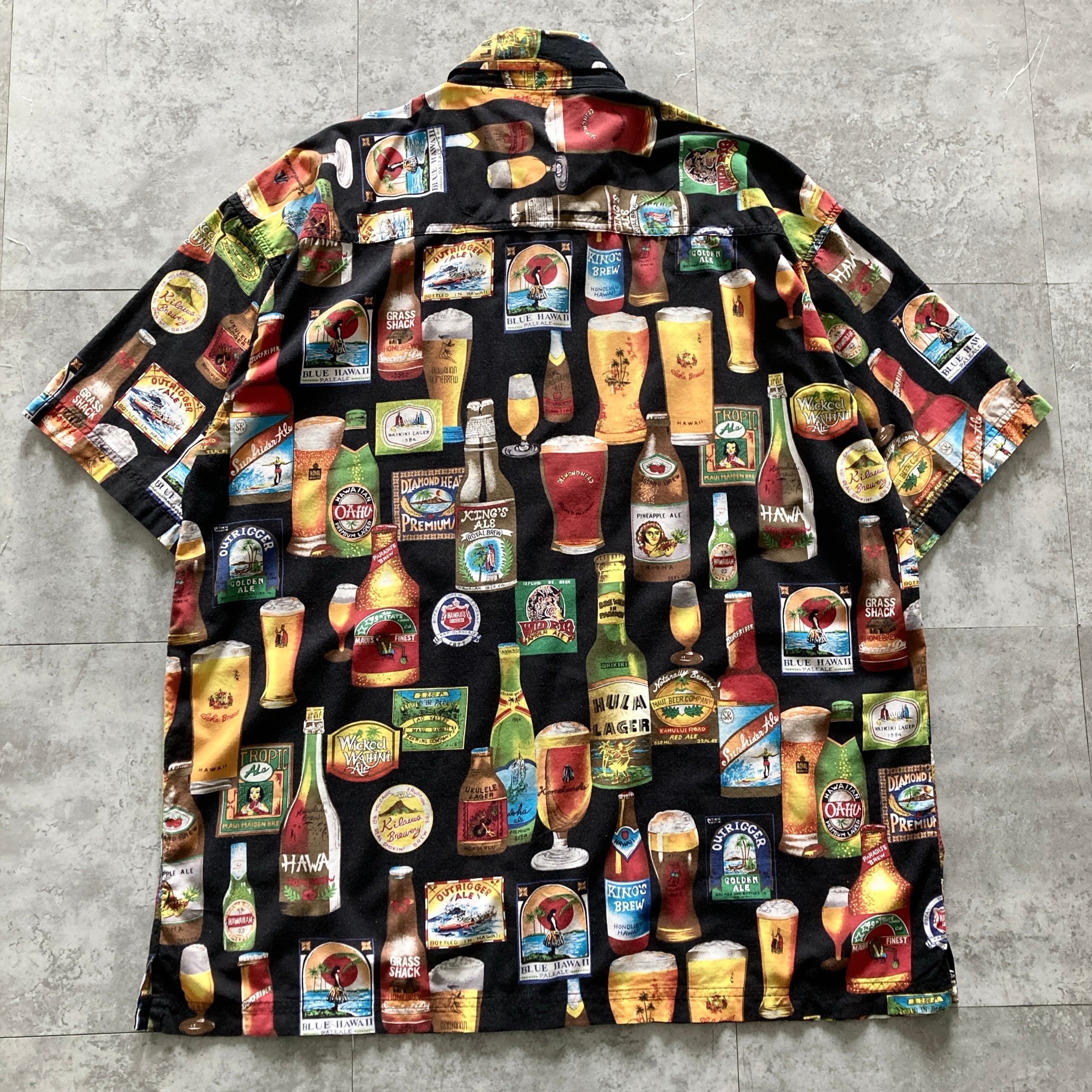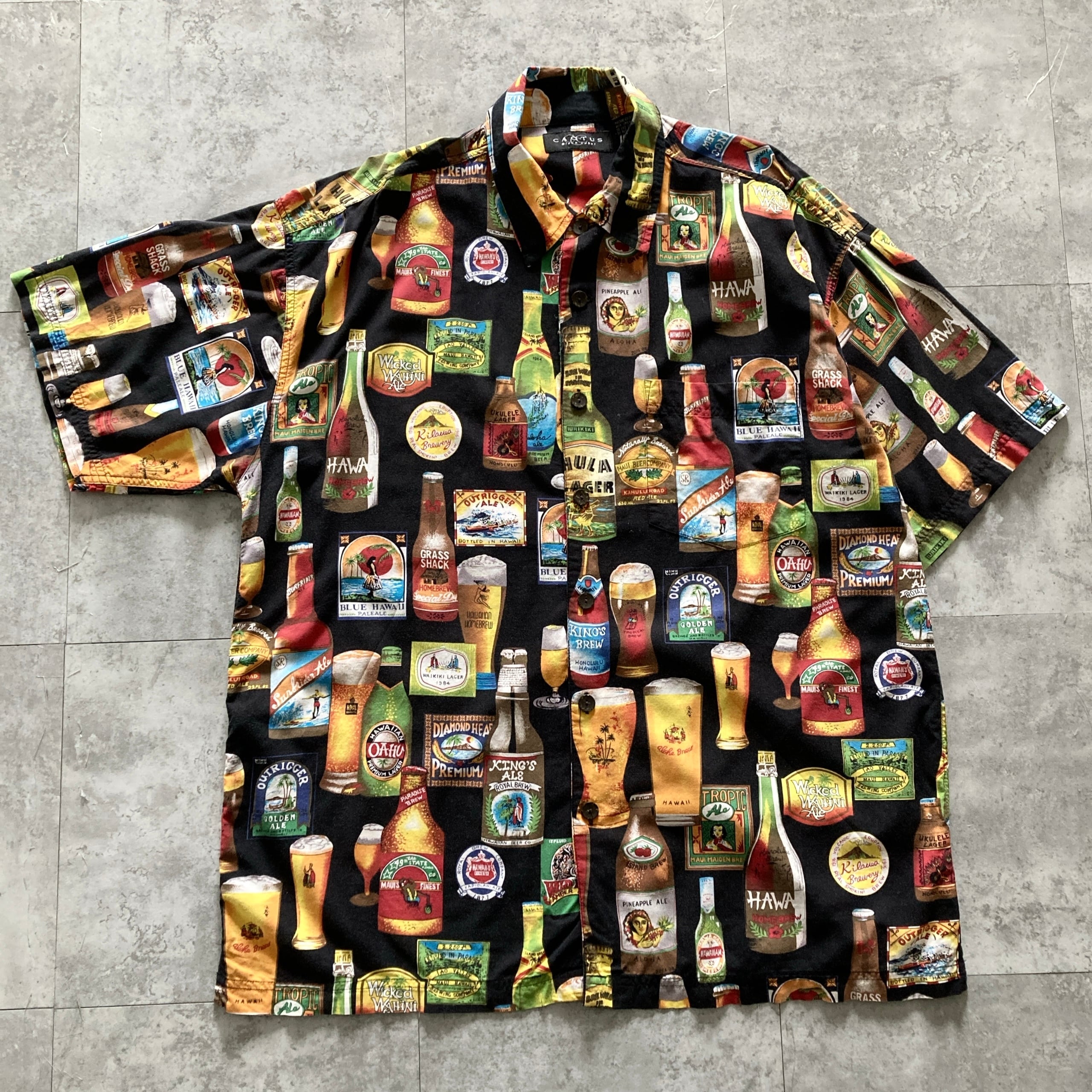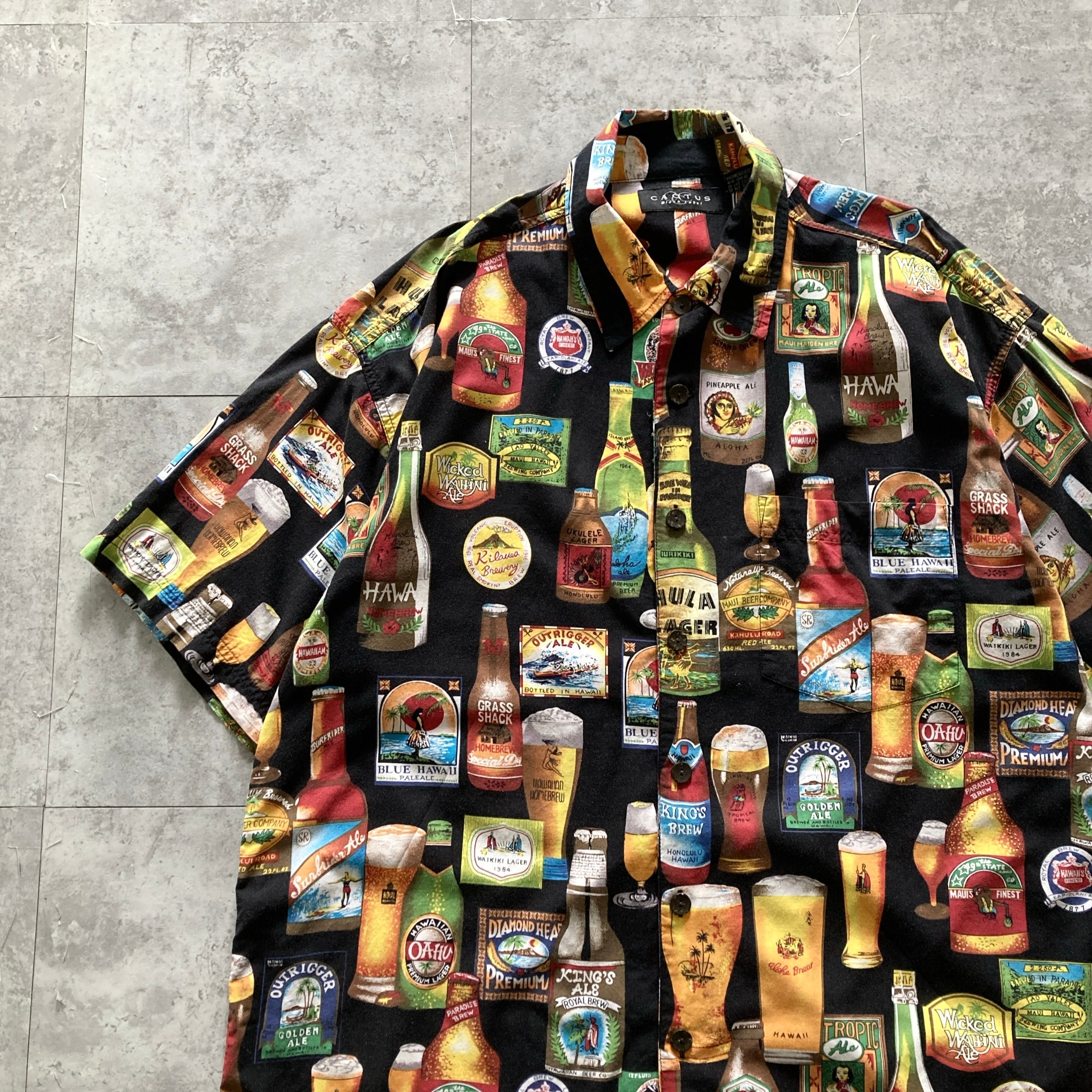 【Size.XL】CACTUS カクタス ビール カクテル 総柄 ブラック 半袖シャツ アロハシャツ