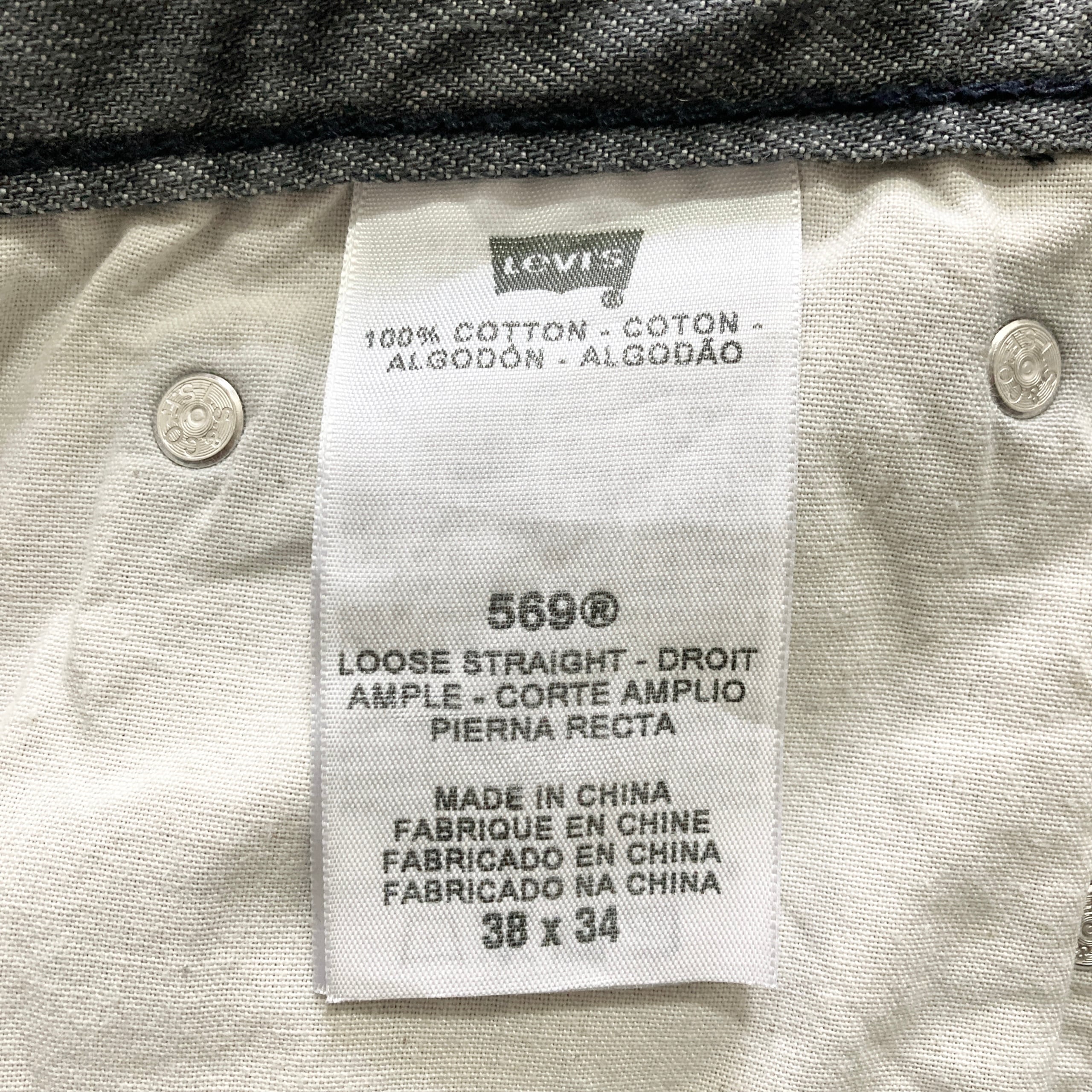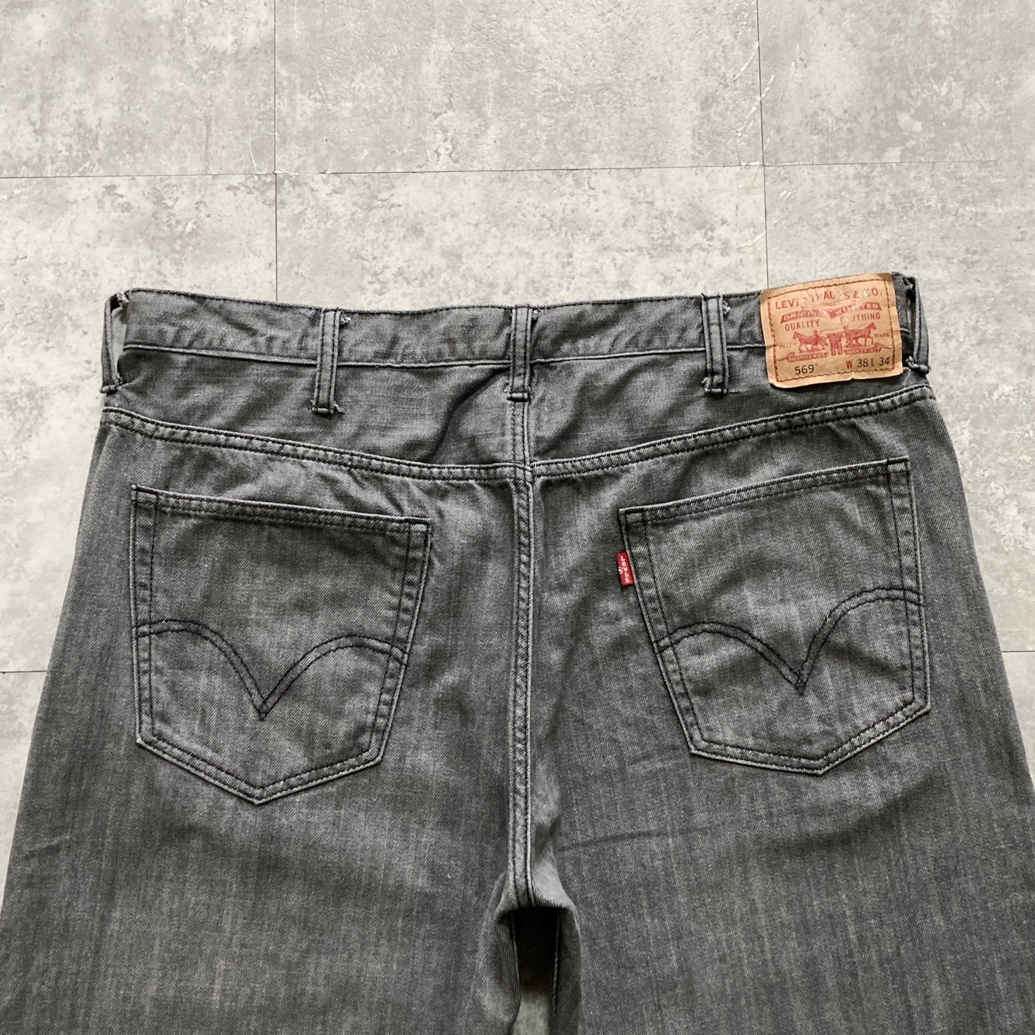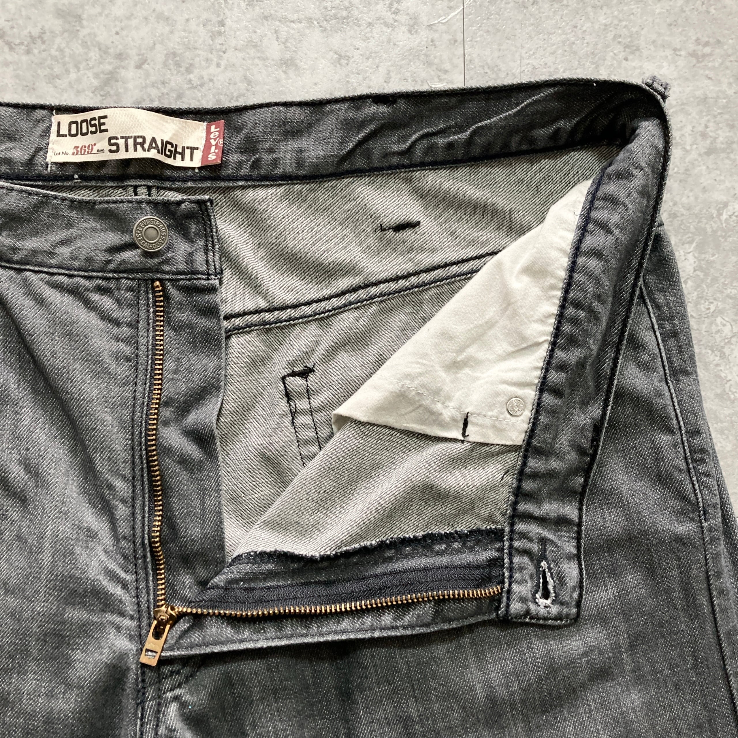 【W38 L34】Levi's 569 リーバイス ジッパーフライ ビッグサイズ 先染めブラック(グレー) デニムパンツ ジーンズ