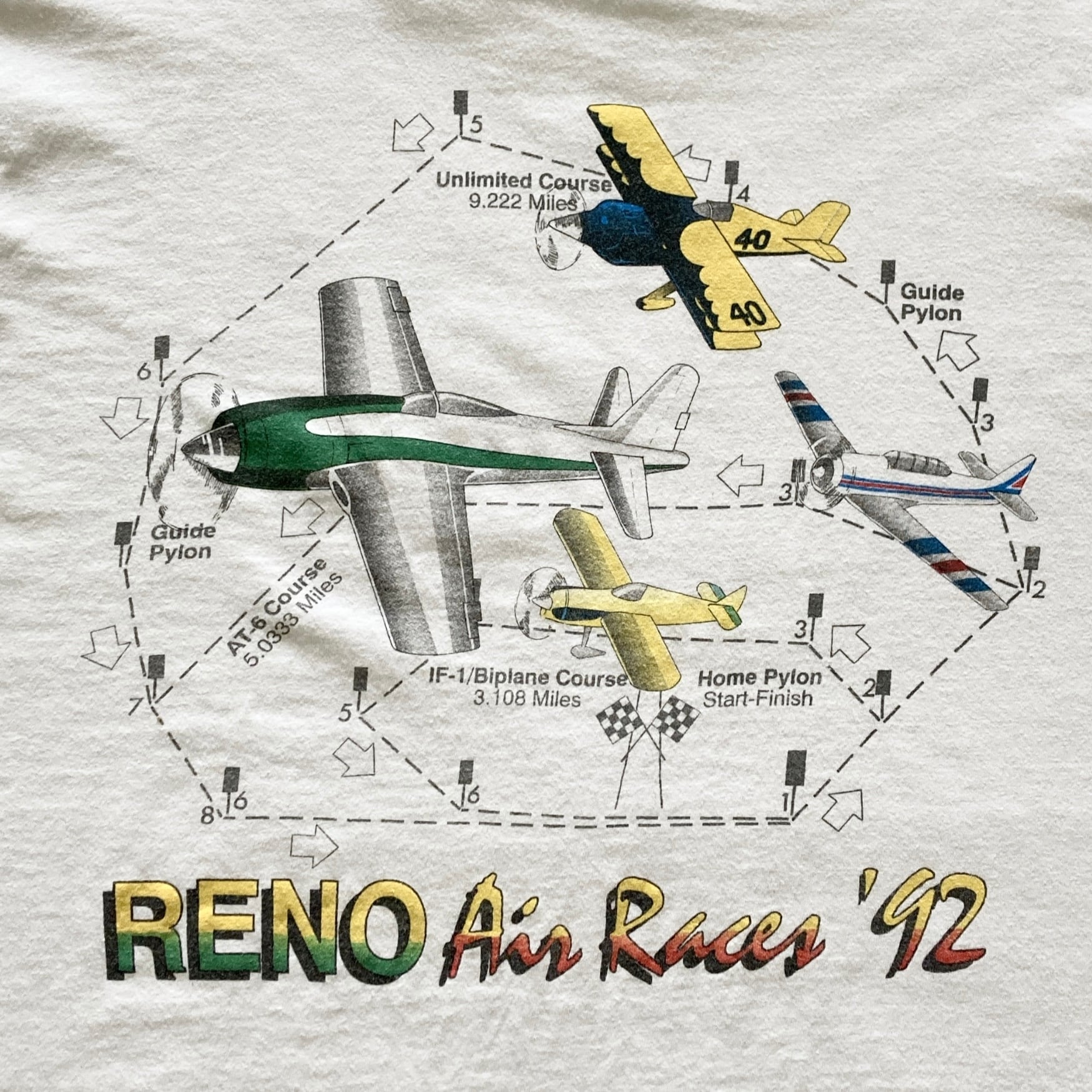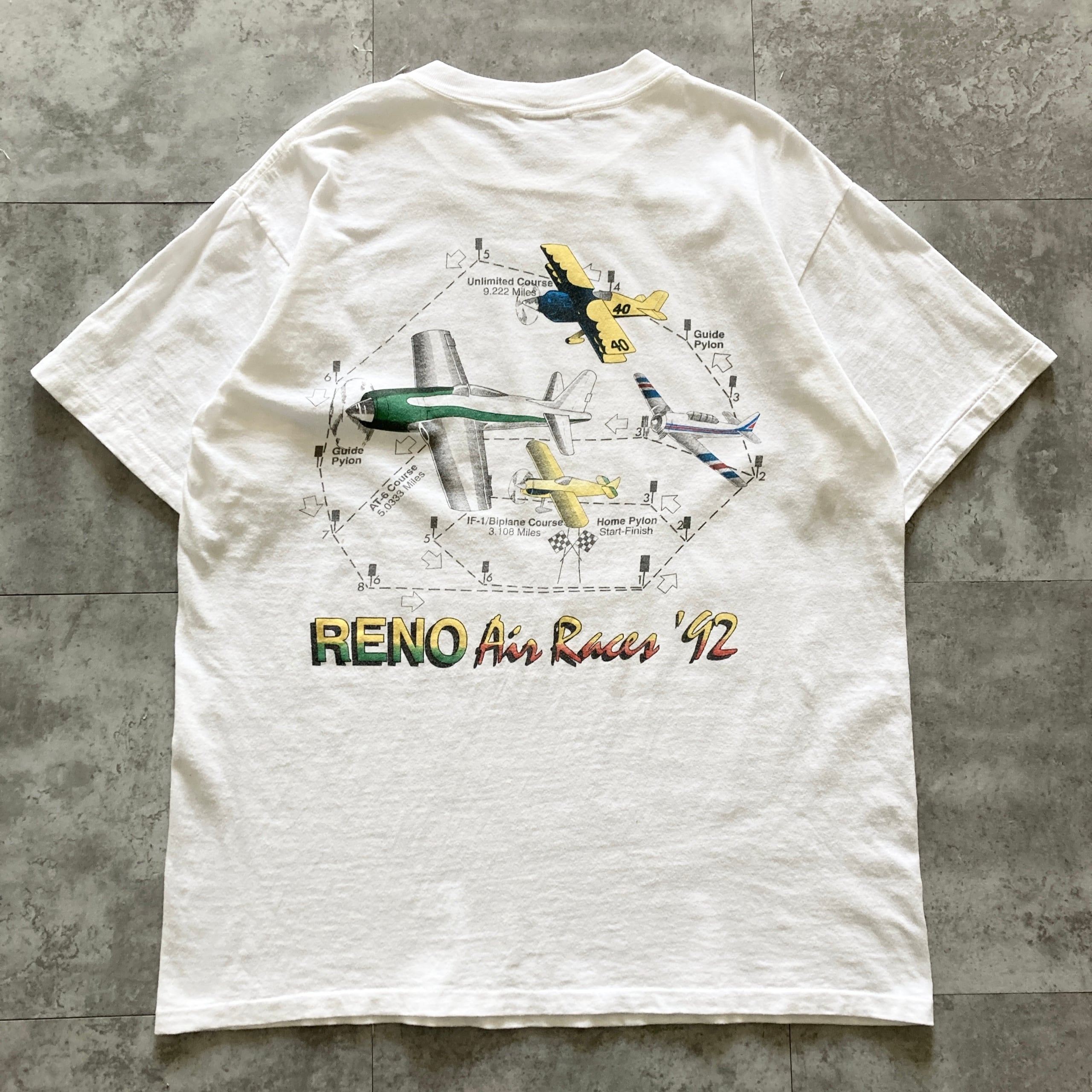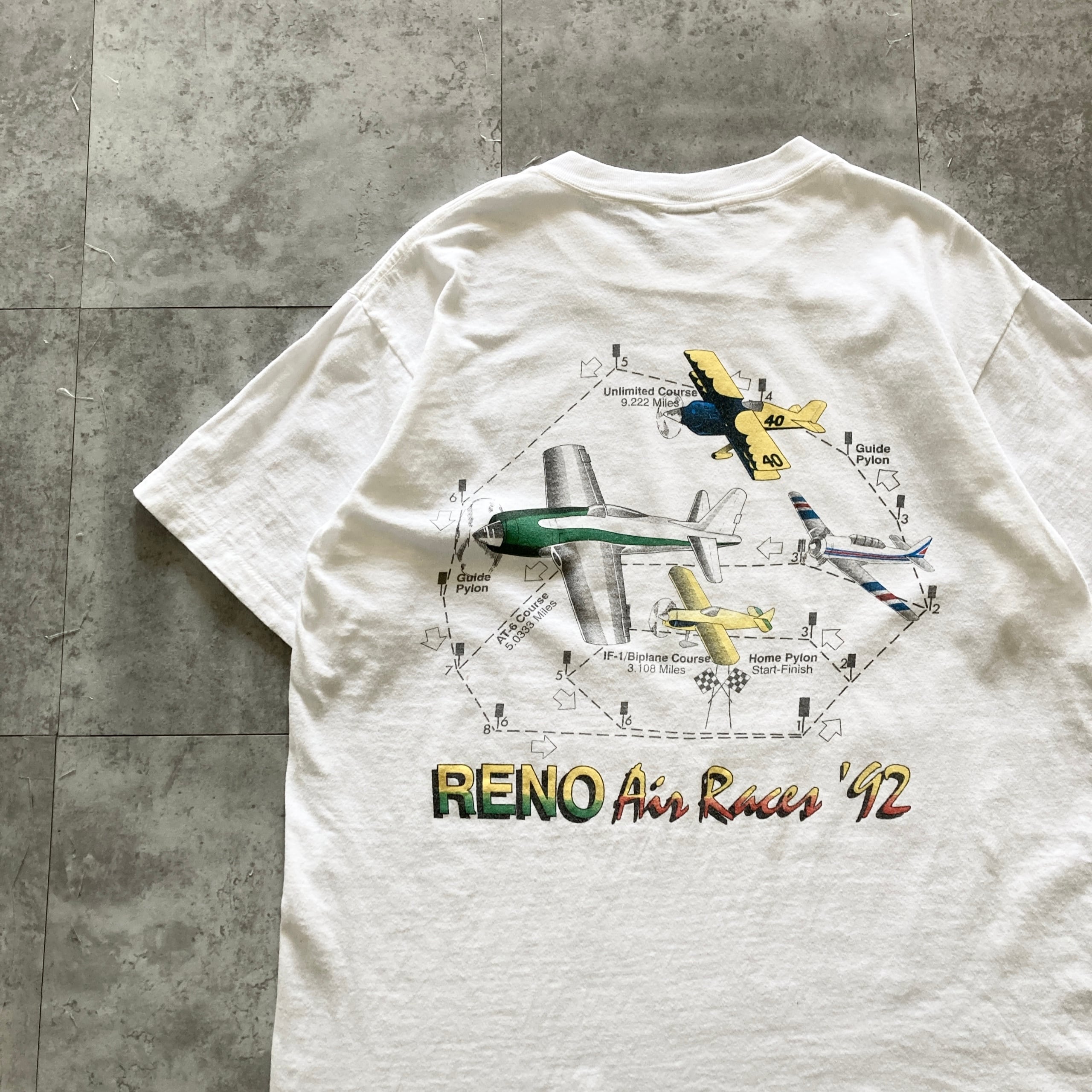 【90s】企業物 ONEITA オニータ 表記L シングルステッチ AVIATION CLASSICS 両面プリント ワンポイント バックプリント Reno Air Races‘92 ヘリコプター ホワイト Tシャツ