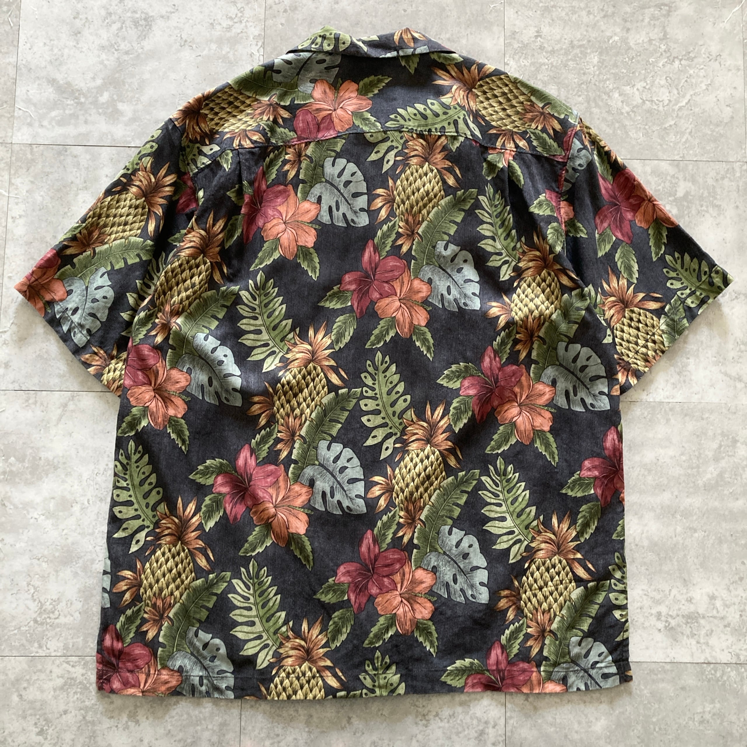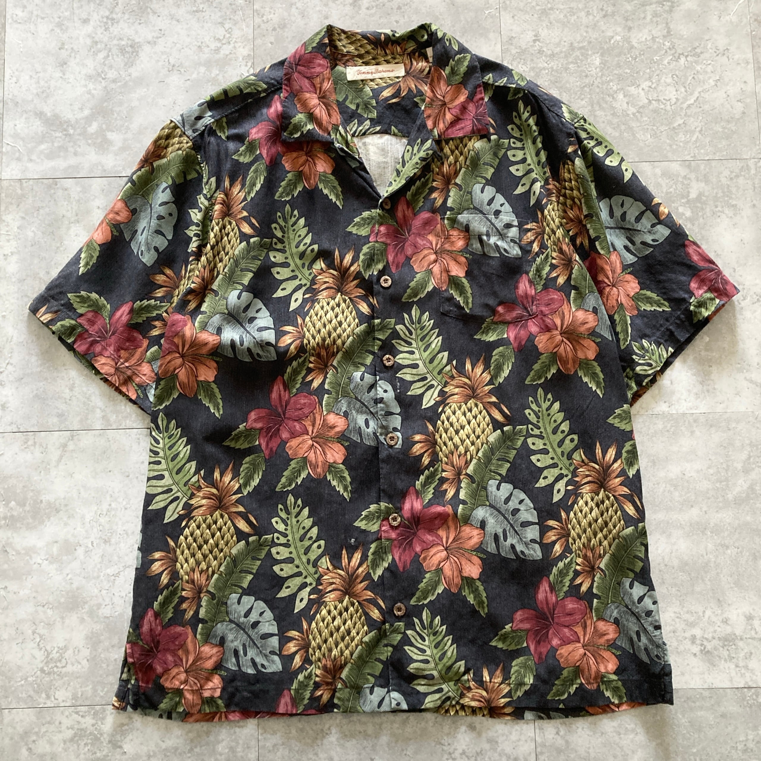 【Size.L】Tommy Bahama トミーバハマ シルク100% 総柄 ボタニカル 開襟シャツ オープンカラーシャツ アロハシャツ