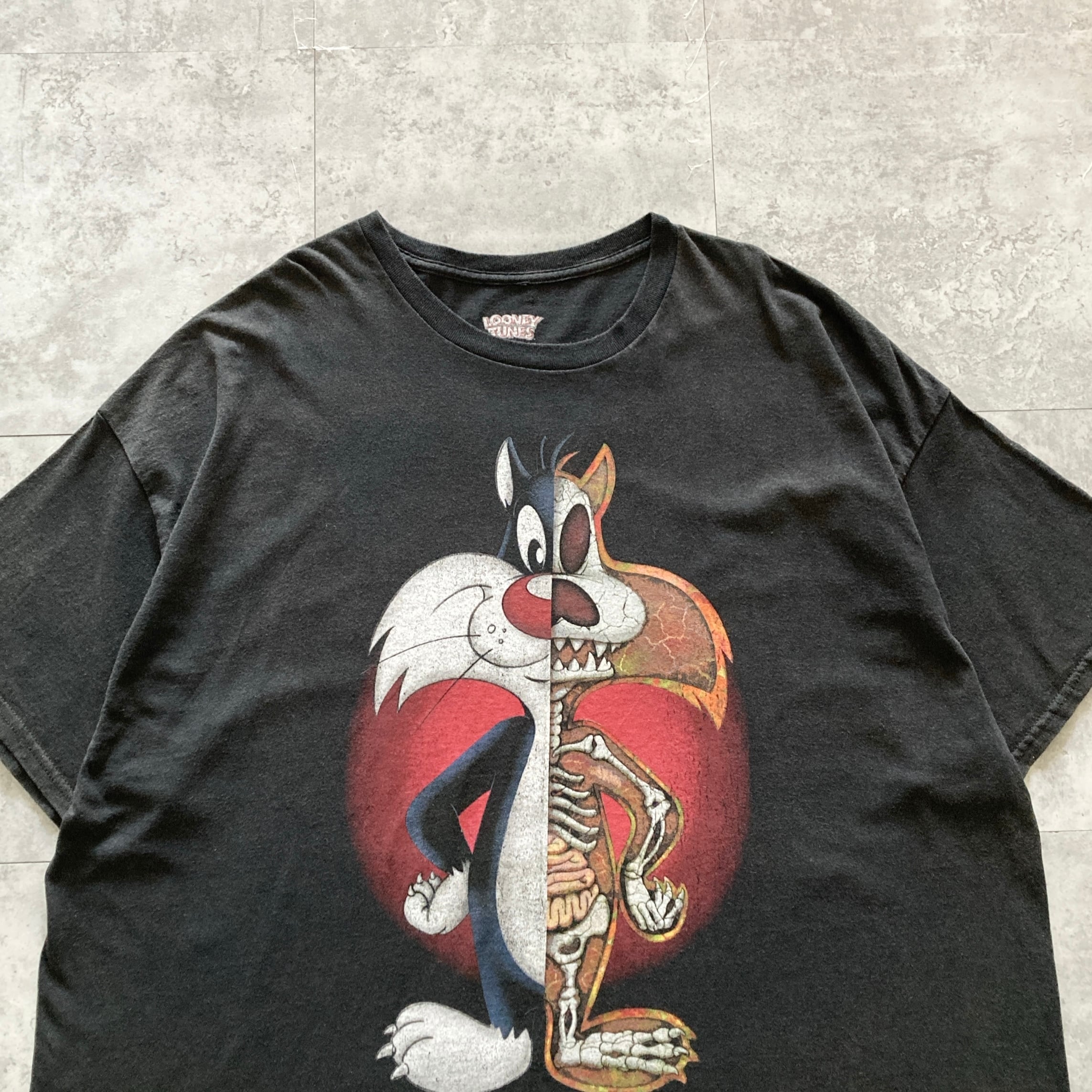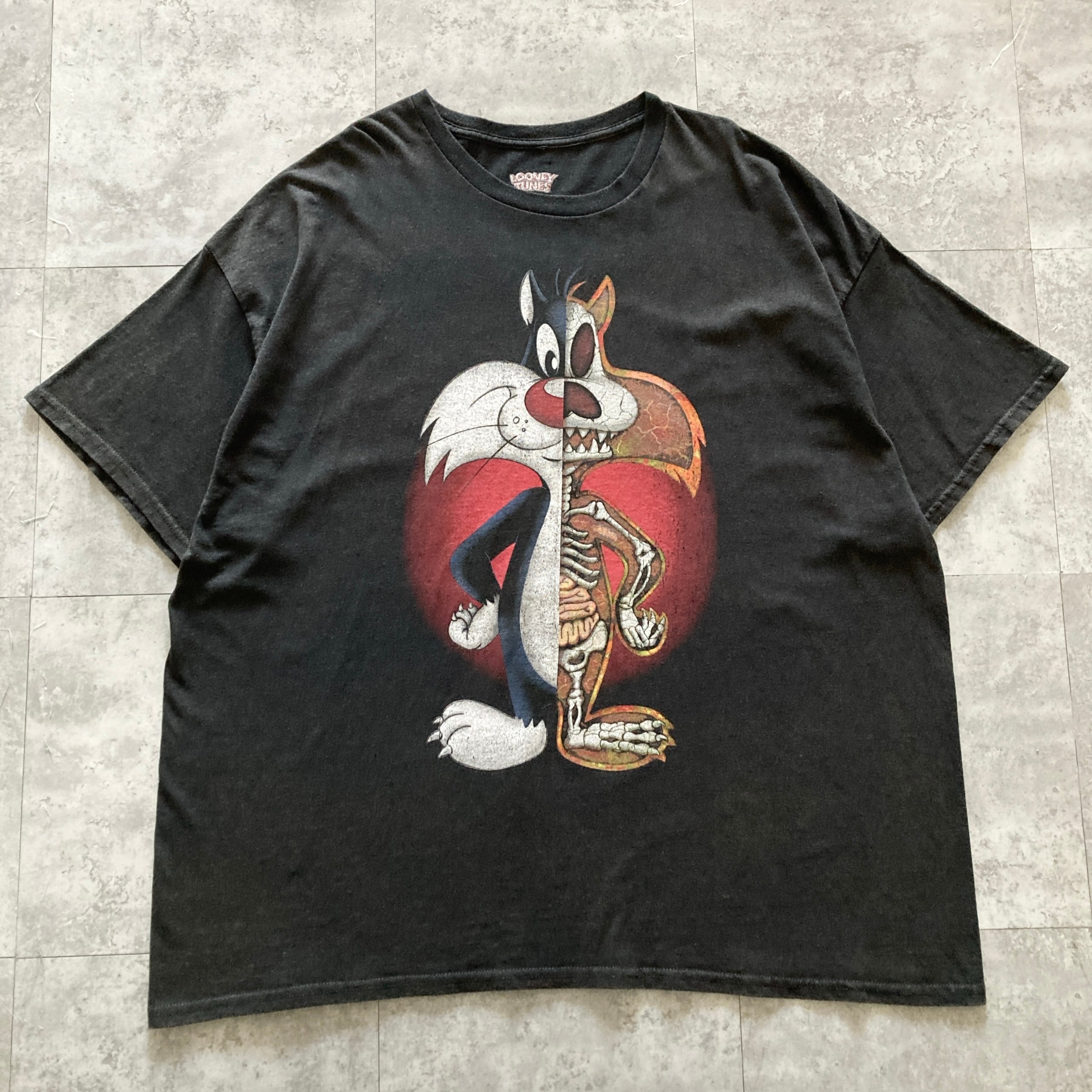 【Size.2XL】LOONEY TUNES ルーニーテューンズ 両面プリント シルベスターキャット ブラック Tシャツ