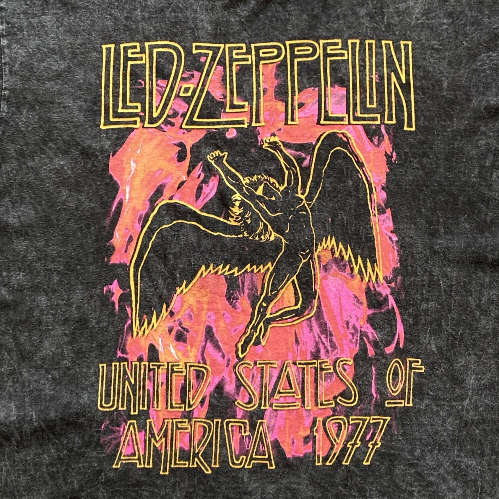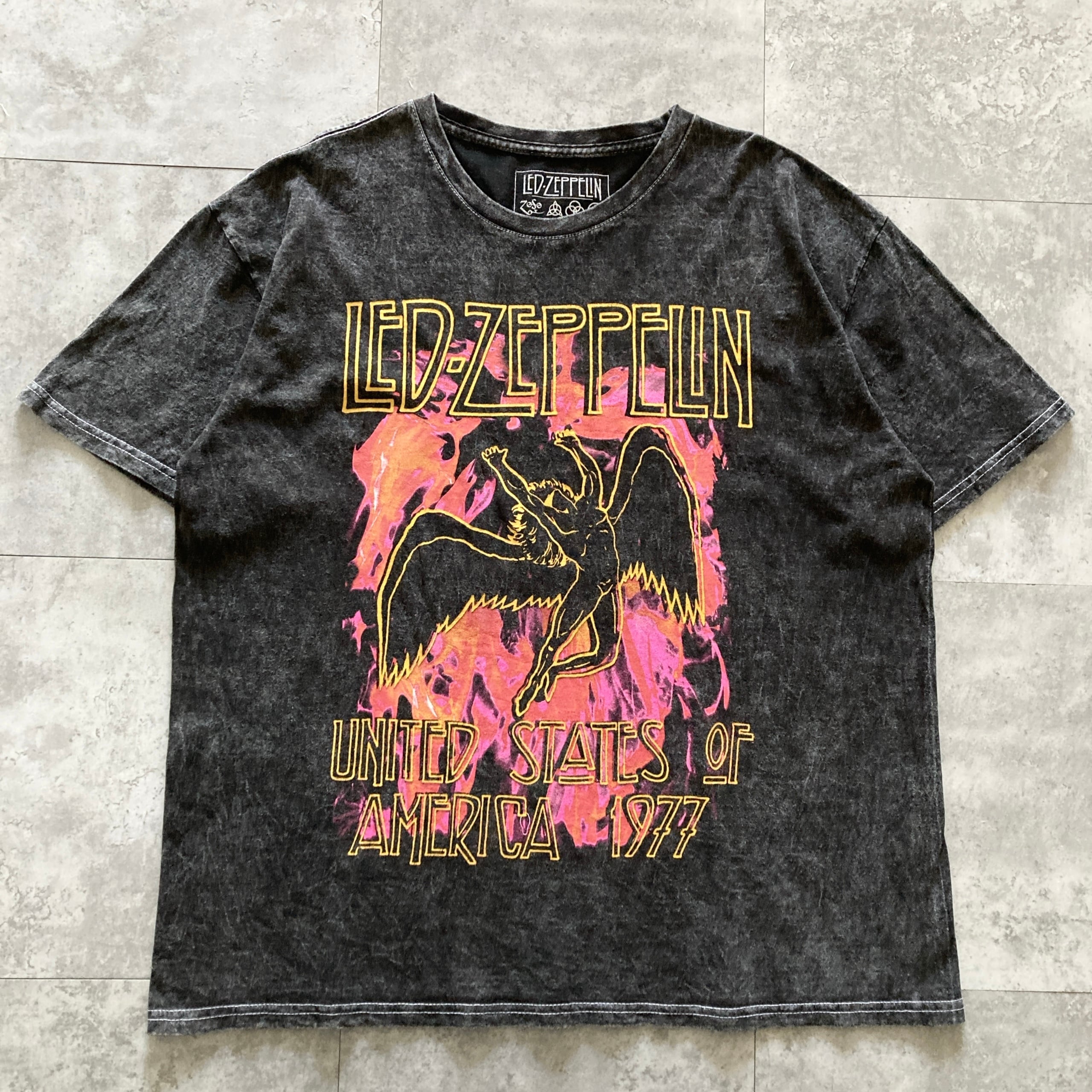 【Size.L】LED ZEPPELIN レッドツェッペリン UNITED STATES OF AMERICA 1977 ヴィンテージ加工 ブラック Tシャツ バンドT