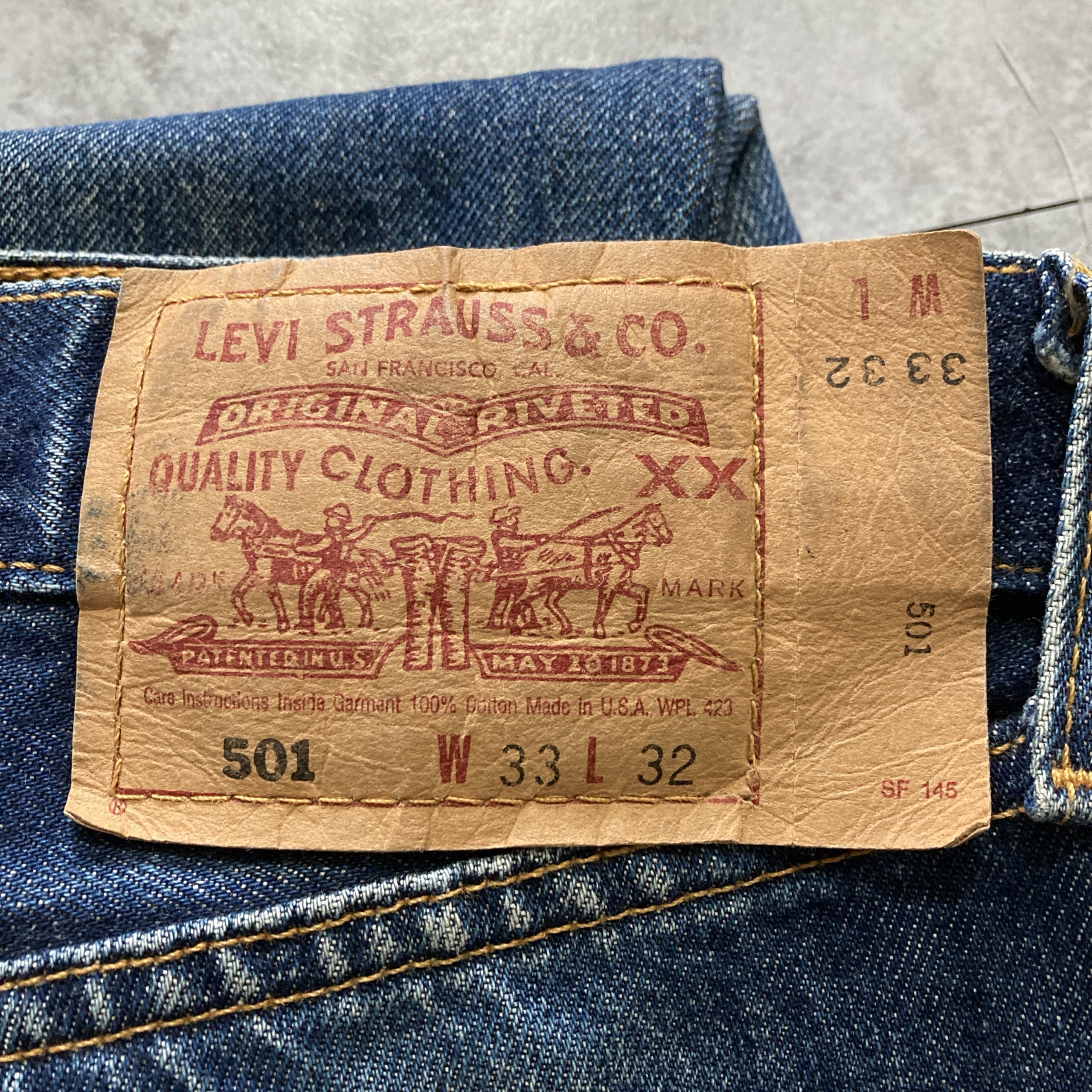 【W33 L32】00's US.Levis 501 リーバイス サンベニート工場(553) ボタン裏刻印553 USA製 アメリカ製 00年製 ボタンフライ 濃紺 縦落ち ヒゲ ハチノス ダメージ デニムパンツ ジーンズ
