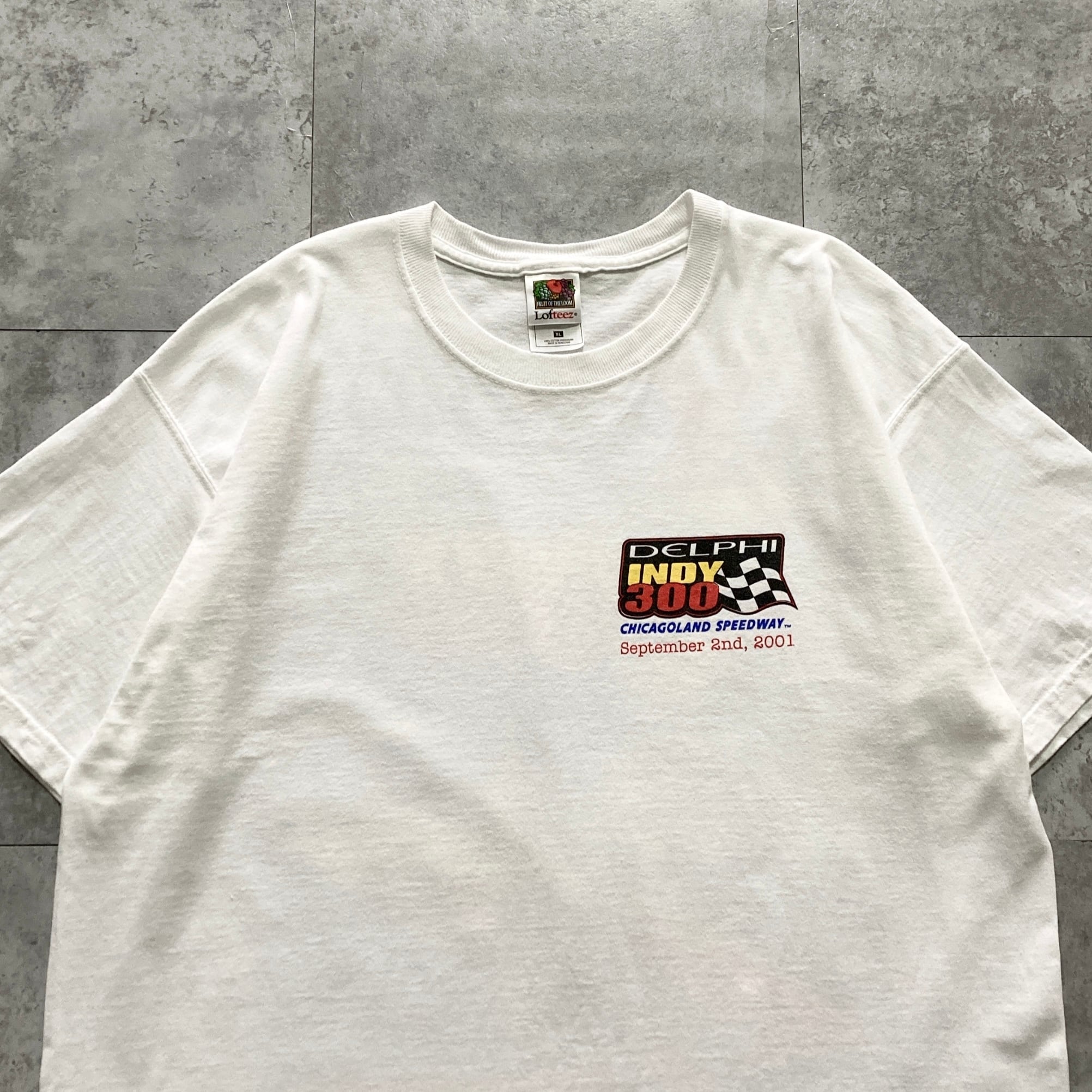 【Size.XL】00s FRUIT OF THE LOOM フルーツオブザルーム コピーライト2001 両面プリント レーシングカー DELPHI INDY 300 ホワイト Tシャツ