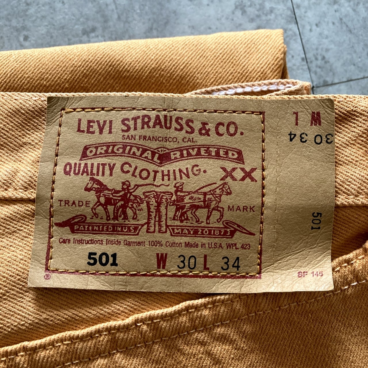 【W30 L34】90's US.Levis 501 リーバイス サンベニート工場(553) ボタン裏刻印553 USA製 アメリカ製 99年製 ボタンフライ オレンジ デニムパンツ ジーンズ カラーパンツ
