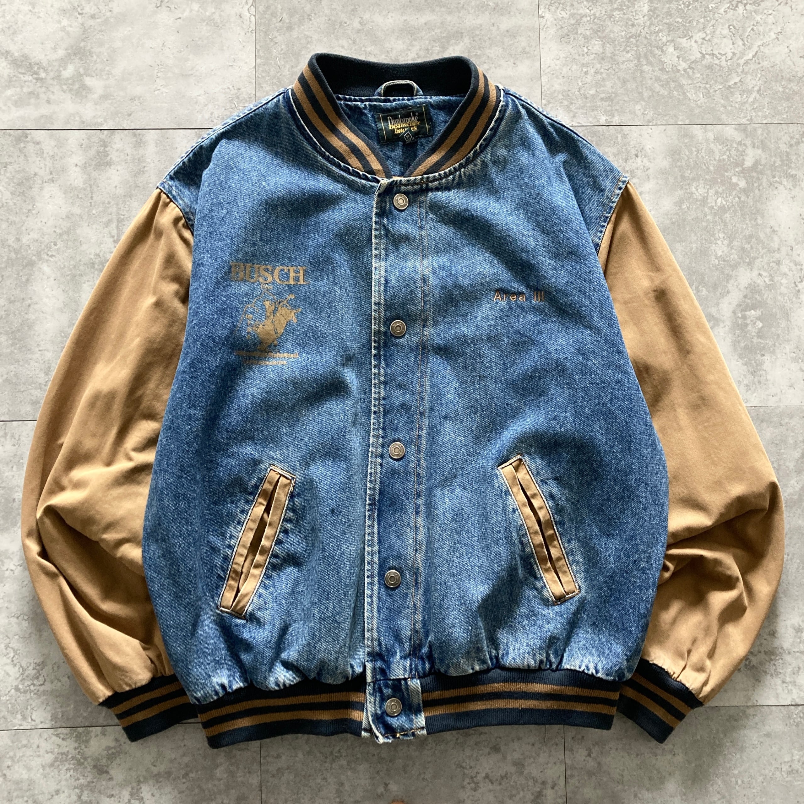 【90s】Dunbrooke ダンブルック 表記M 両面プリント バックプリント ロデオ カーボーイ スナップボタン 胸元刺繍 ツートンカラー デニムジャケット/デニムスタジャン