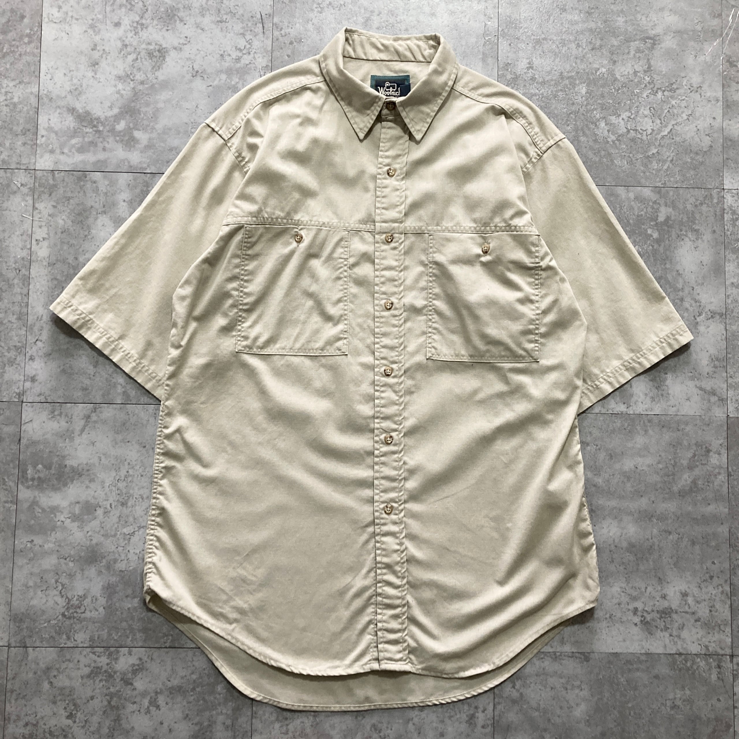 【USA製】90s Woolrich ウールリッチ 表記L アメリカ製 無地 半袖 シャツ