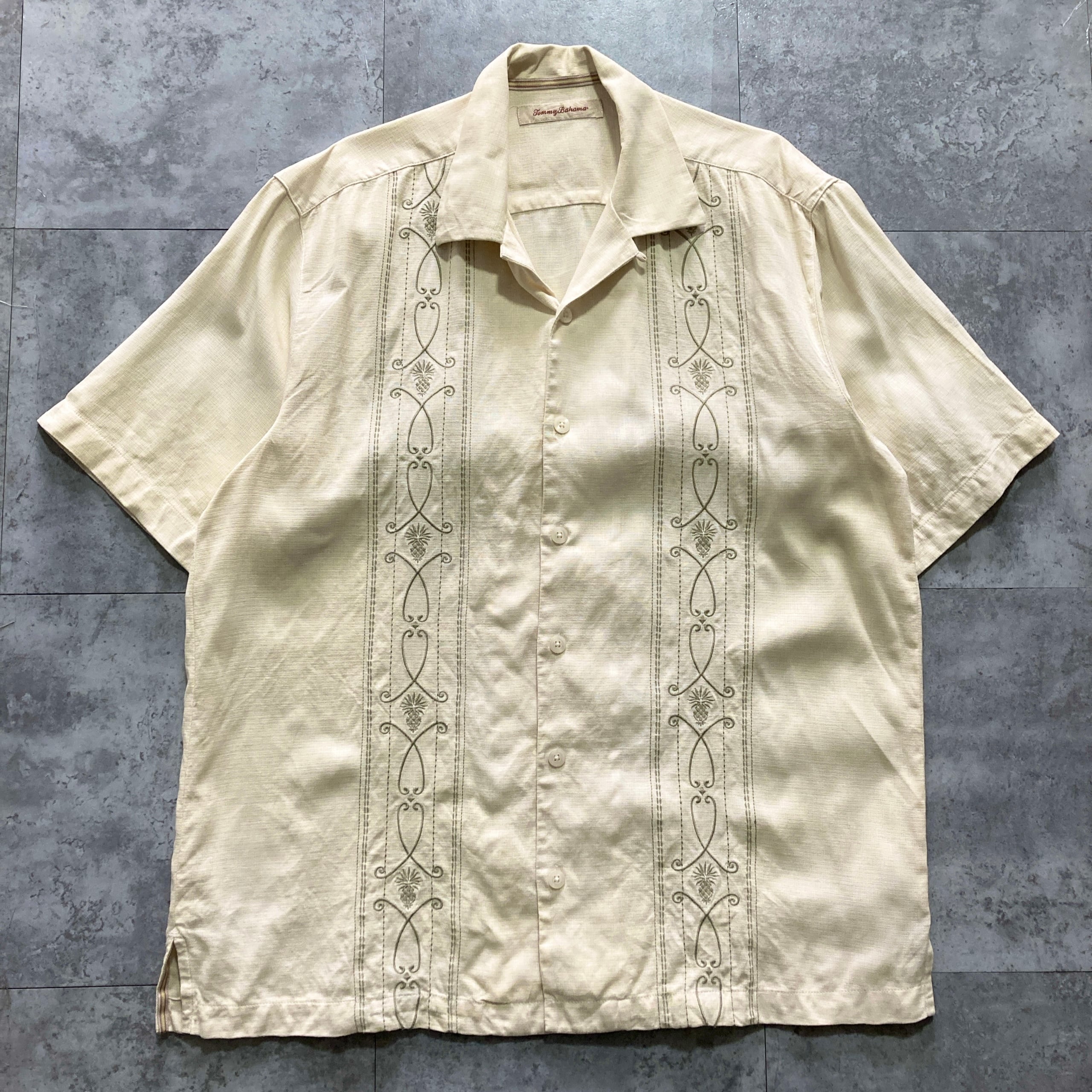 【Size.M】Tommy Bahama トミーバハマ シルク100% センター刺繍 開襟シャツ オープンカラーシャツ アロハシャツ