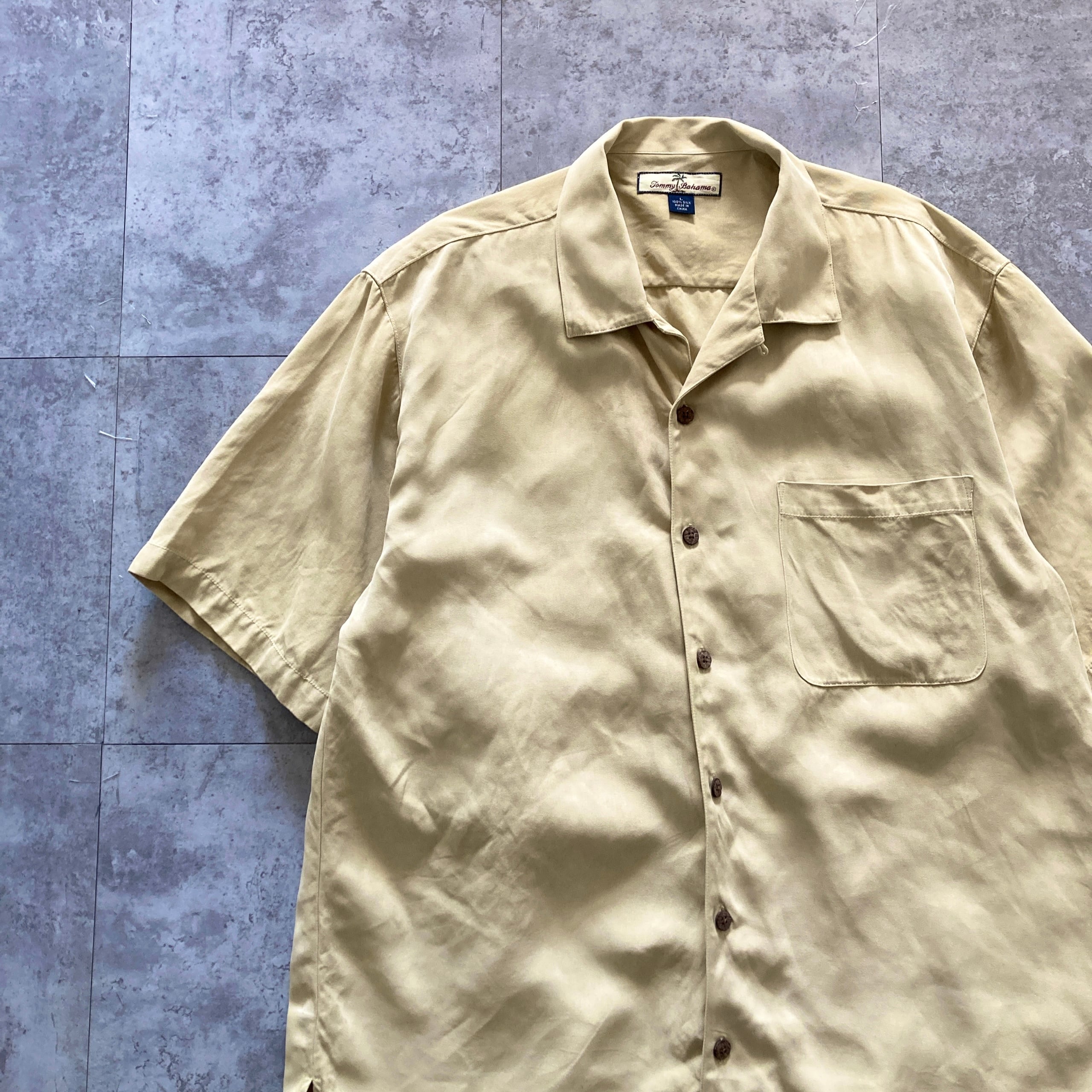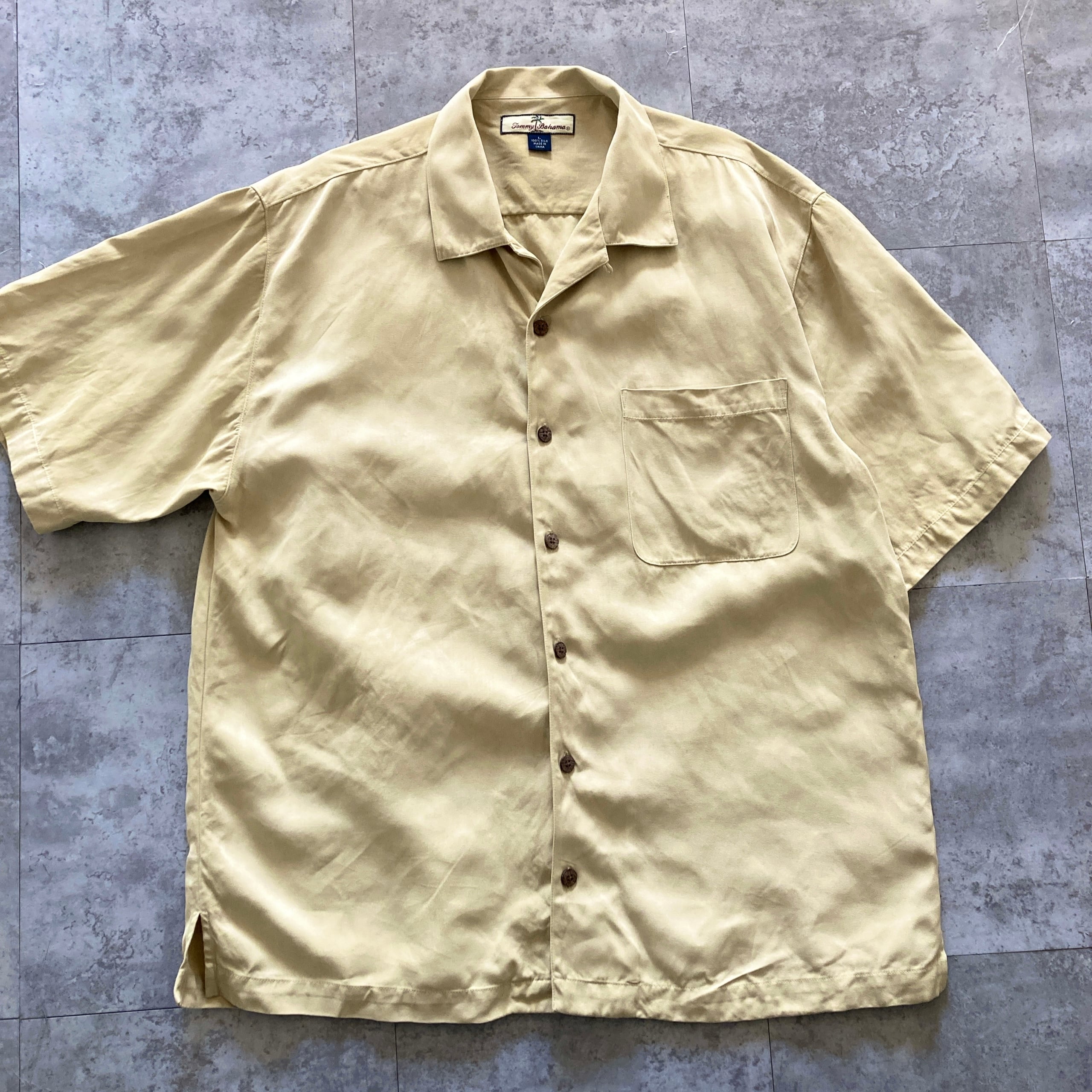 【Size.L】Tommy Bahama トミーバハマ シルク100% 無地 開襟シャツ オープンカラーシャツ アロハシャツ